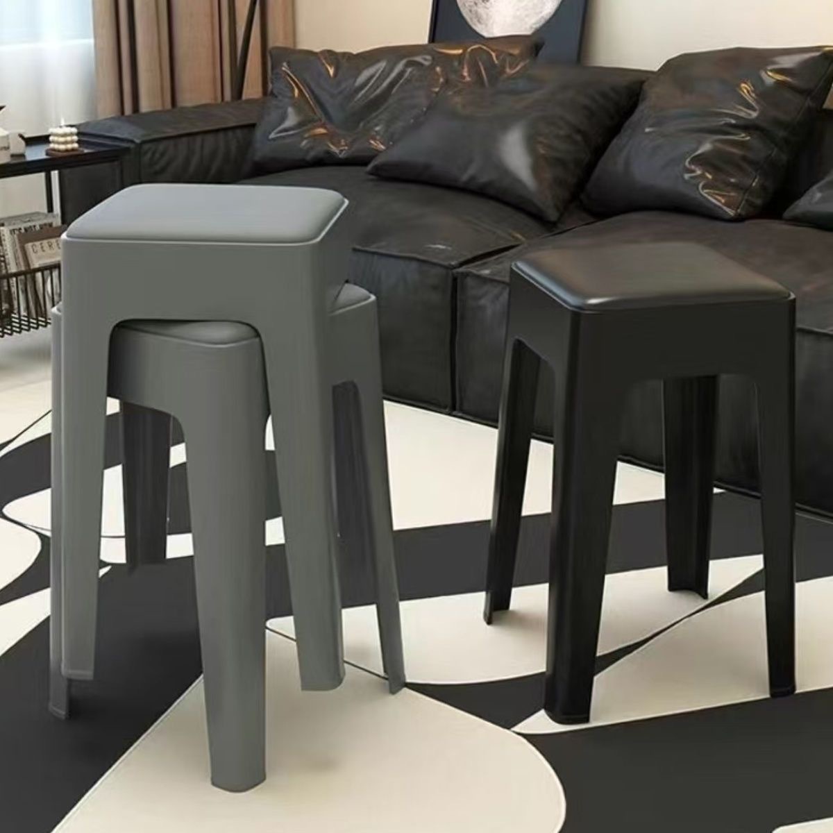 轻奢加厚软包家用现代塑料凳子简约可叠放餐凳高凳餐椅客厅批发