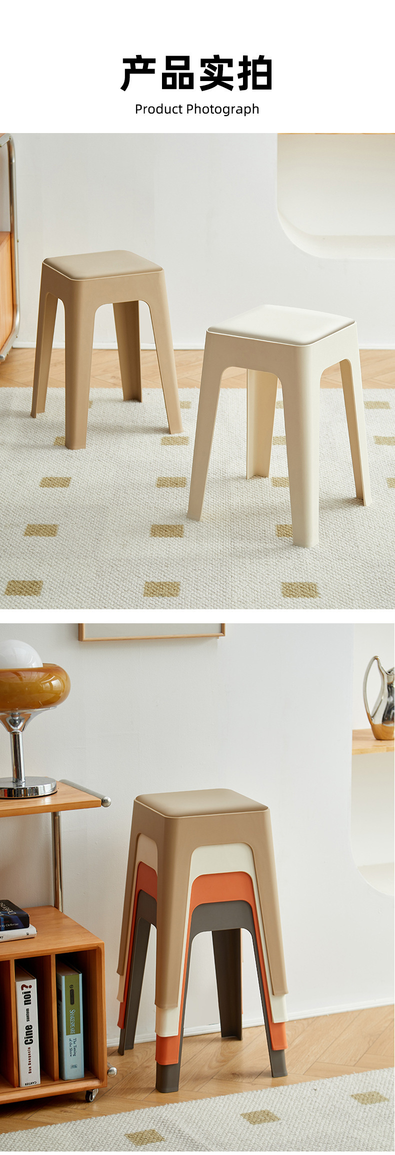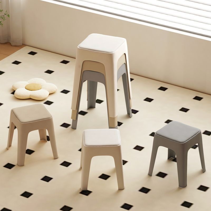 塑料凳子家用可叠放加厚软包方凳方便收纳简约高板凳防滑餐桌椅子