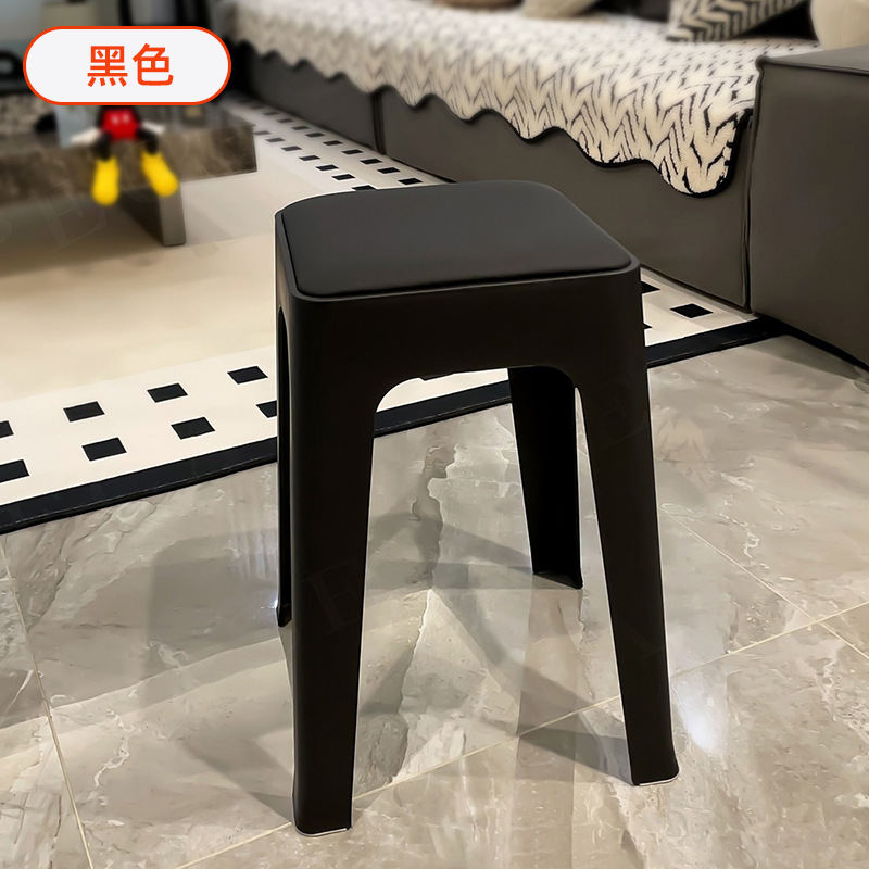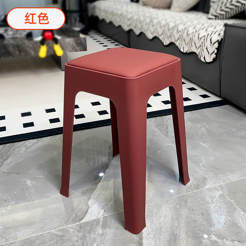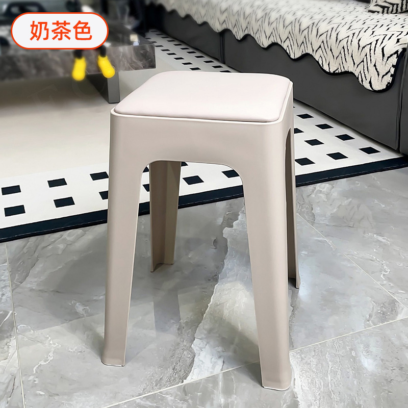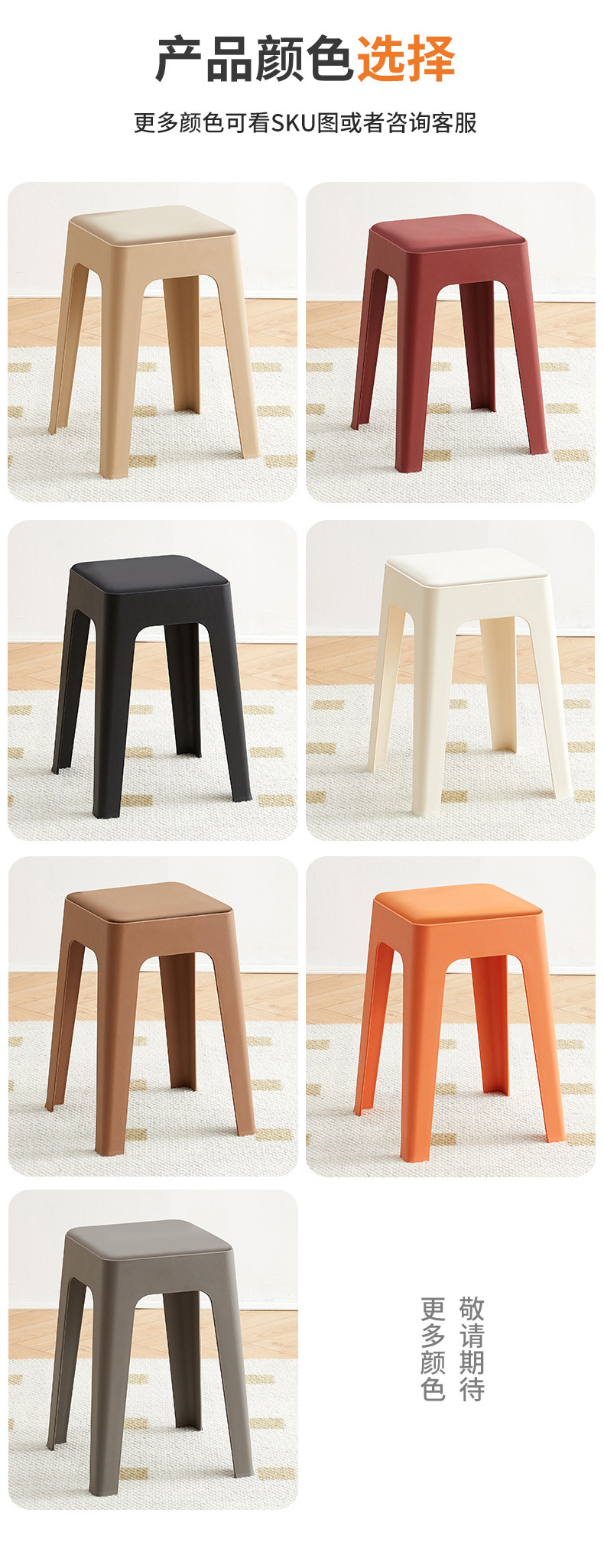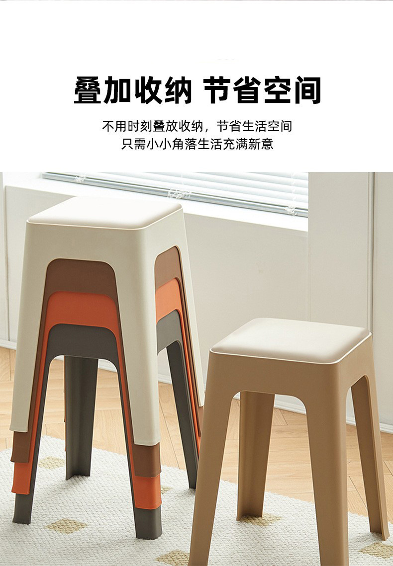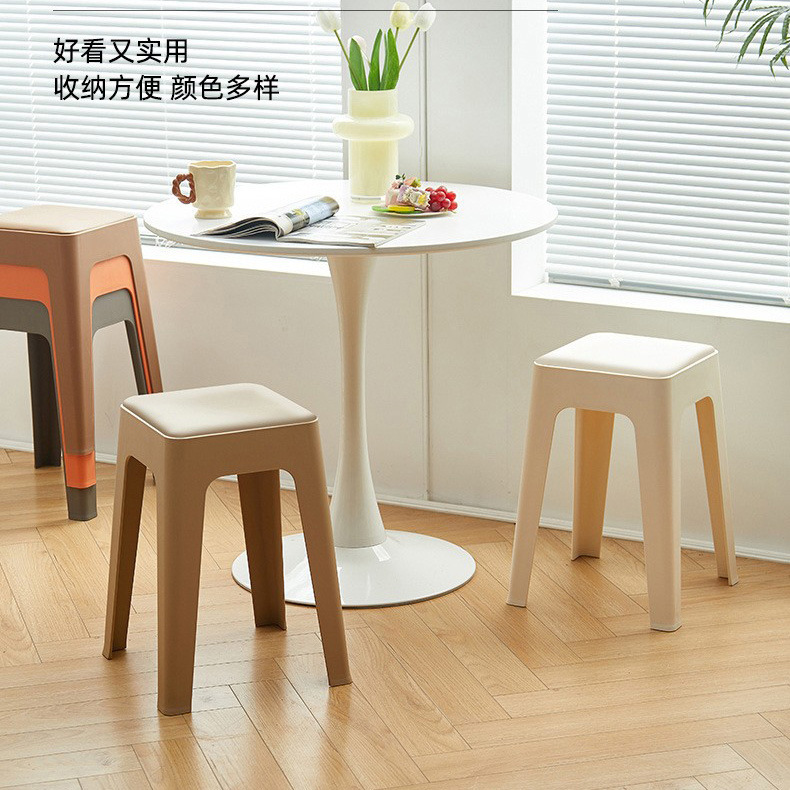 北欧家用吃饭凳子方形可叠放餐厅板凳等位奶油色成人塑料软包方凳