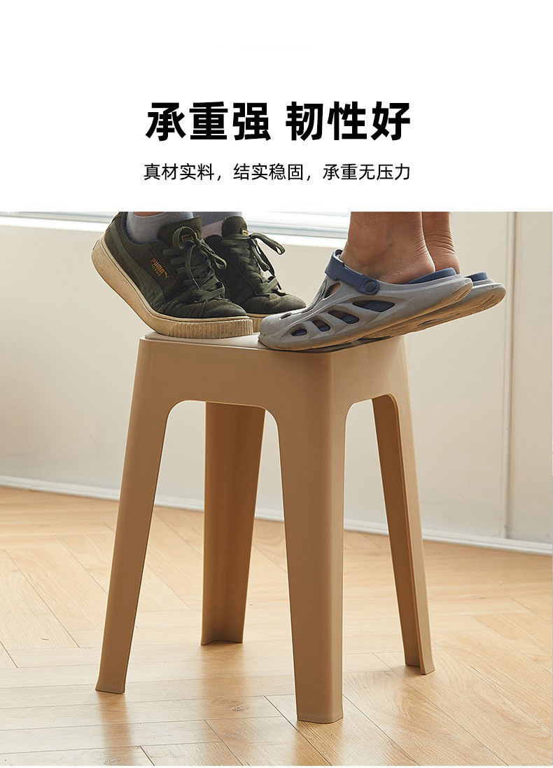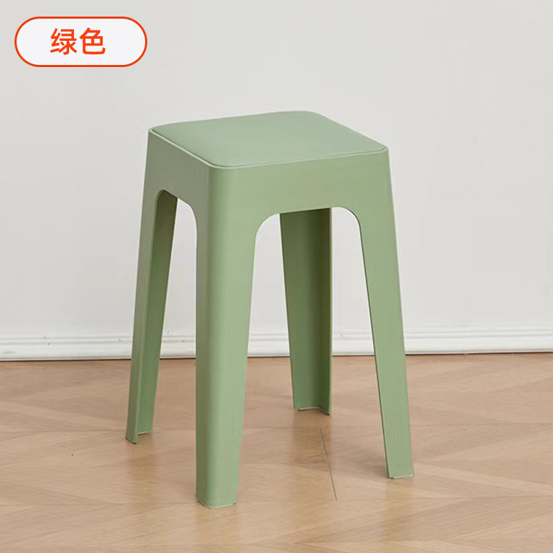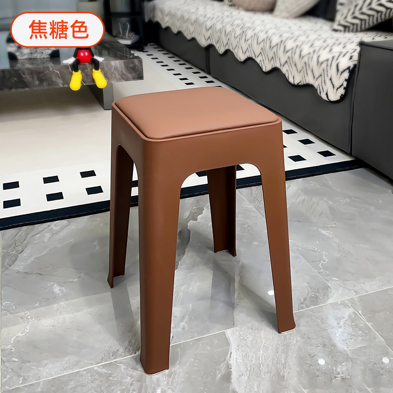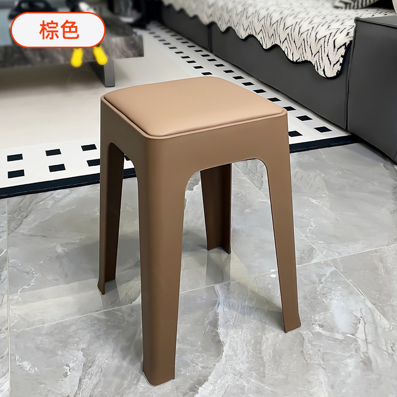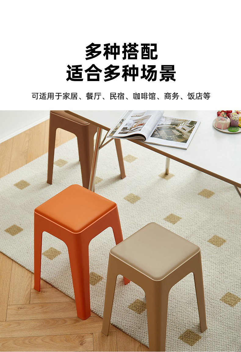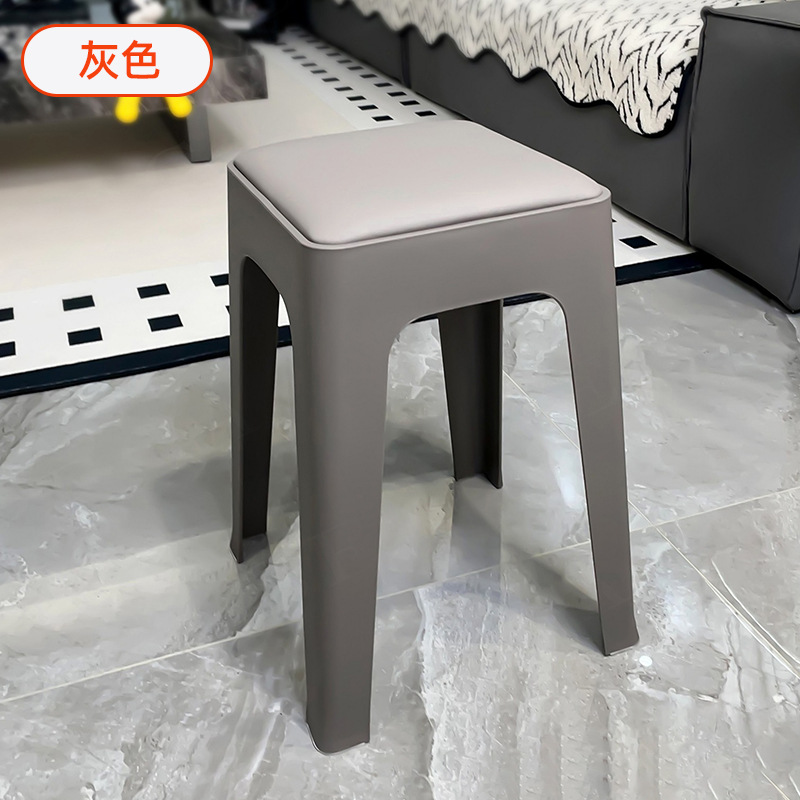 北欧家用吃饭凳子方形可叠放餐厅板凳等位奶油色成人塑料软包方凳