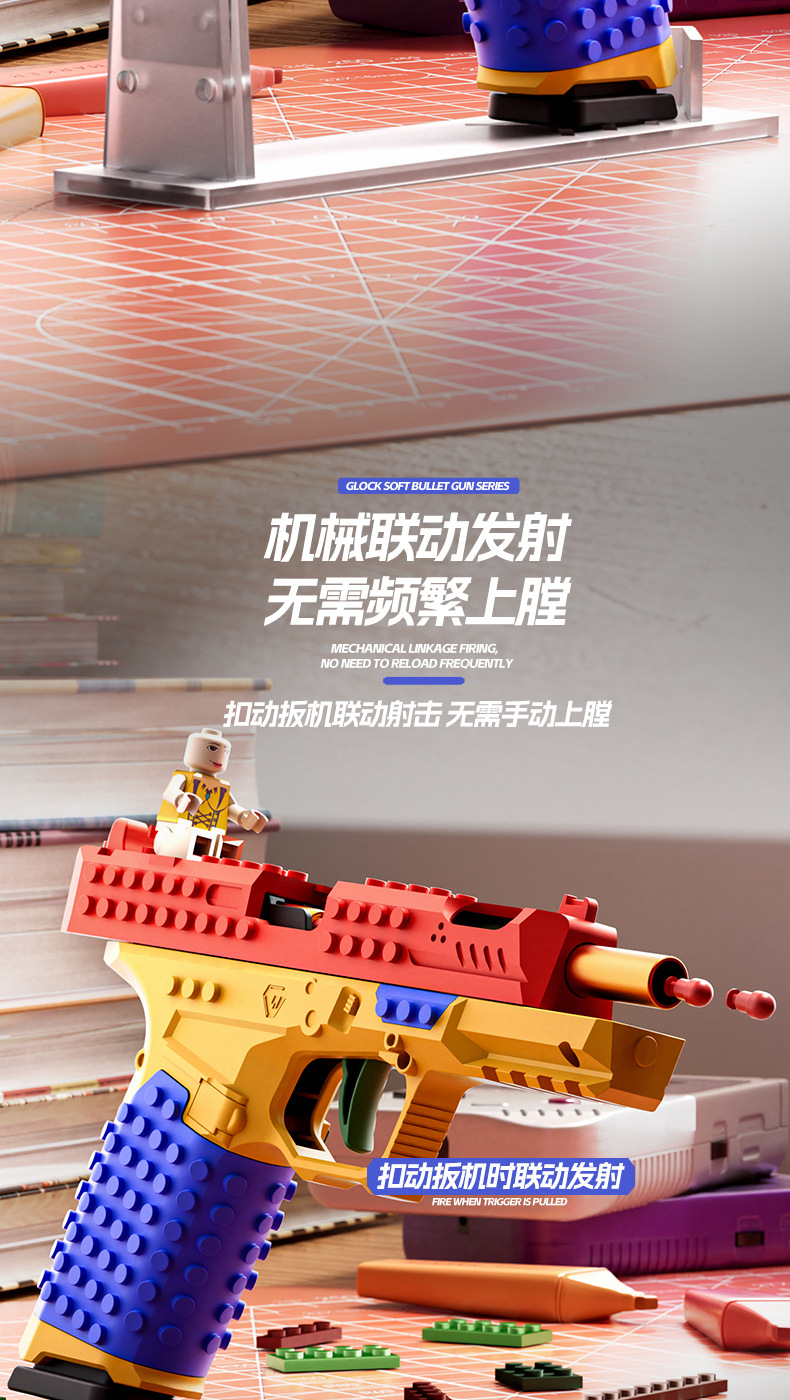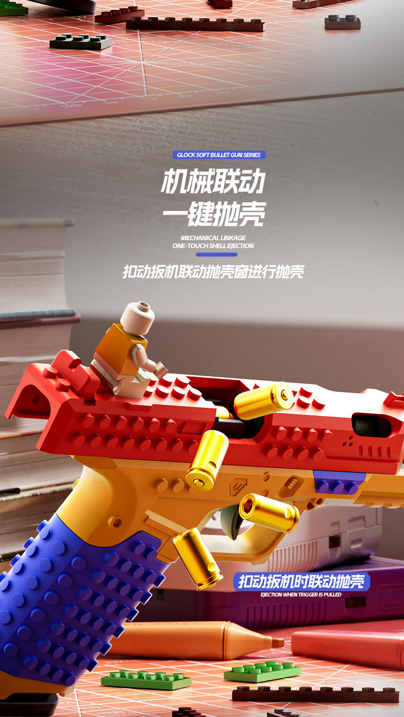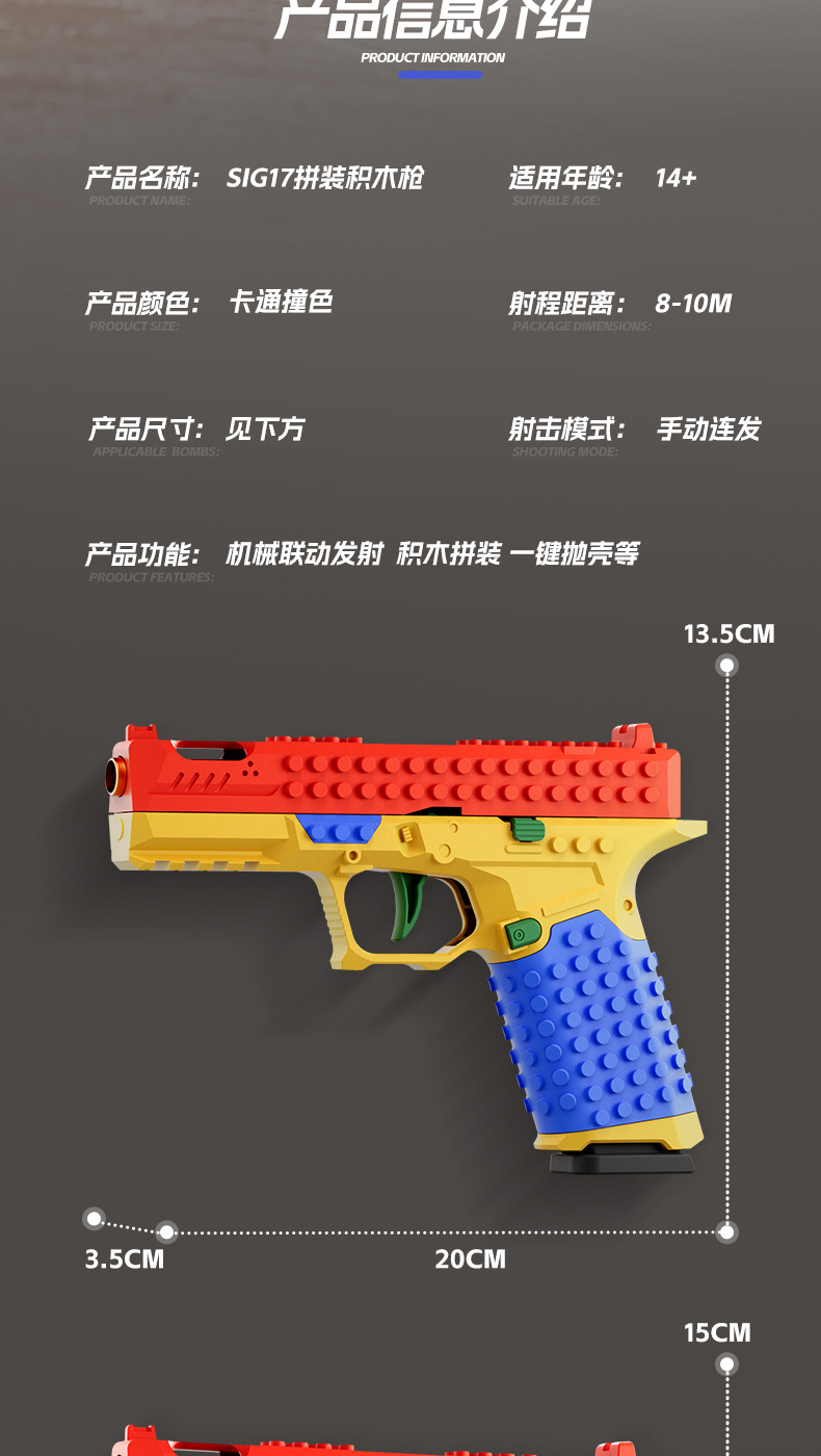 SIG17格洛克DIY积木拼装发射玩具手枪连发抛壳男孩软弹枪科教模型