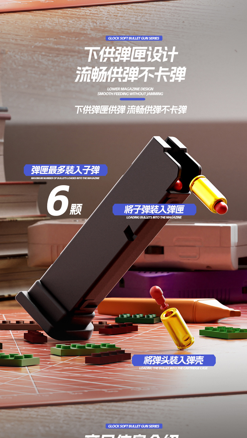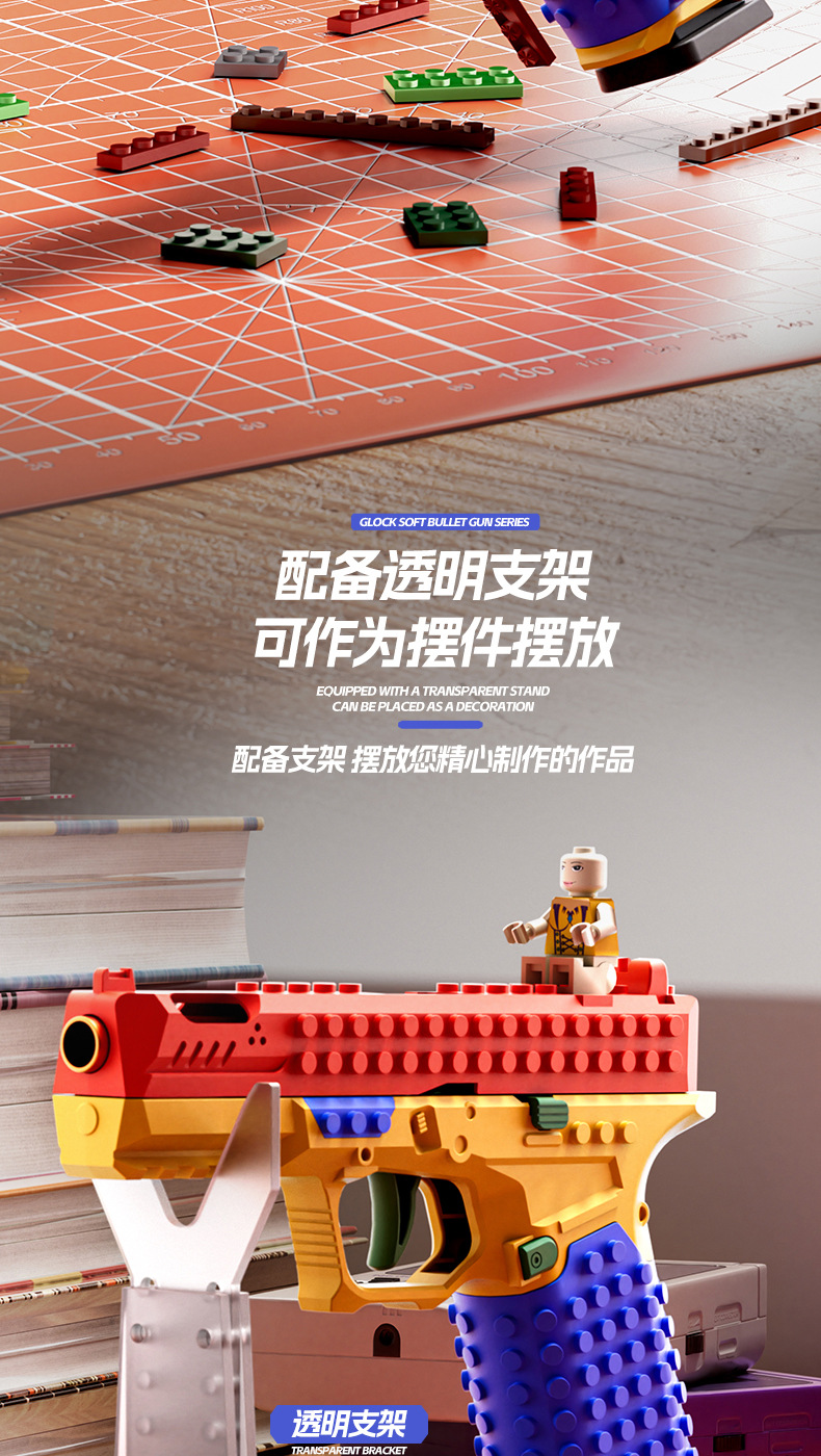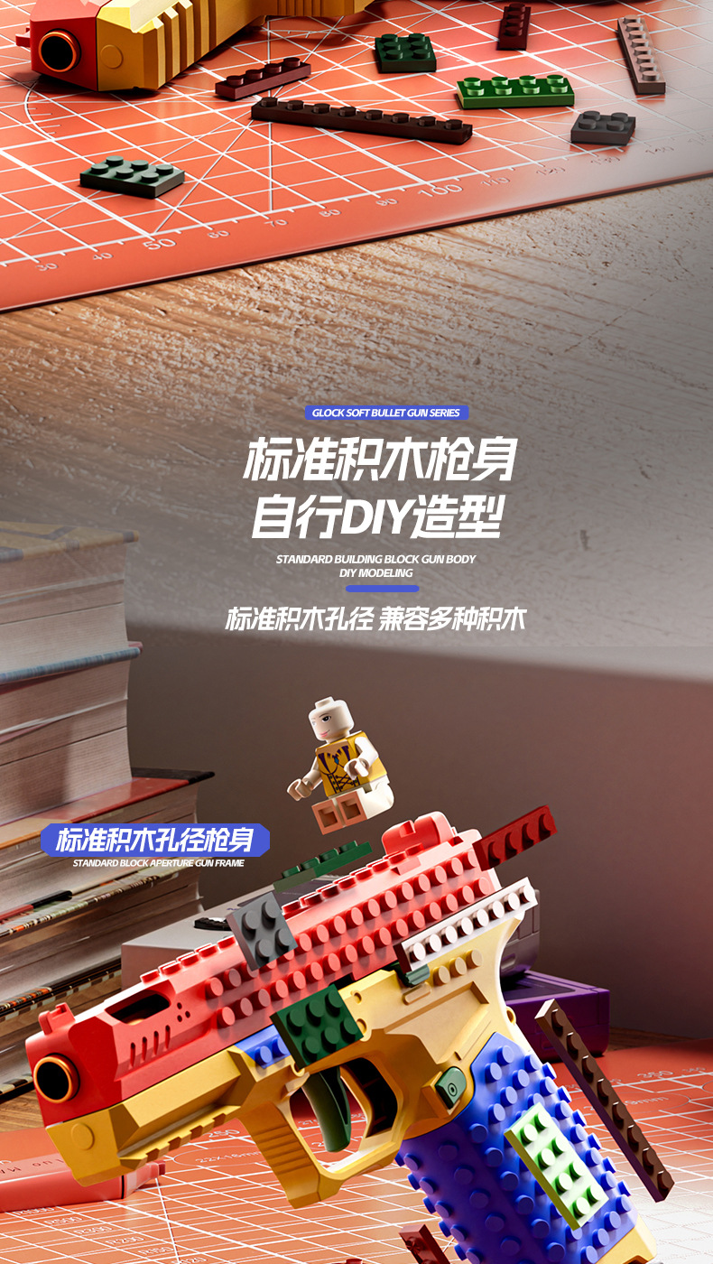 SIG17格洛克DIY积木拼装发射玩具手枪连发抛壳男孩软弹枪科教模型
