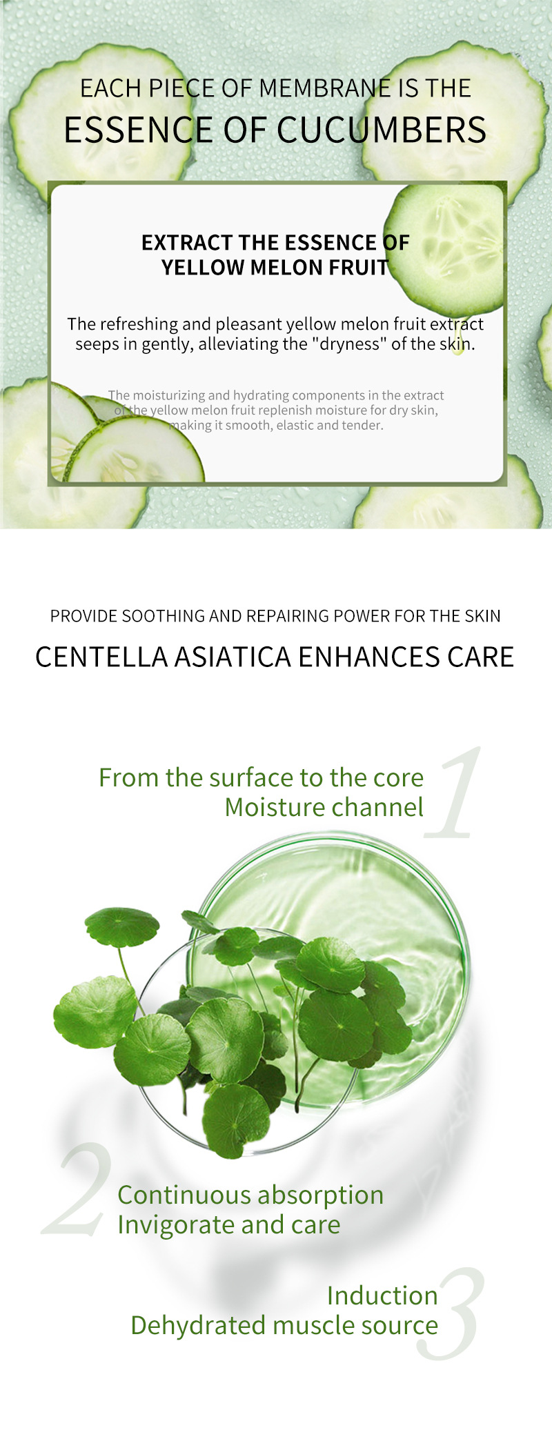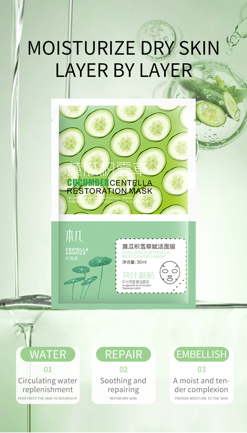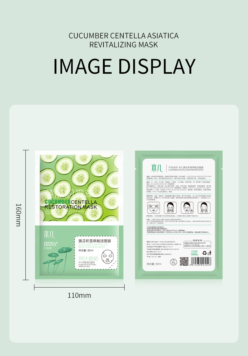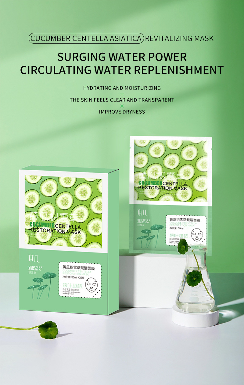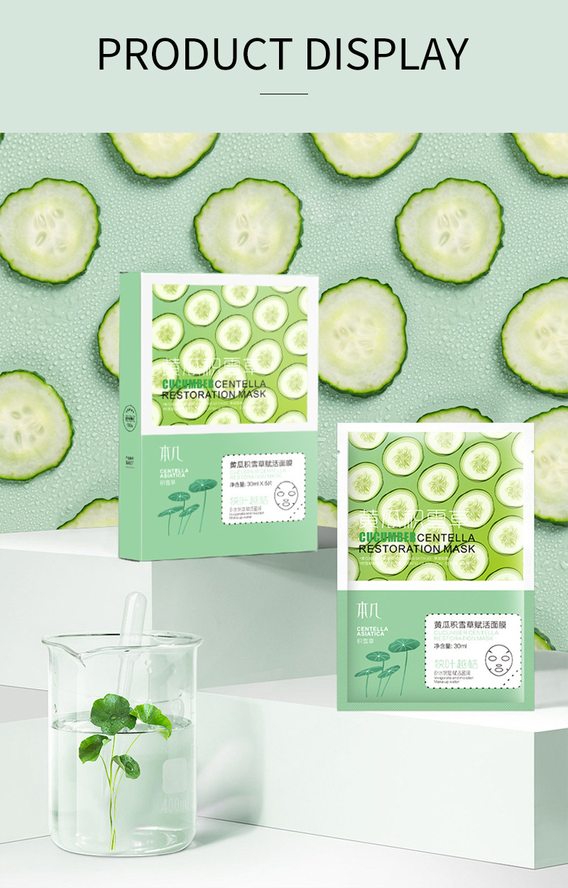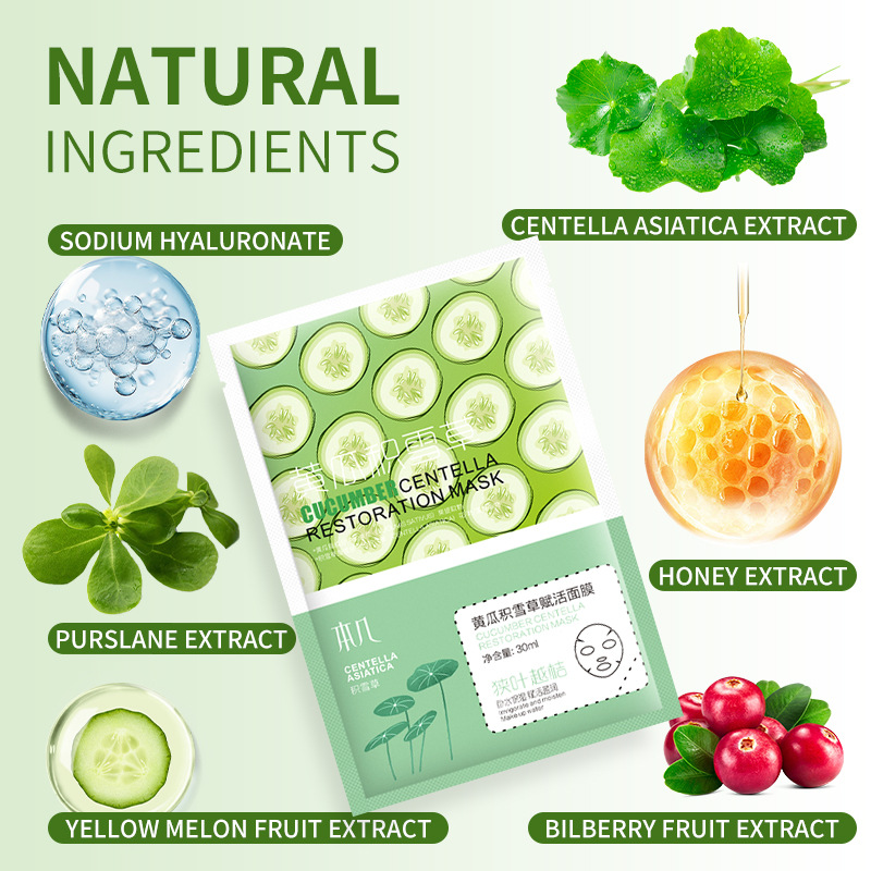 全英文黄瓜补水面膜保湿滋润修护毛孔紧致贴片面膜亚马逊跨境代发