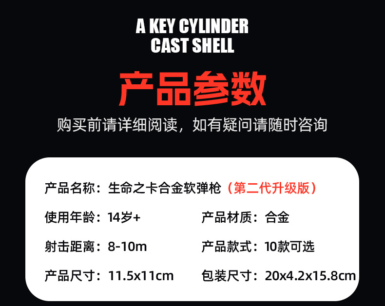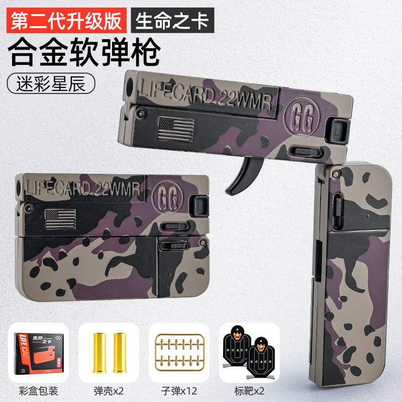 儿童玩具枪男孩生命之卡抖音热款合金折叠喷子玩具可发射软弹