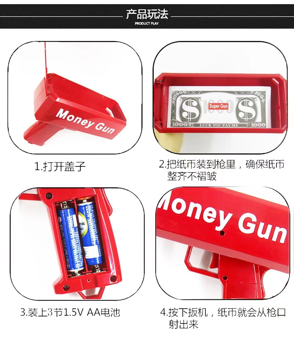 跨境潜力网红抖音同款喷钱枪电动钞票枪MoneyGun喷钞机玩具撒钱枪
