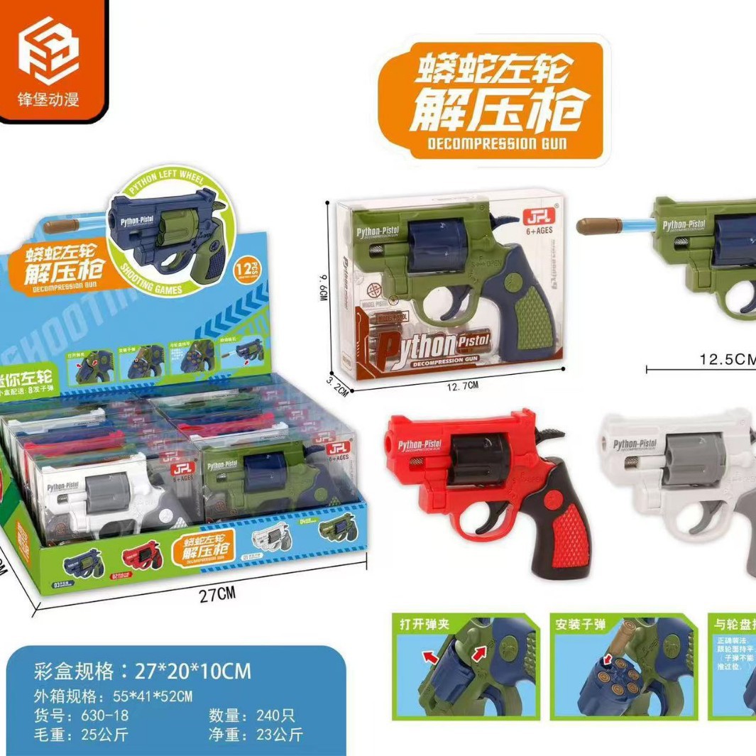 新款蟒蛇左轮解压枪可发射软弹儿童左轮枪玩具枪 男孩玩具小礼品