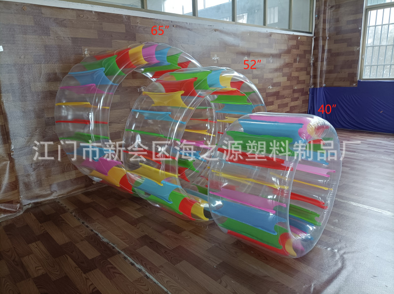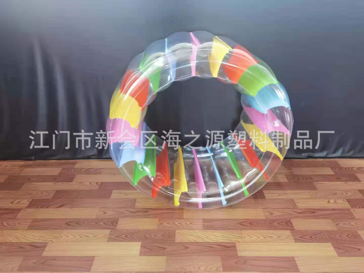 PVC充气水上游泳池乐园滚筒儿童草地爬行游戏玩具七彩滚轮浮排