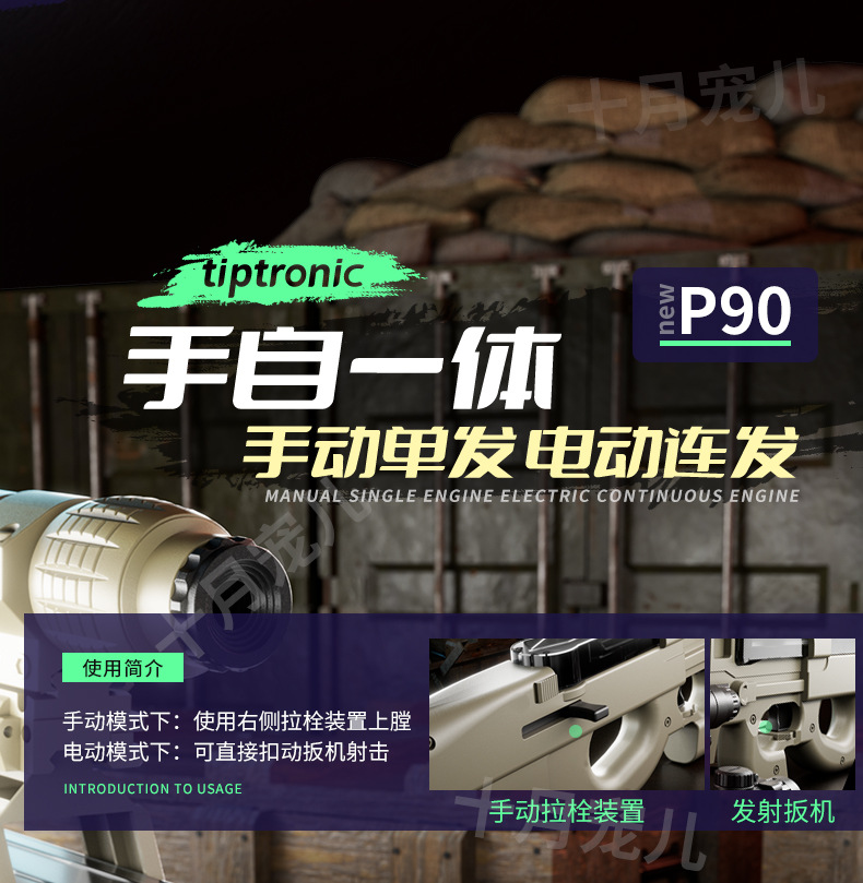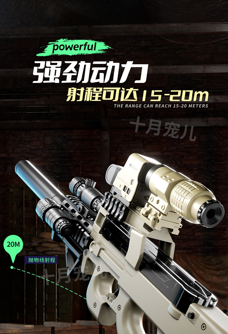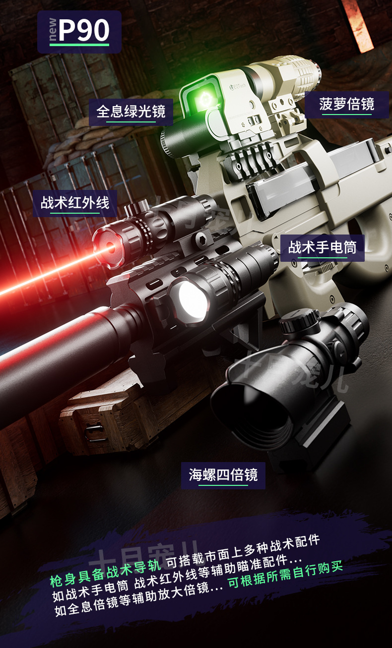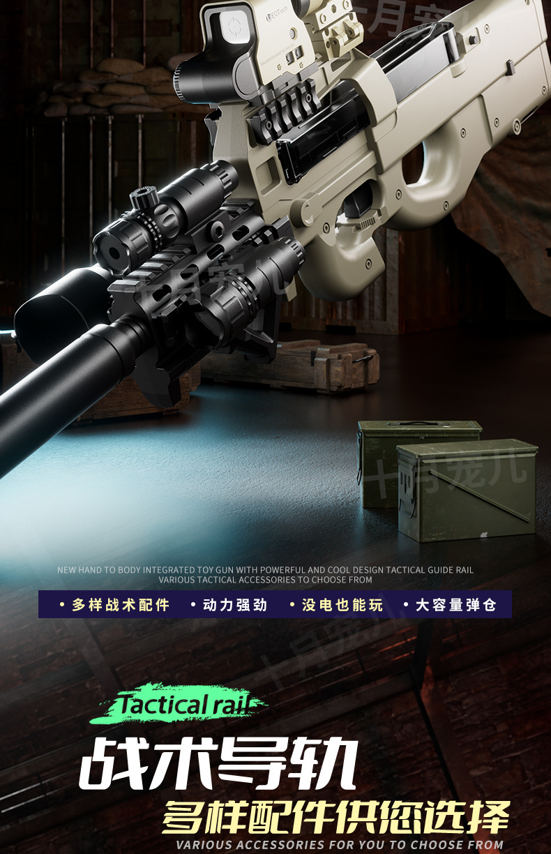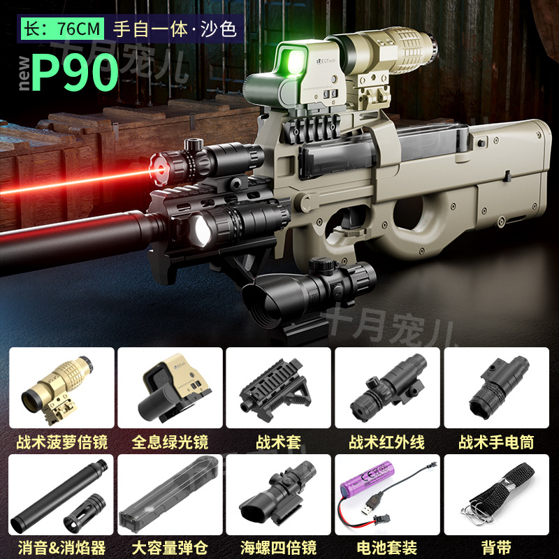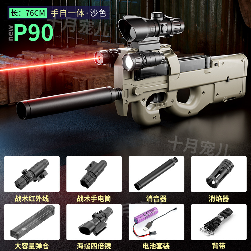 P90冲锋枪电动连发水晶玩具仿真儿童男孩手自动手自一体吃鸡玩具