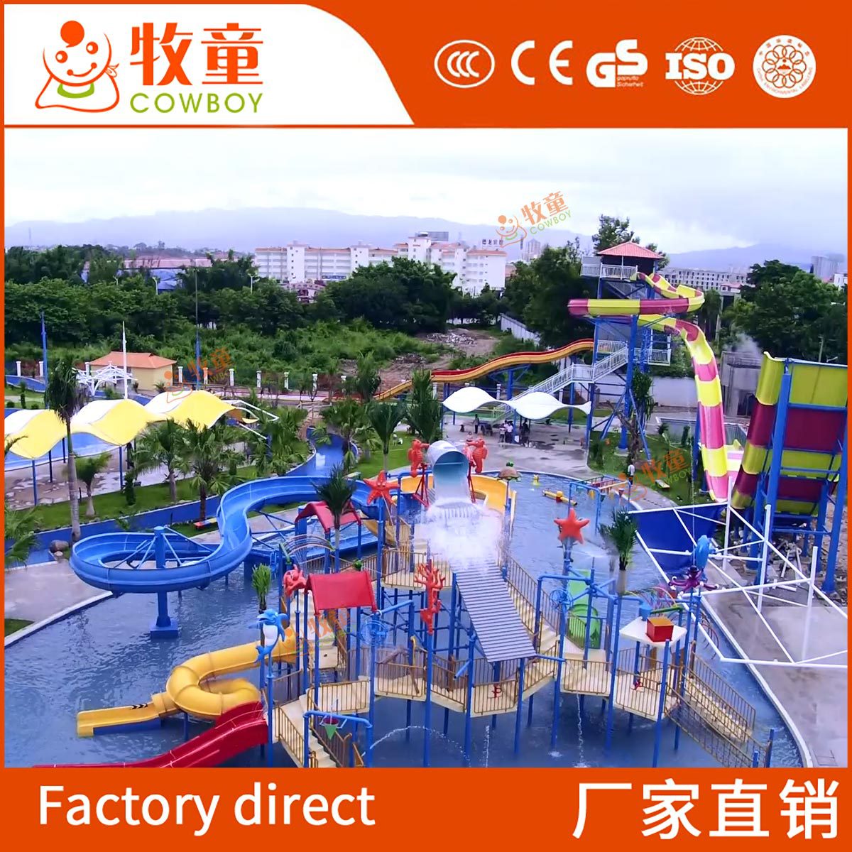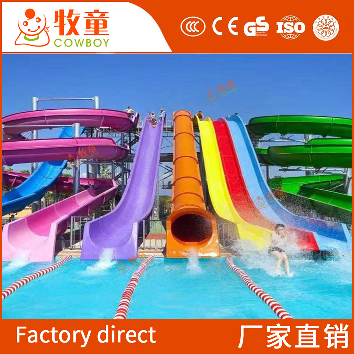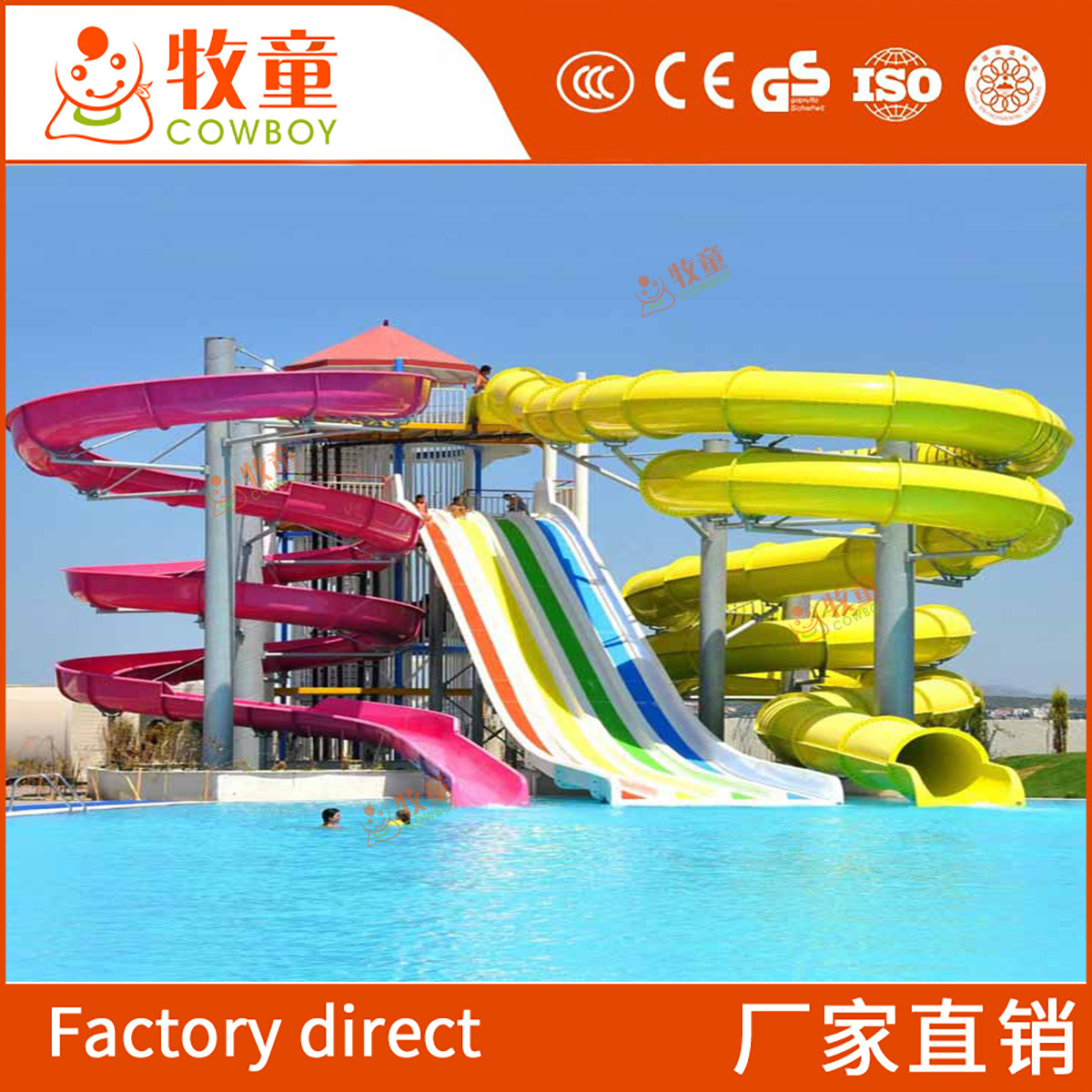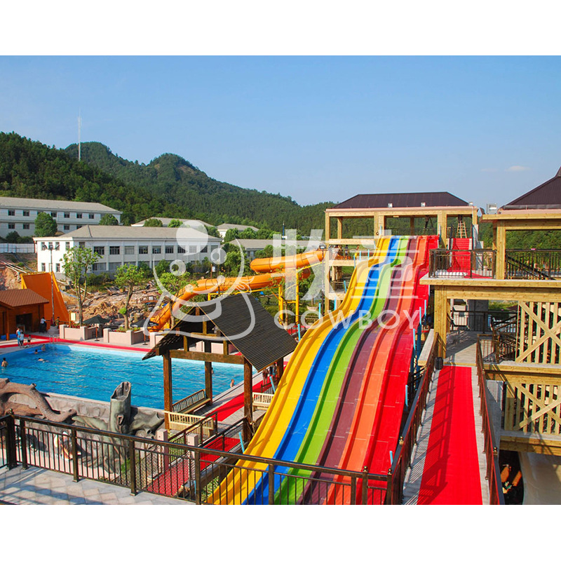 水上螺旋滑梯批发 水屋水寨景区玻璃钢彩虹滑梯大型水上乐园设备