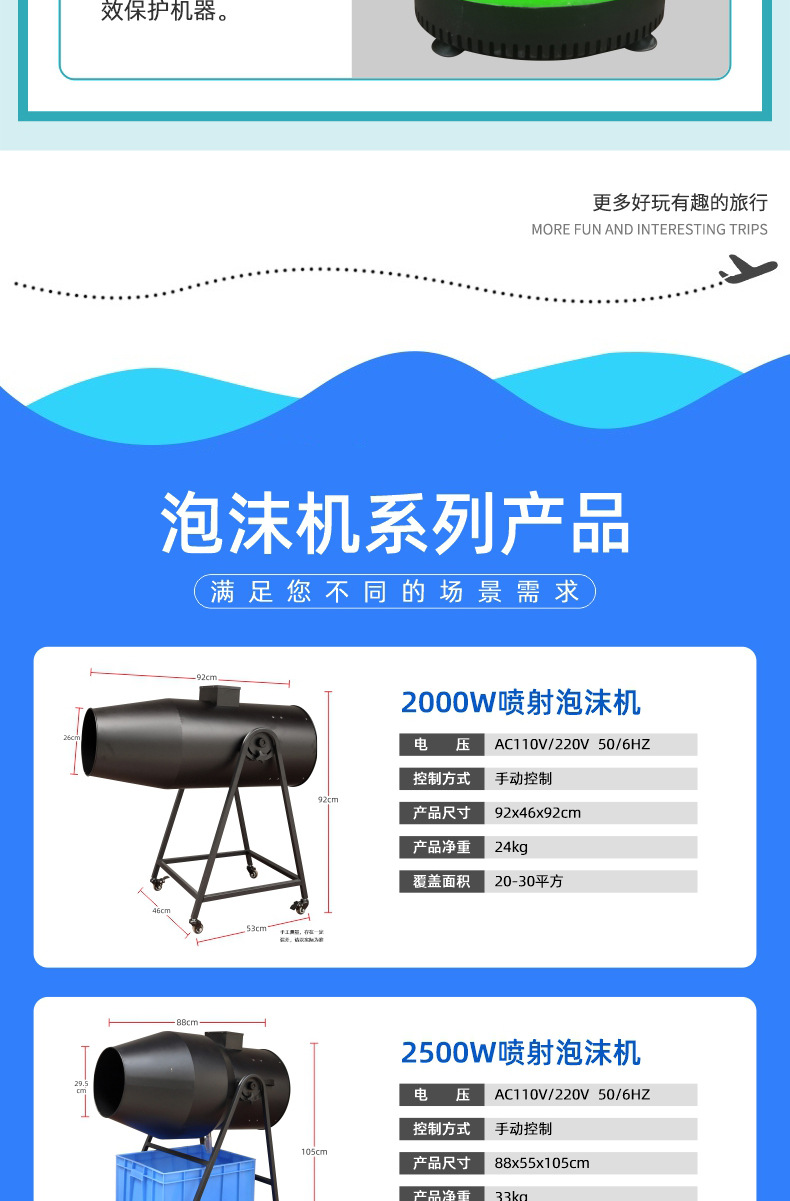 3000W舞台喷射泡沫机幼儿园水上乐园泡泡设备户外摇头大型泡沫机