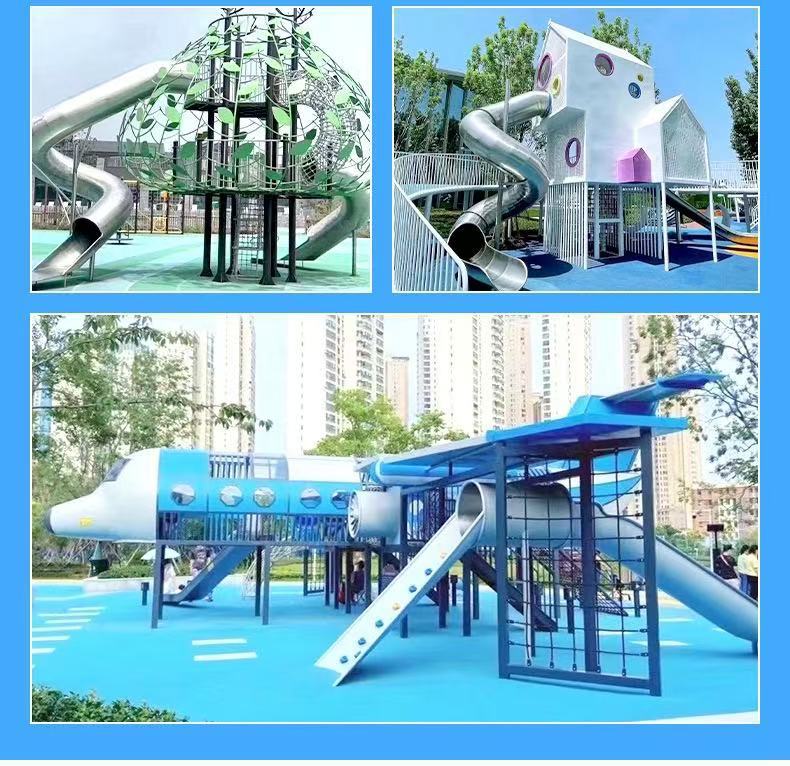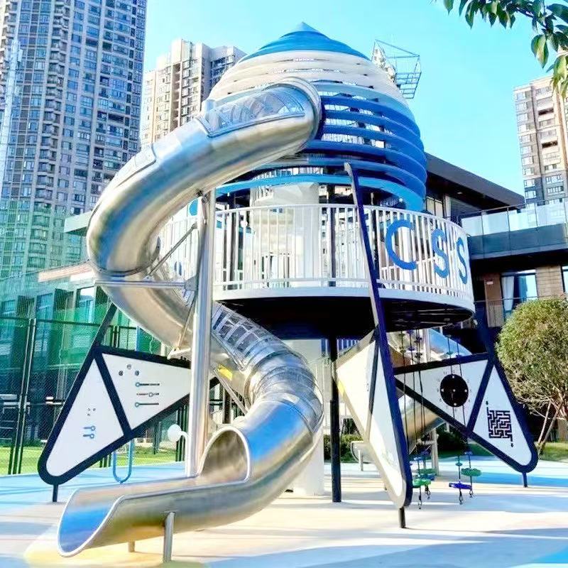 户外儿童无动力设施游乐场攀爬设备水上公园大型不锈钢螺旋滑梯