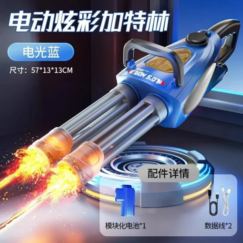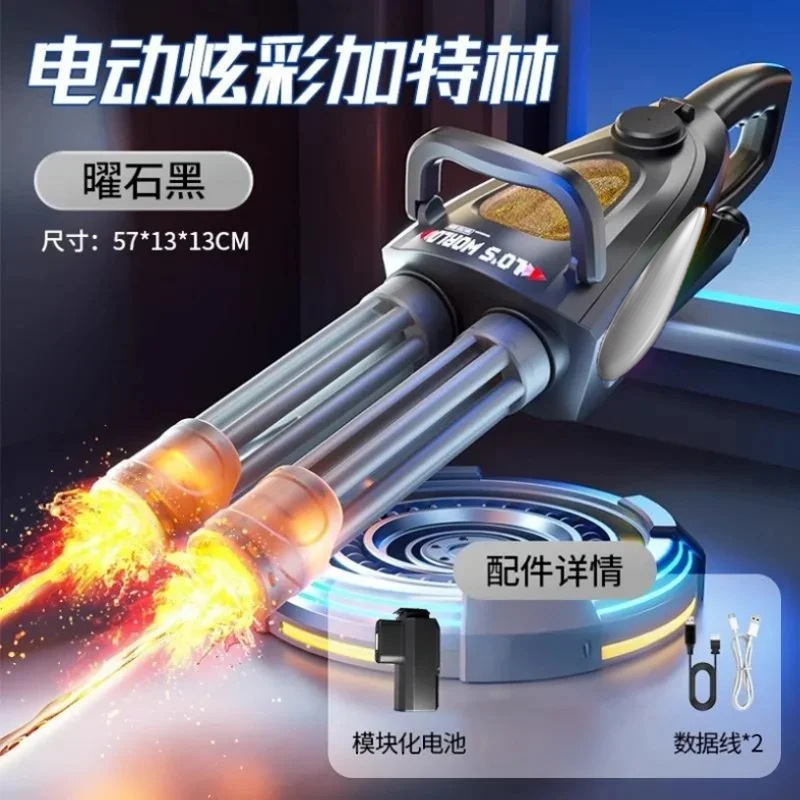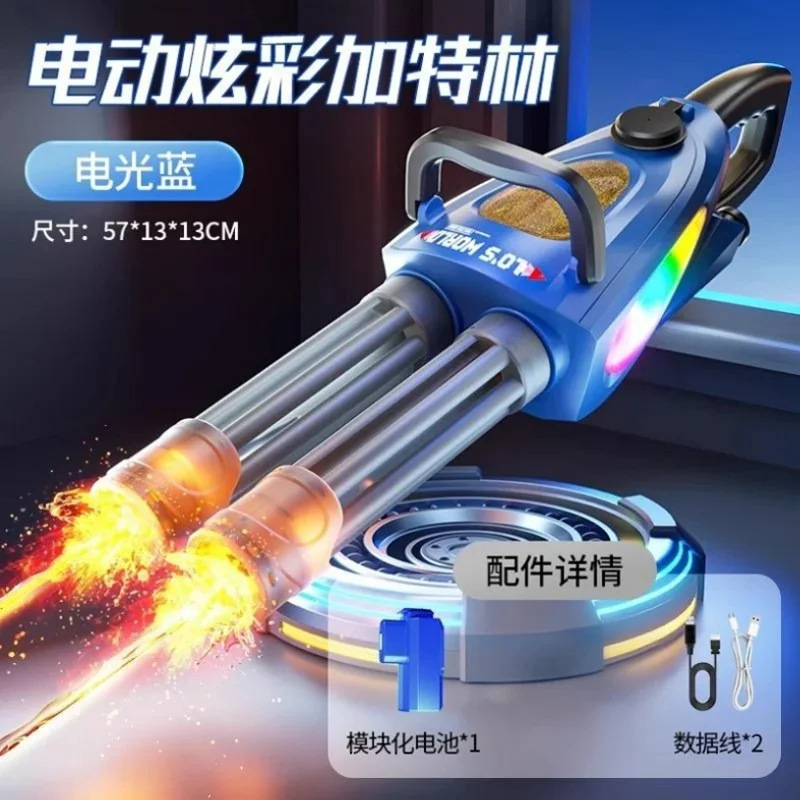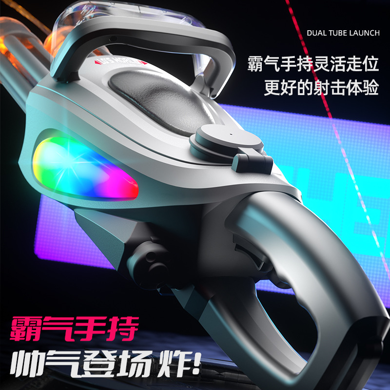 洛臣双管加特林水枪爆闪七彩灯光电动高速连发儿童夏季戏水玩具