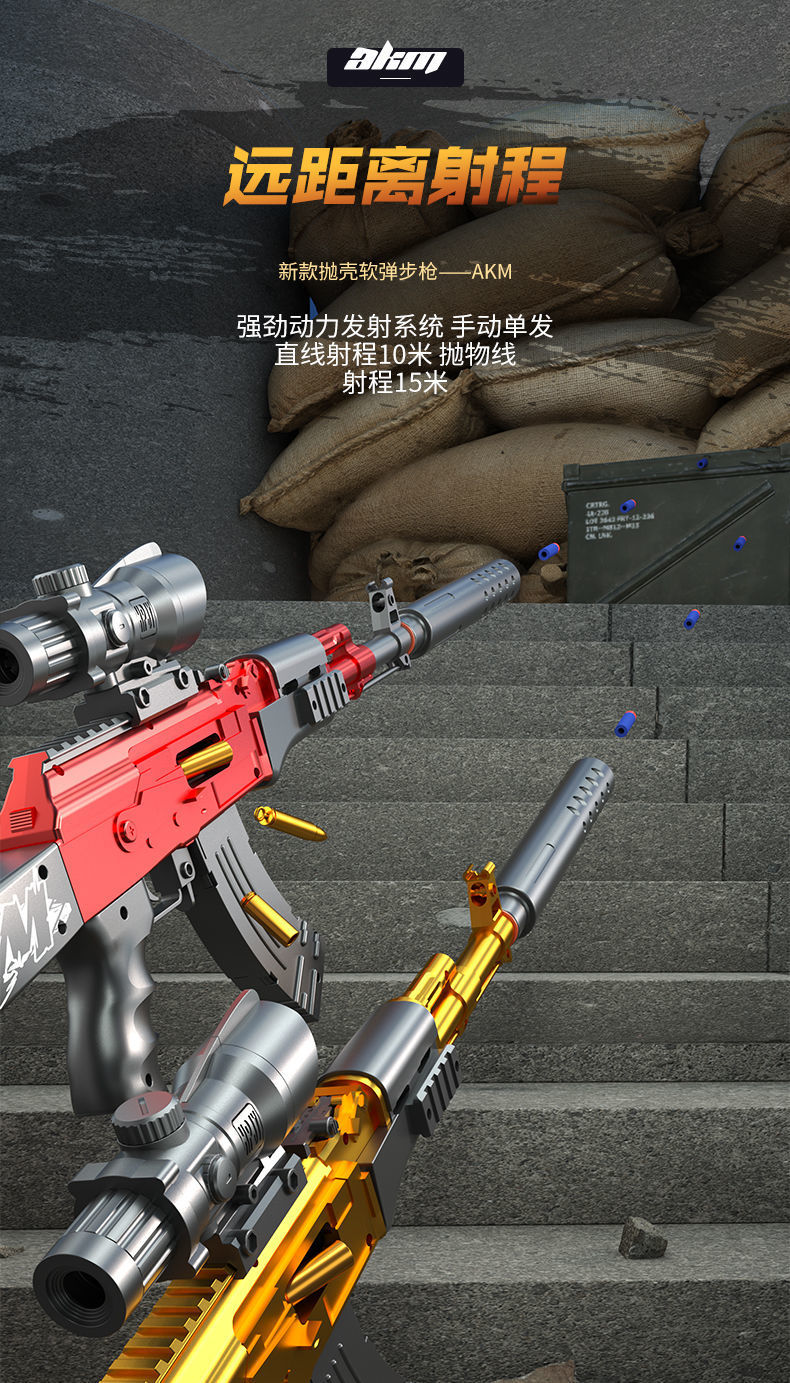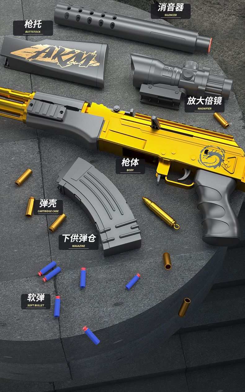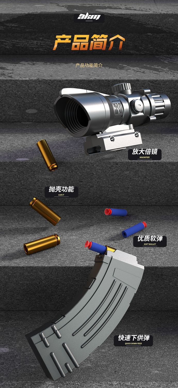超大号AK47抛壳软弹枪儿童玩具枪男孩玩具突击步枪吃鸡战术玩具枪