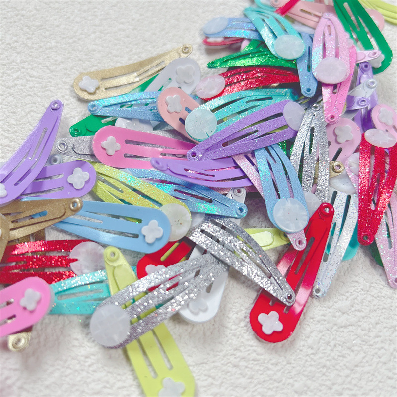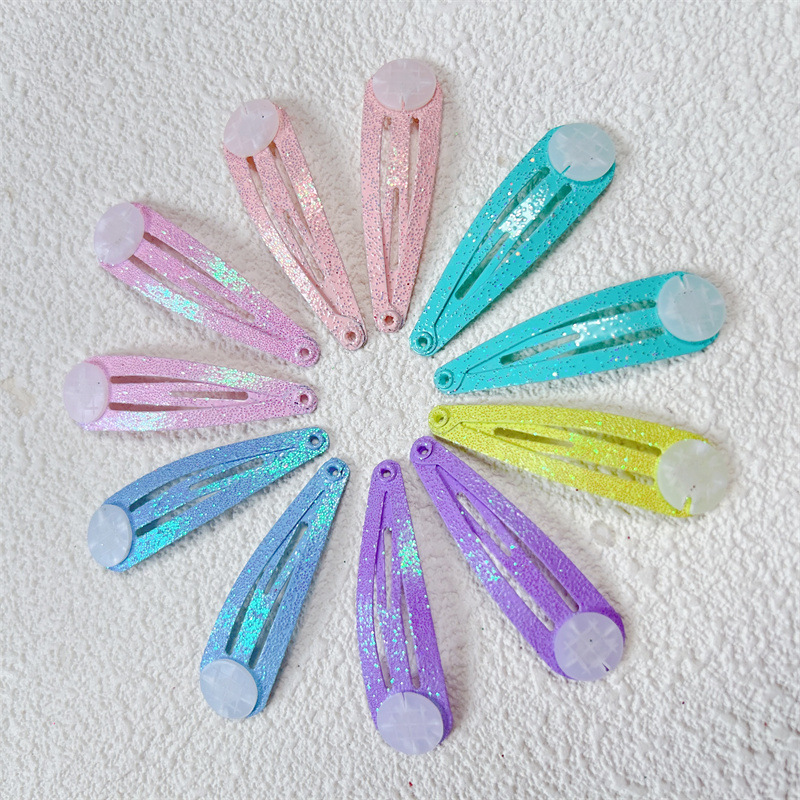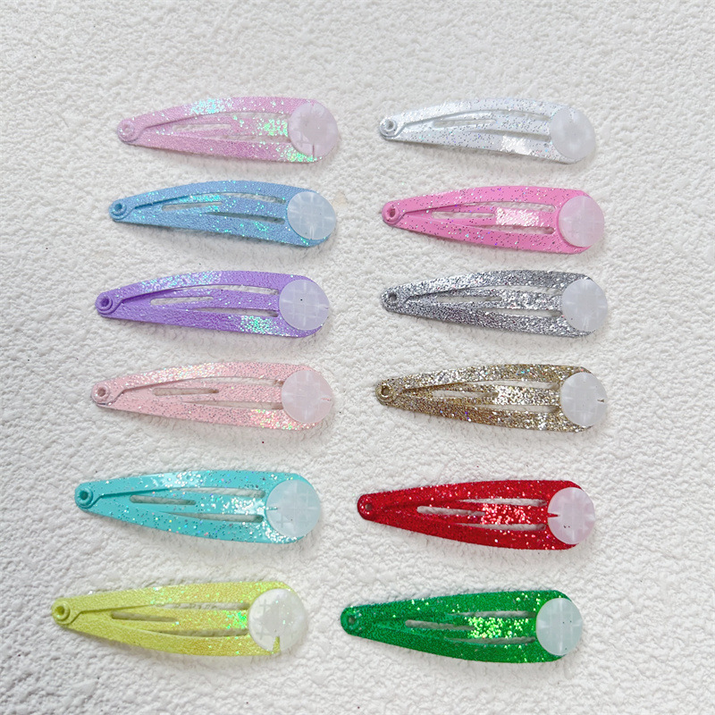 4cmDIY彩色儿童发夹外贸带垫片水滴夹糖果色BB夹发饰配件