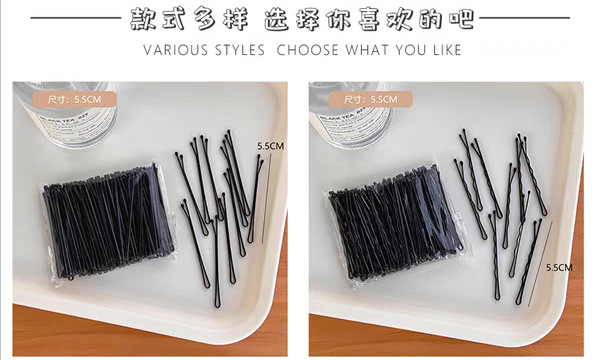 黑色一字夹发夹简约成人波浪夹小黑卡子头饰钢夹少女边夹发卡夹子