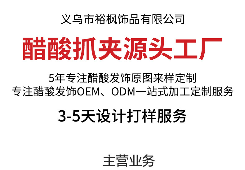 裕枫饰品加工定制醋酸发夹抓夹来图来样定做醋酸板材发饰鲨鱼夹