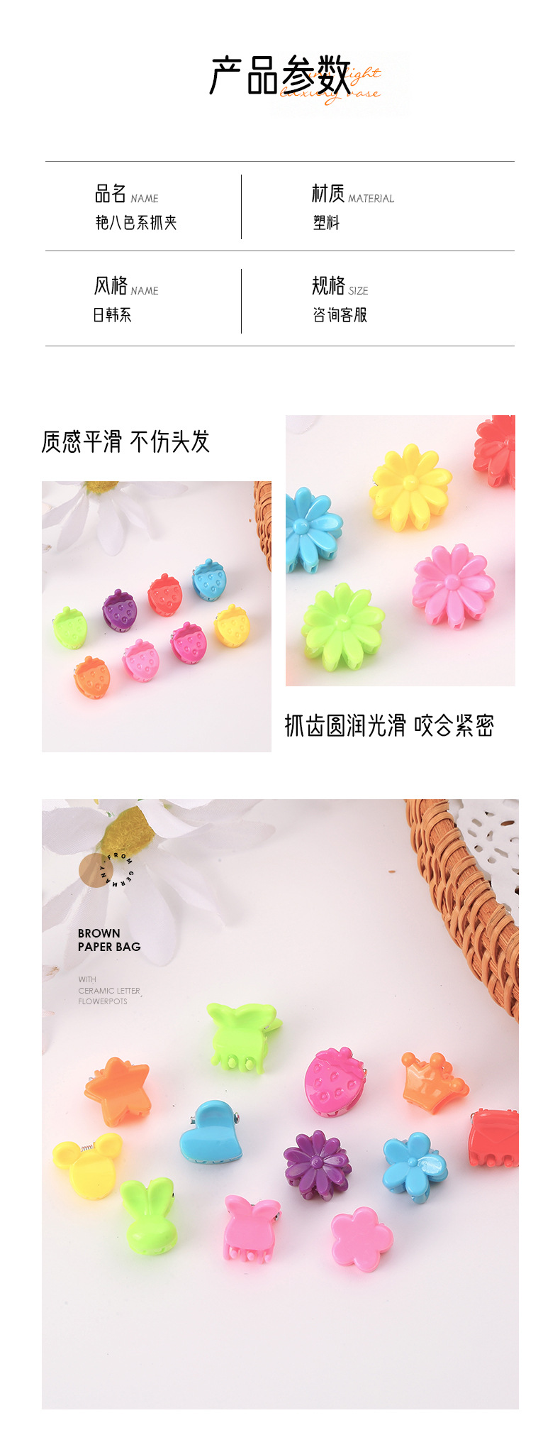 1.3艳八糖果彩色小夹子迷你小抓夹可爱小发夹刘海夹实色儿童发饰
