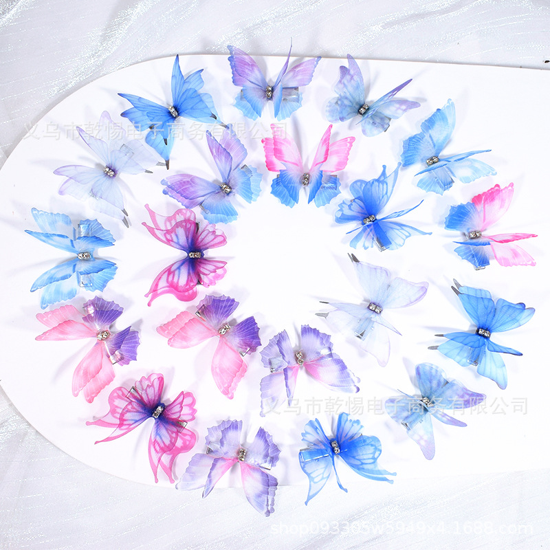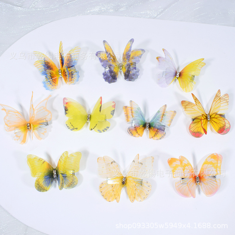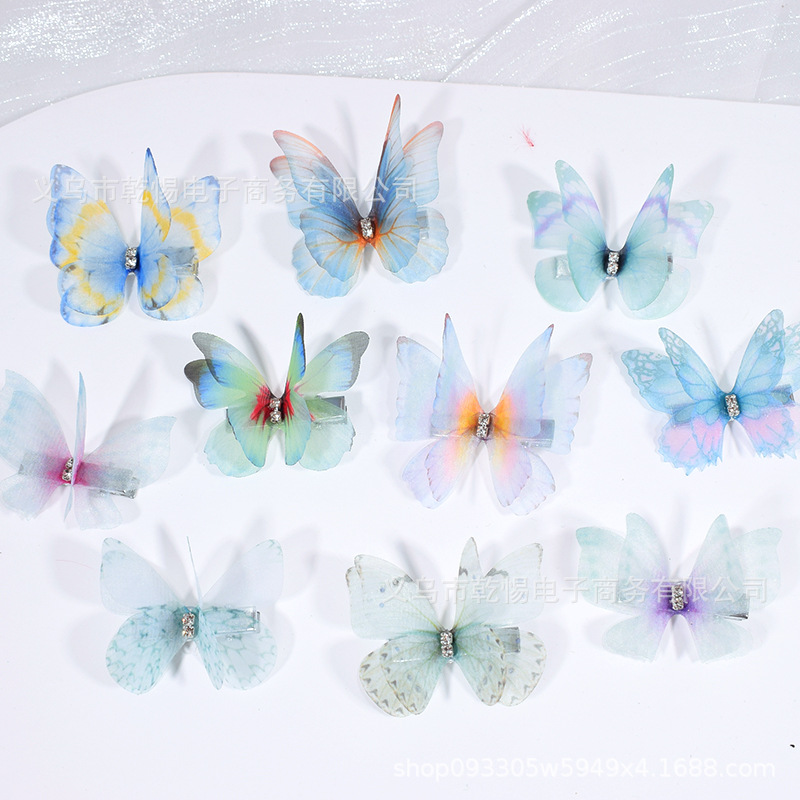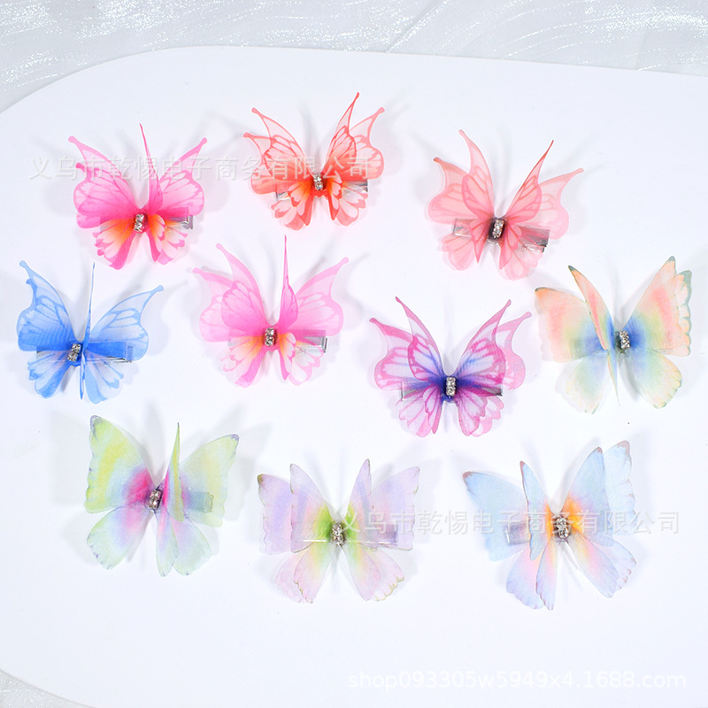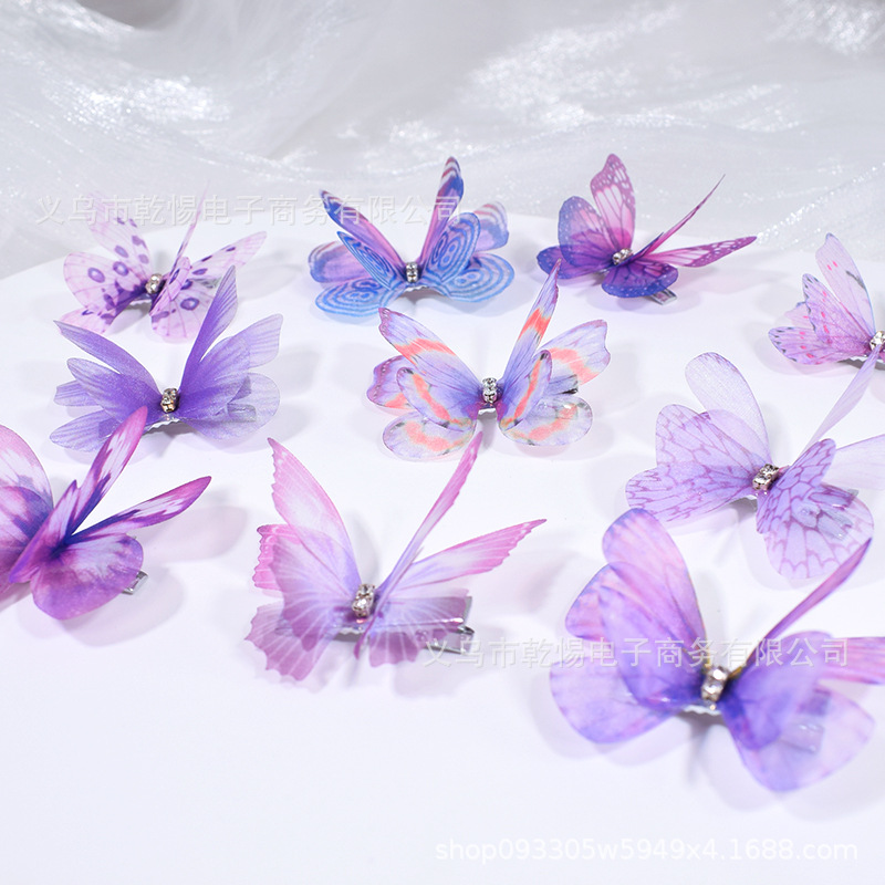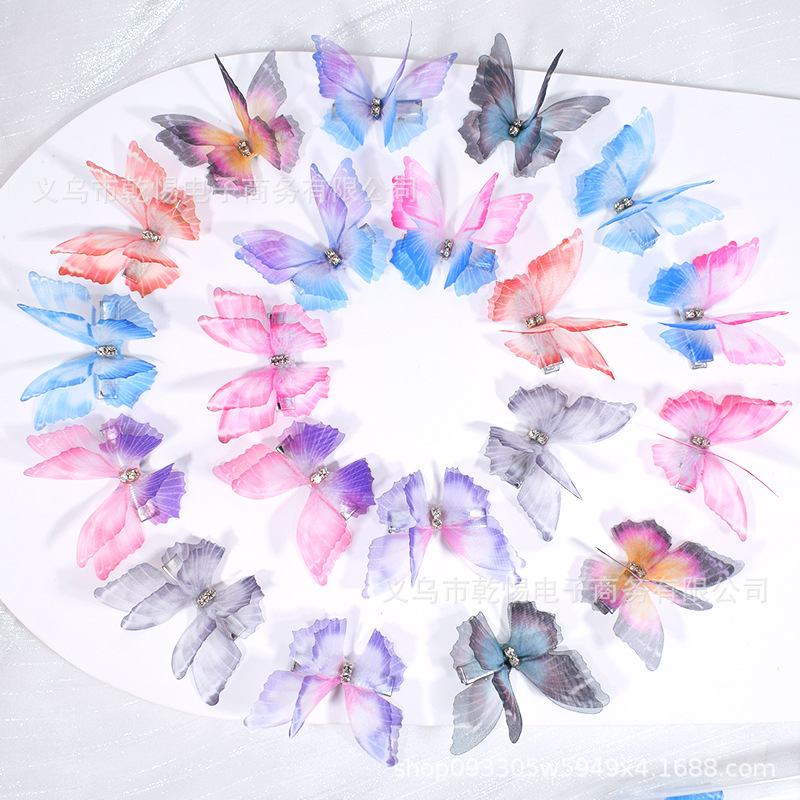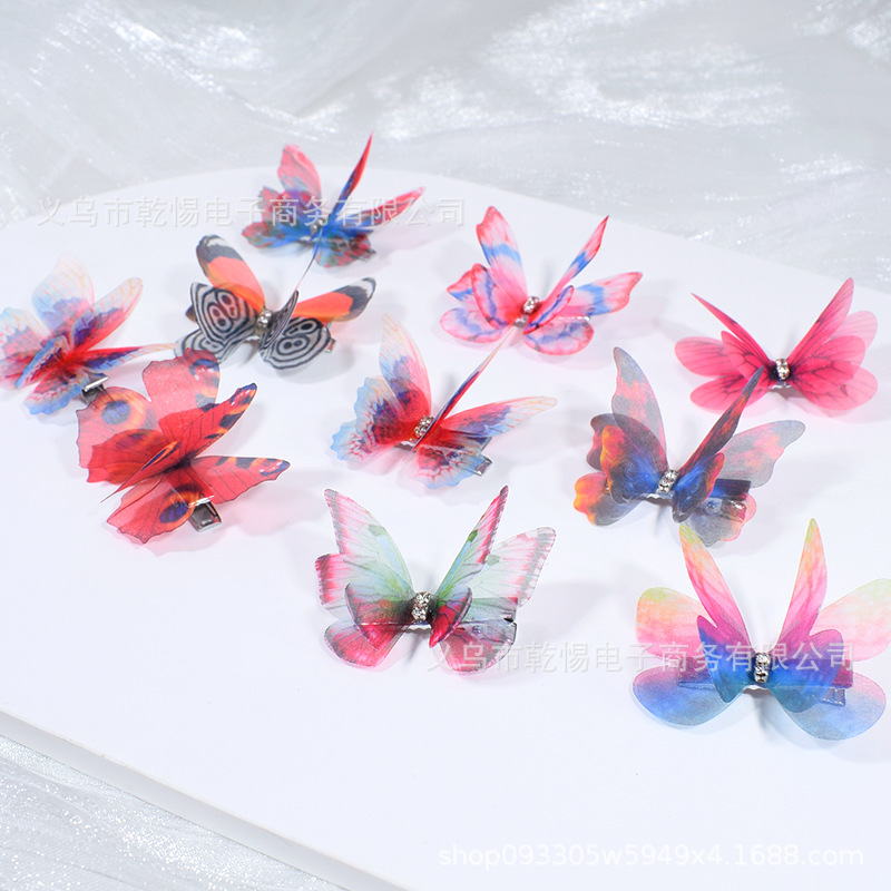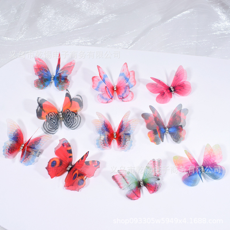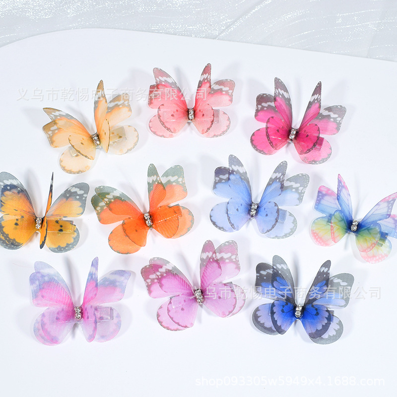 源头工厂新款仿真超仙立体薄纱蝴蝶发夹儿童发饰女孩绢纱蝴蝶边夹