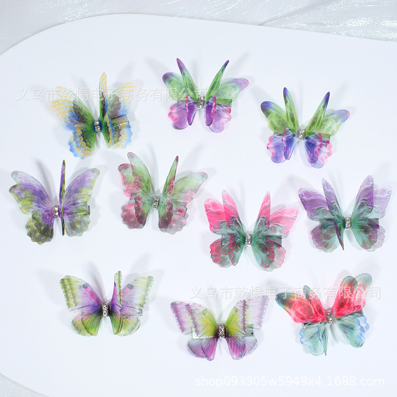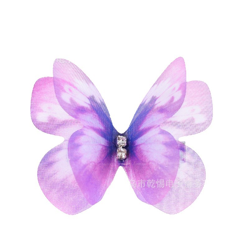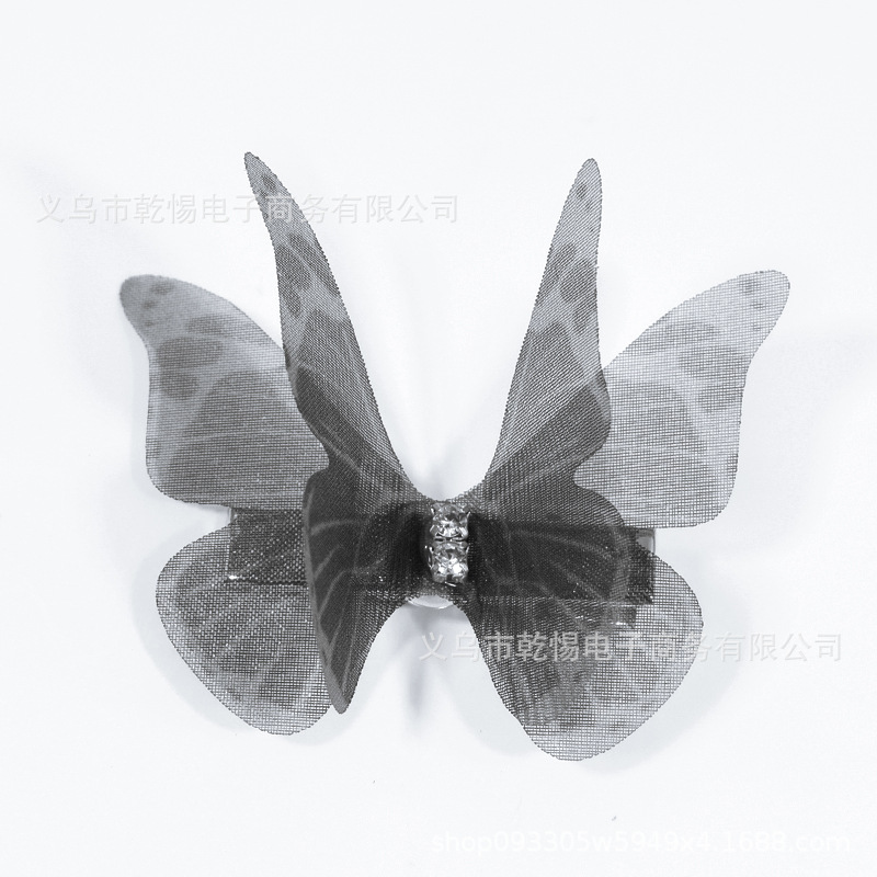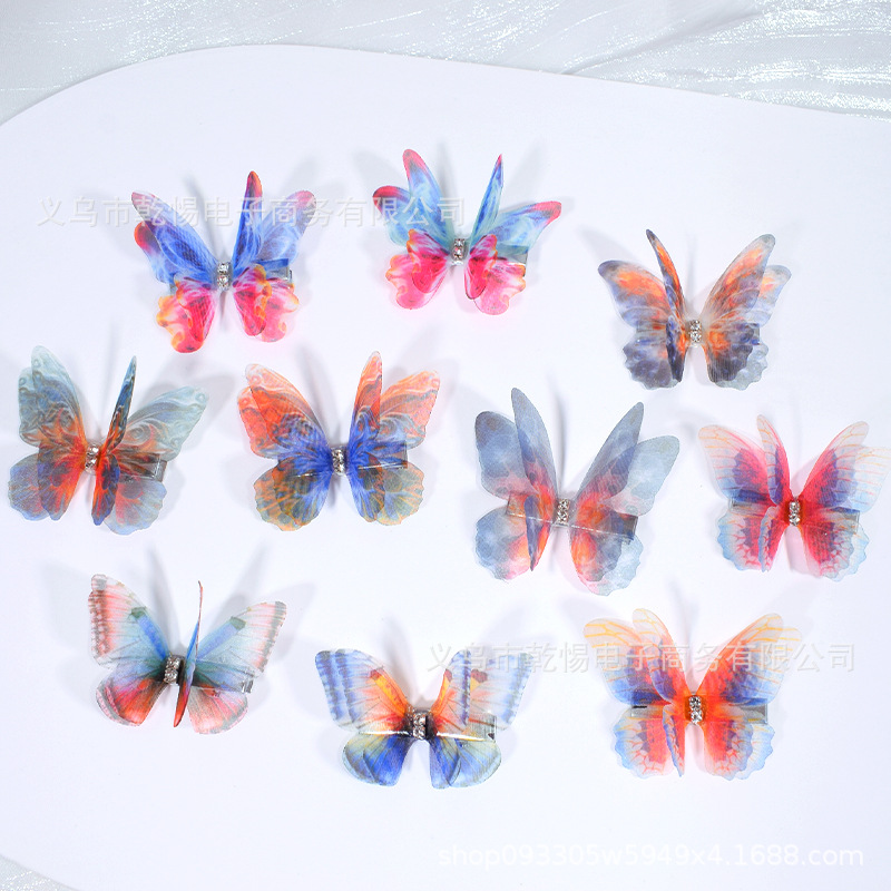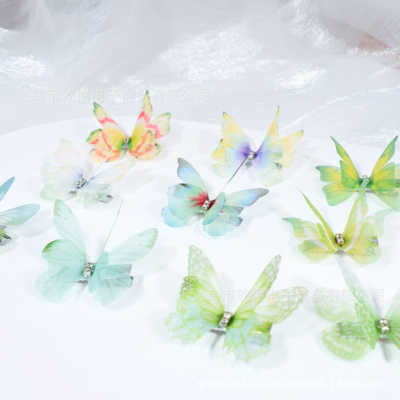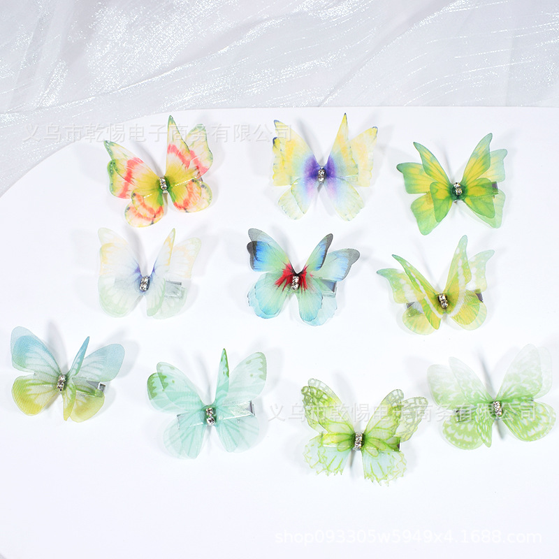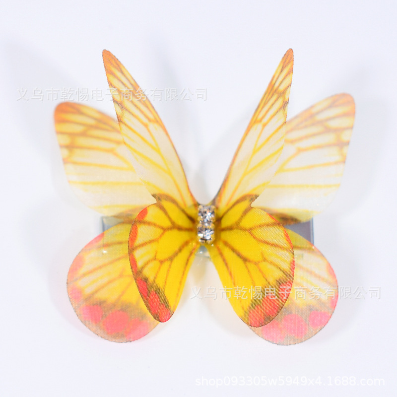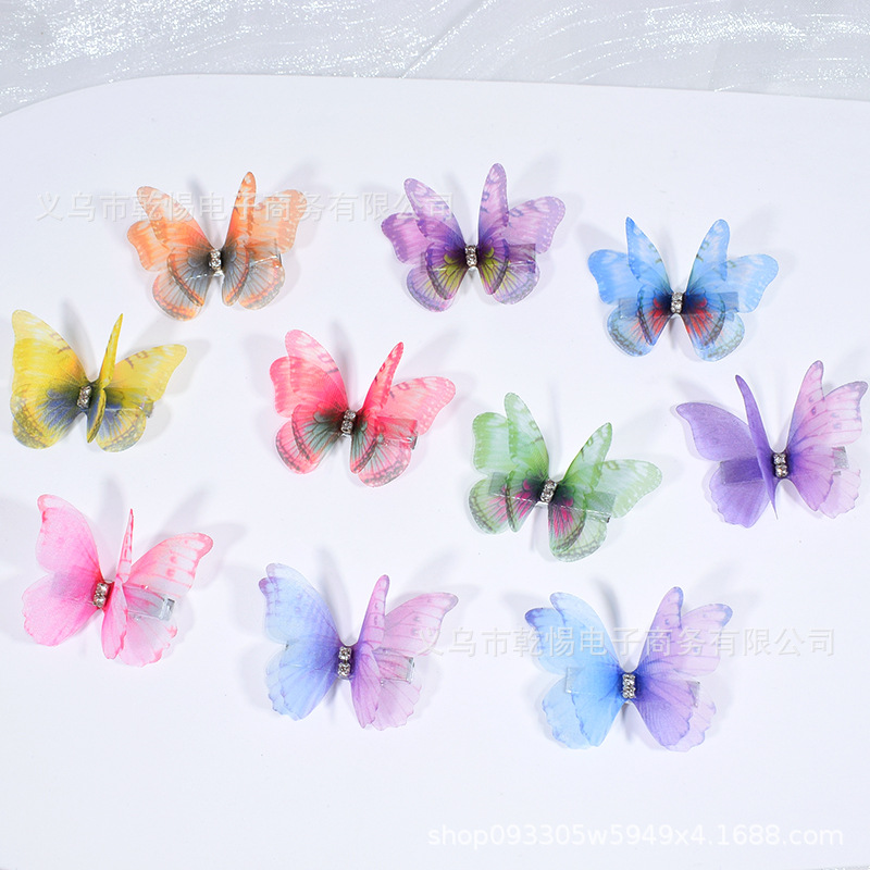 源头工厂新款仿真超仙立体薄纱蝴蝶发夹儿童发饰女孩绢纱蝴蝶边夹