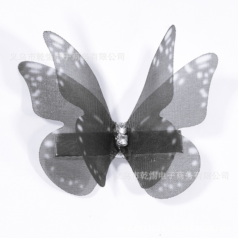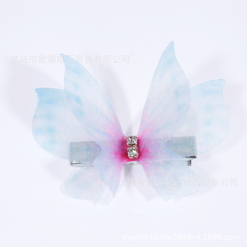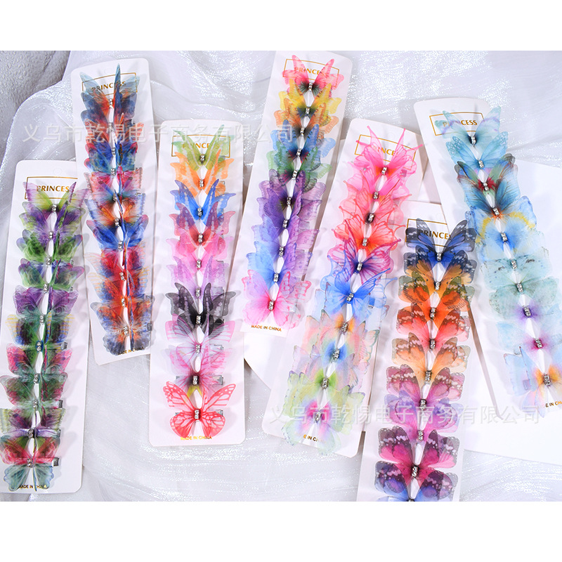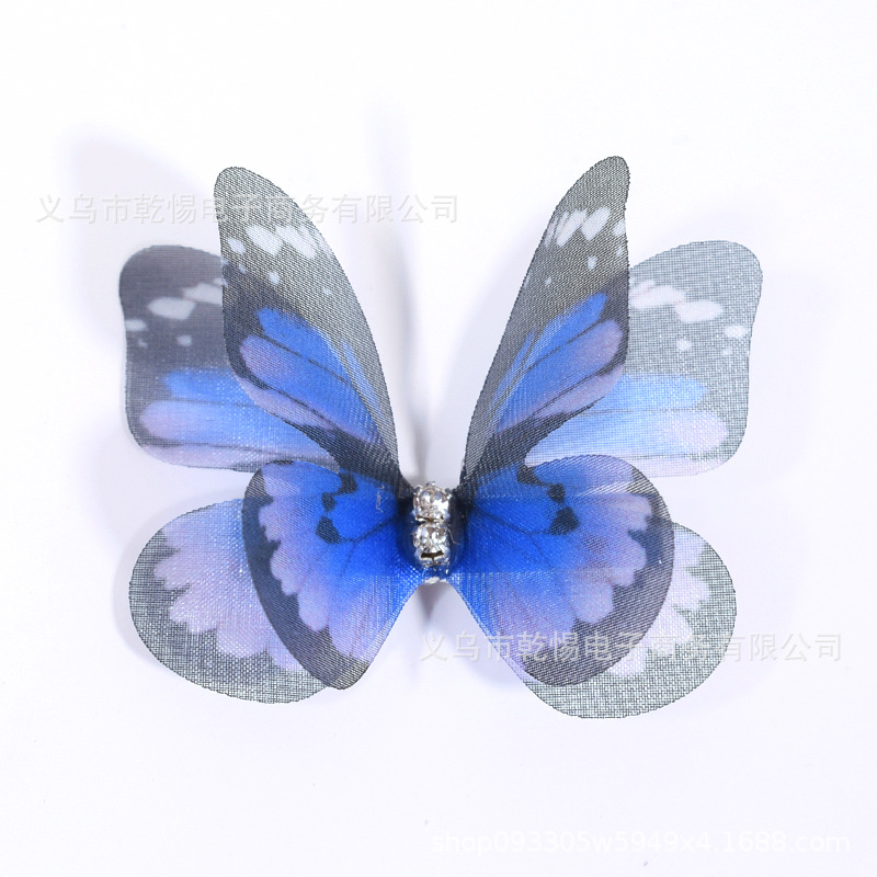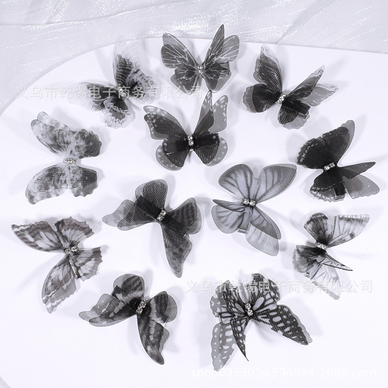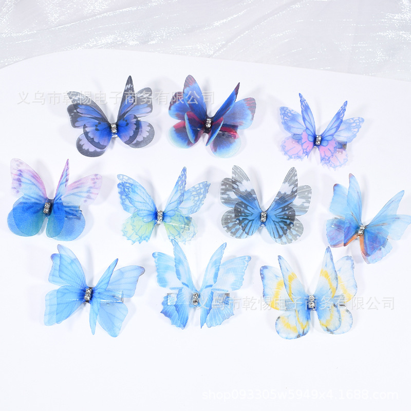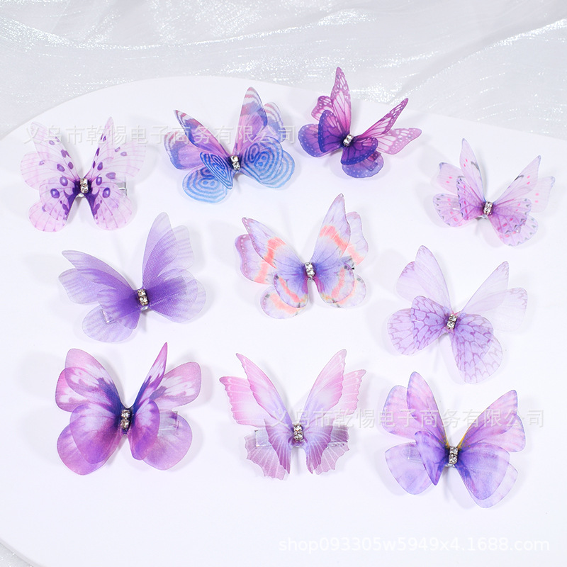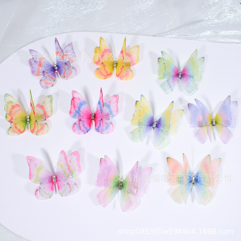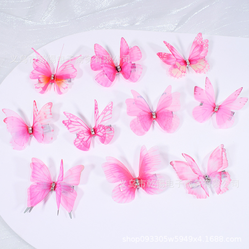 源头工厂新款仿真超仙立体薄纱蝴蝶发夹儿童发饰女孩绢纱蝴蝶边夹