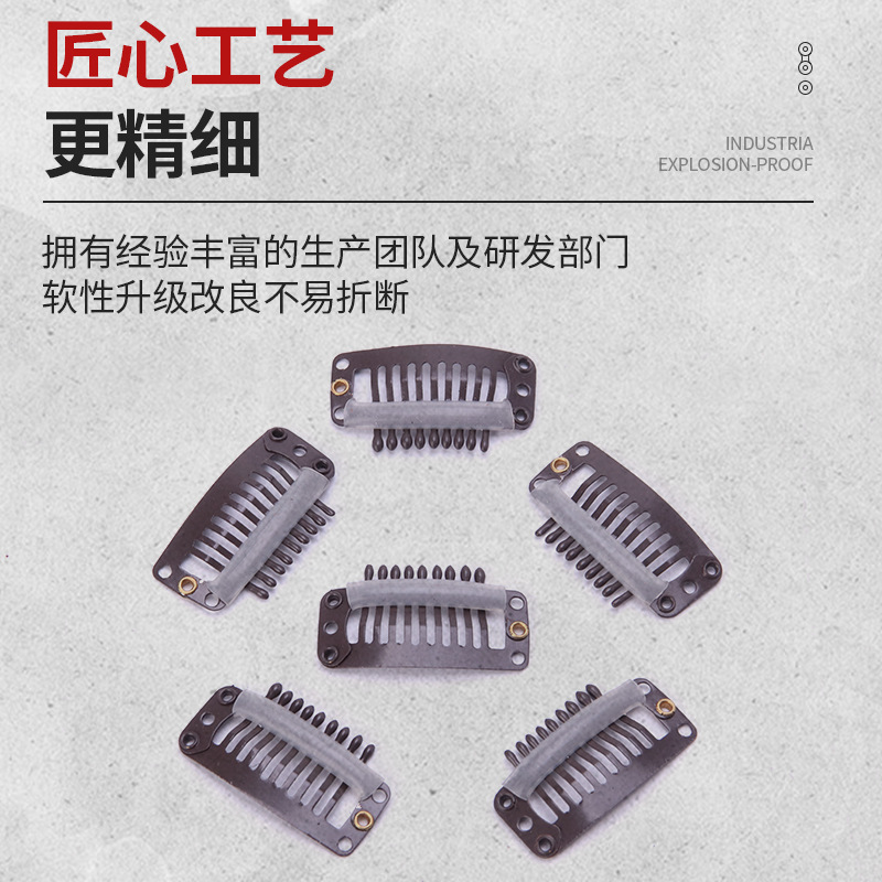 黑色烤漆不锈钢BB卡子贝雷帽防掉固定夹子九齿水滴三孔接发夹