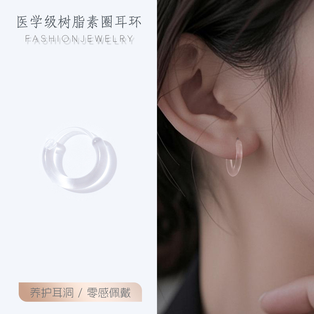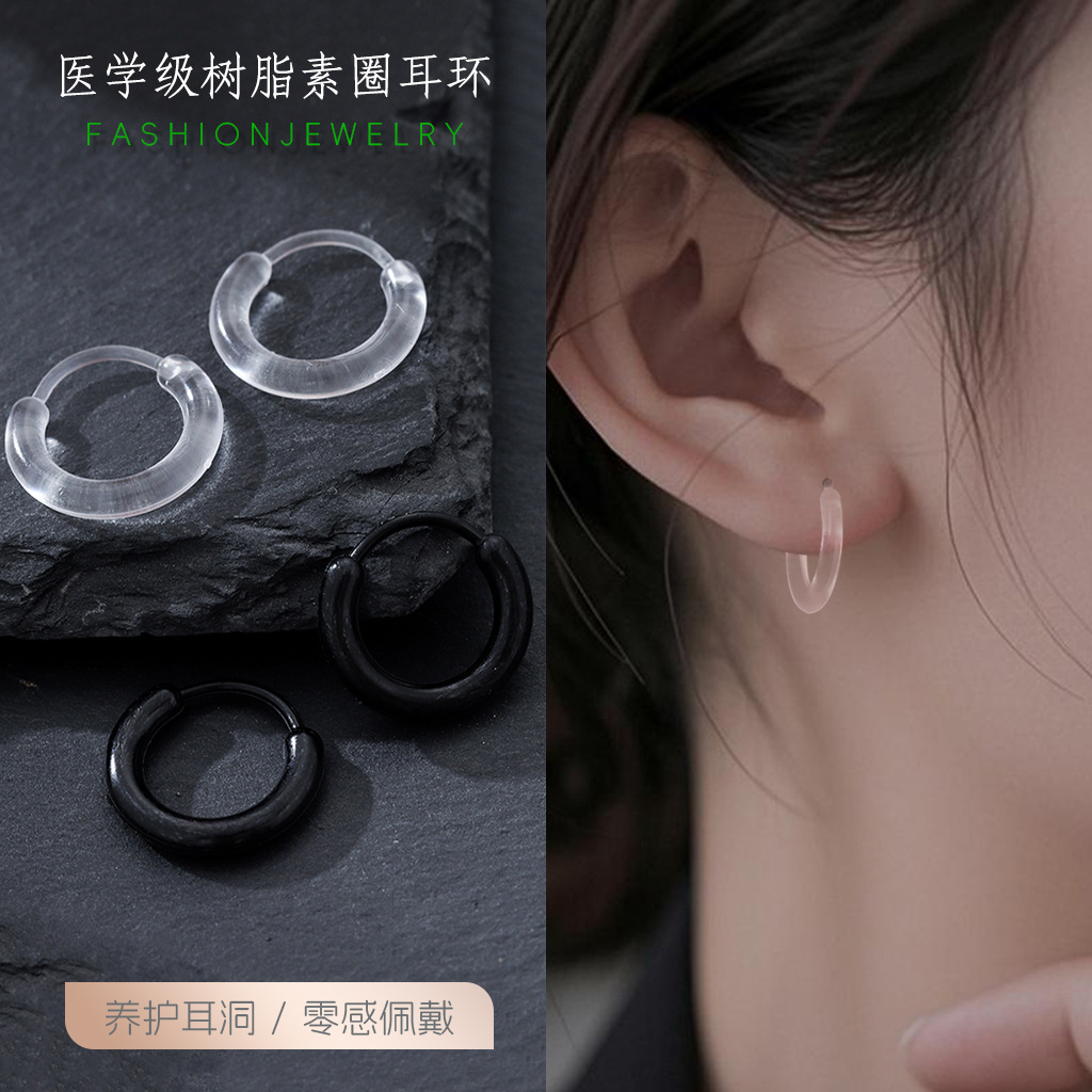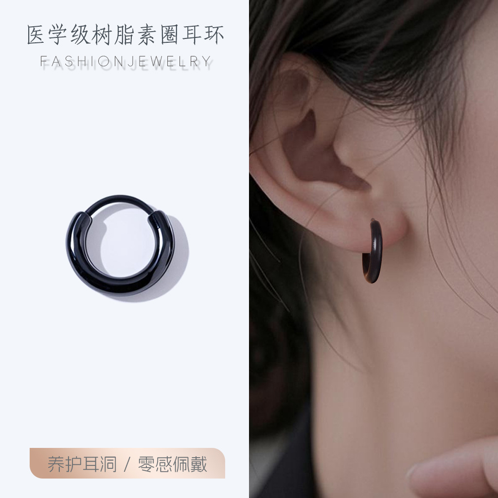 树脂养耳洞耳圈男女耳环新款潮彩色圈圈耳扣韩版学生百搭耳圈耳饰