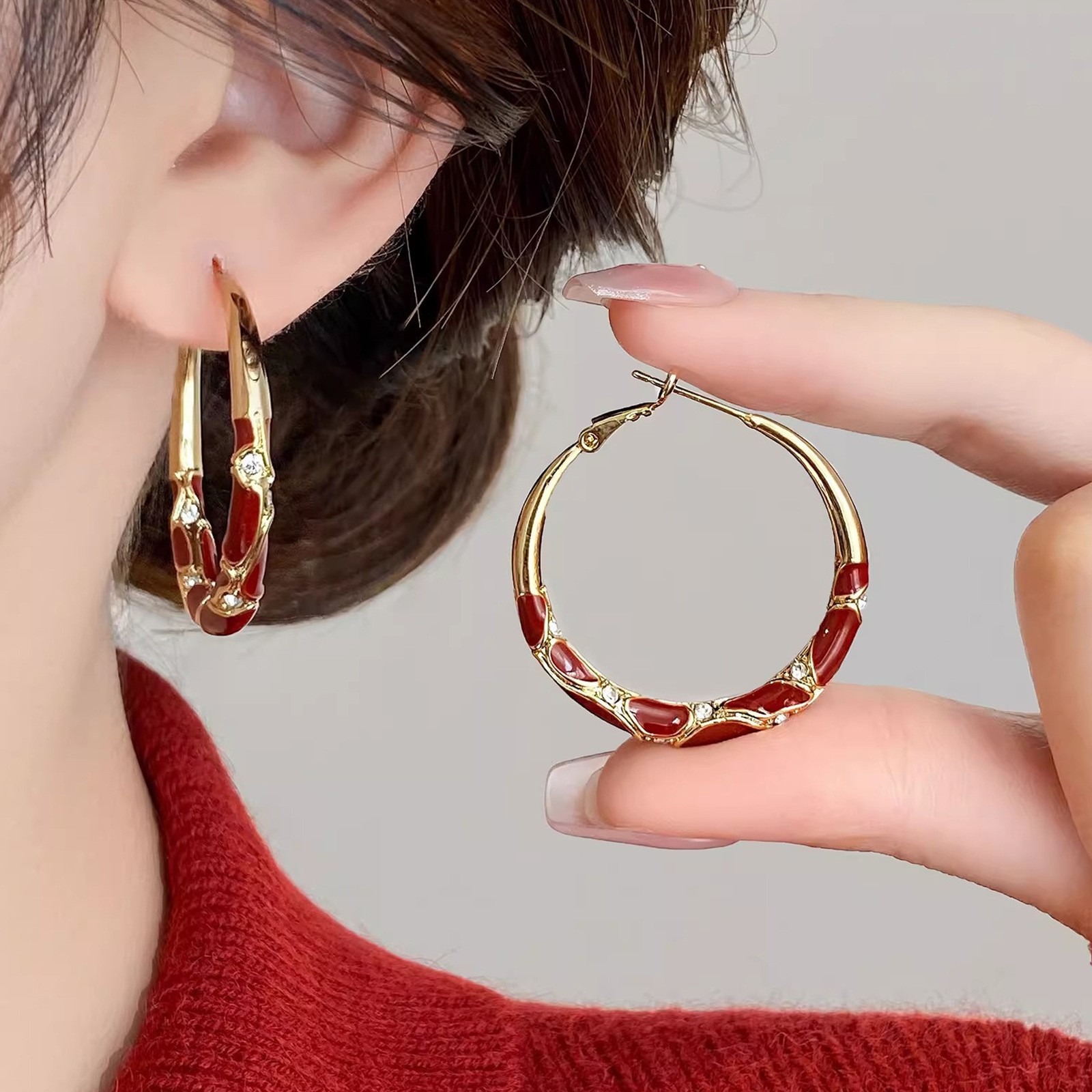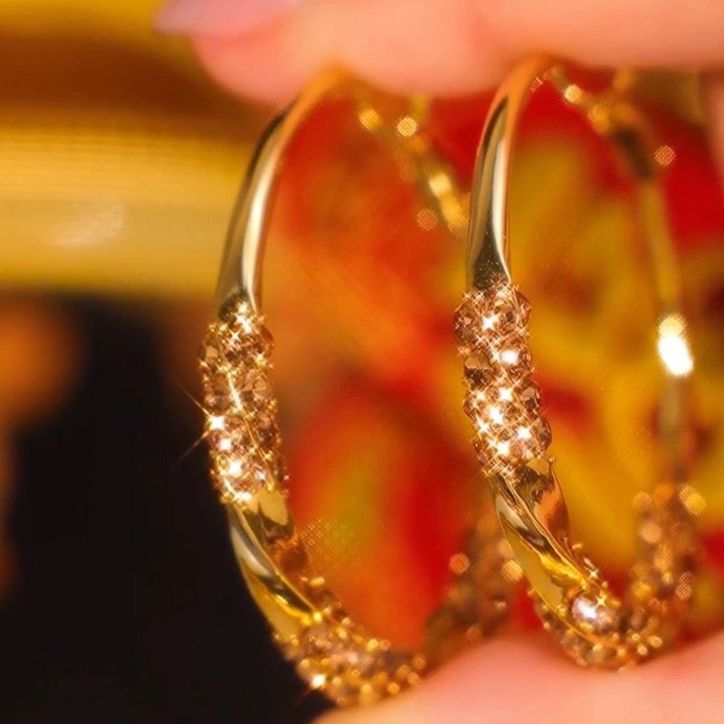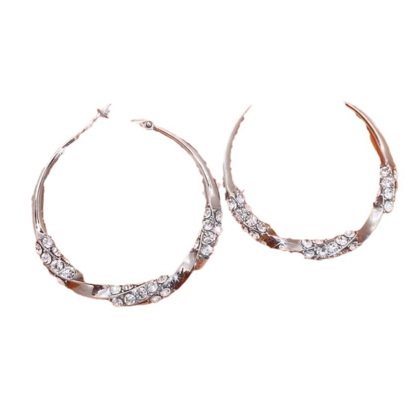 高级感镶钻耳圈银色锆石大圈圈耳环2024新款爆款轻奢气质圆圈耳饰