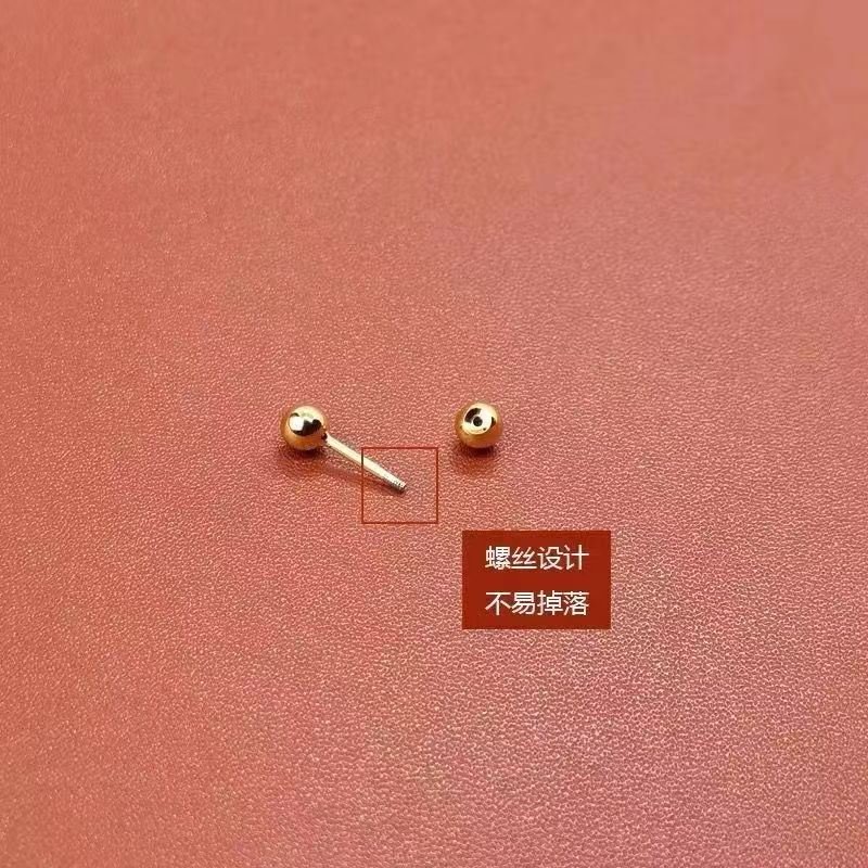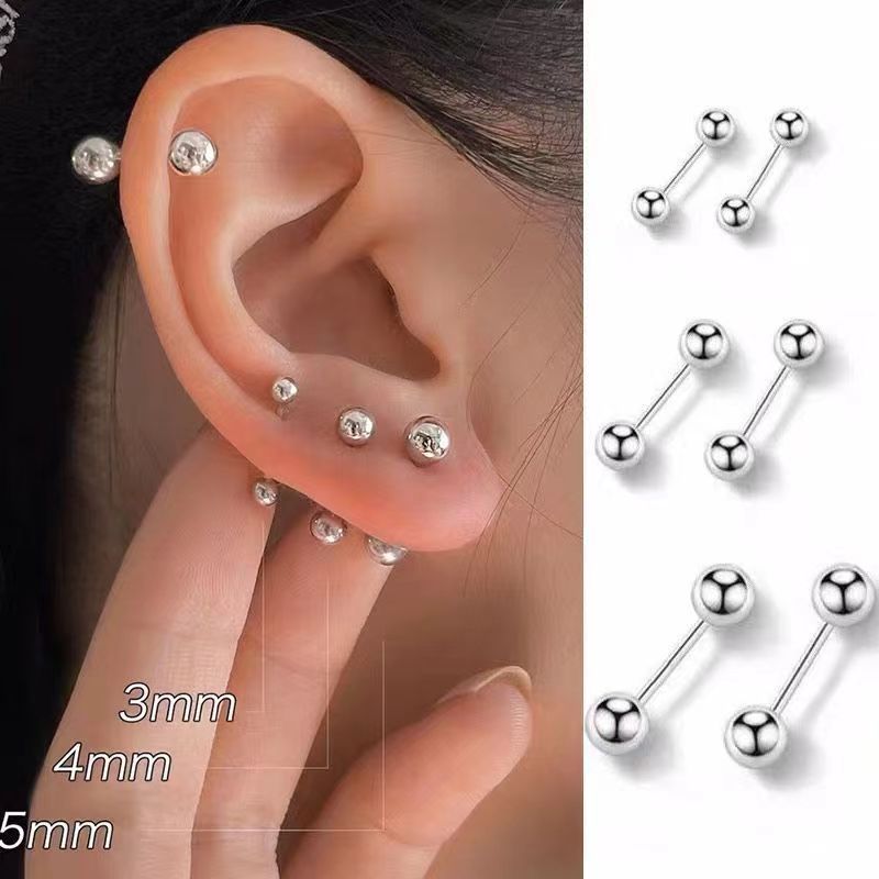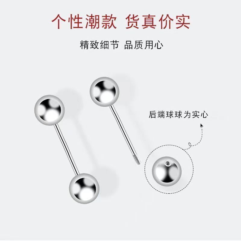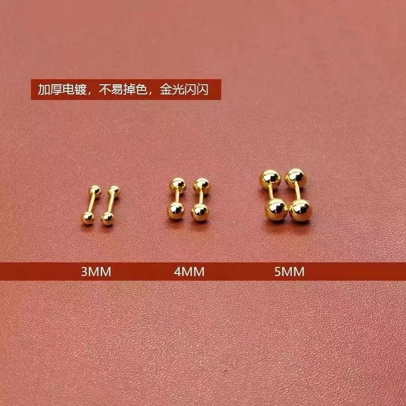 钛钢双头豆豆耳骨钉螺纹耳蜗耳环女耳饰几何元素养专用清新甜美