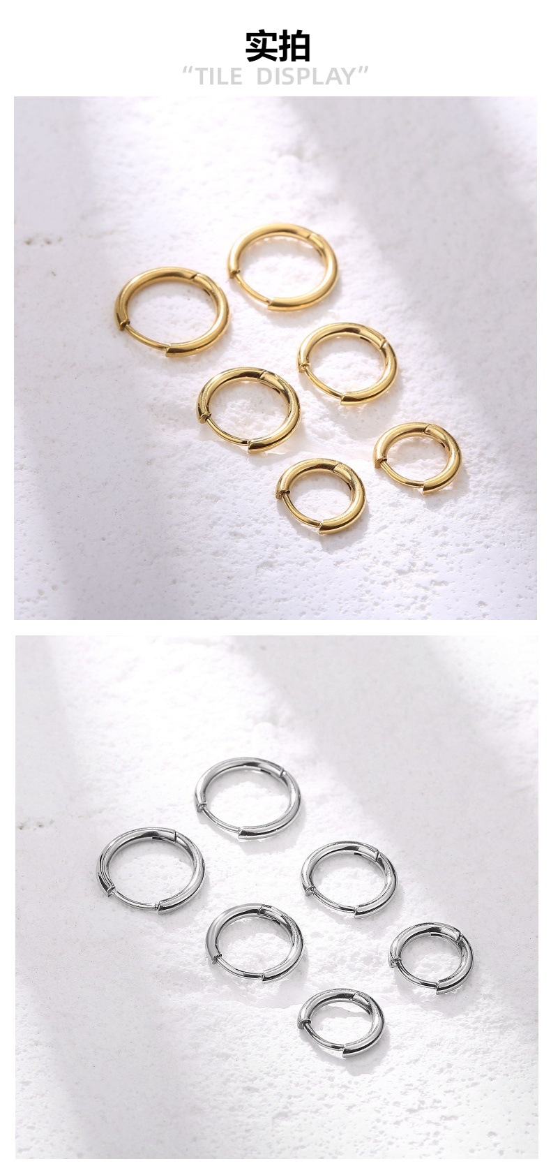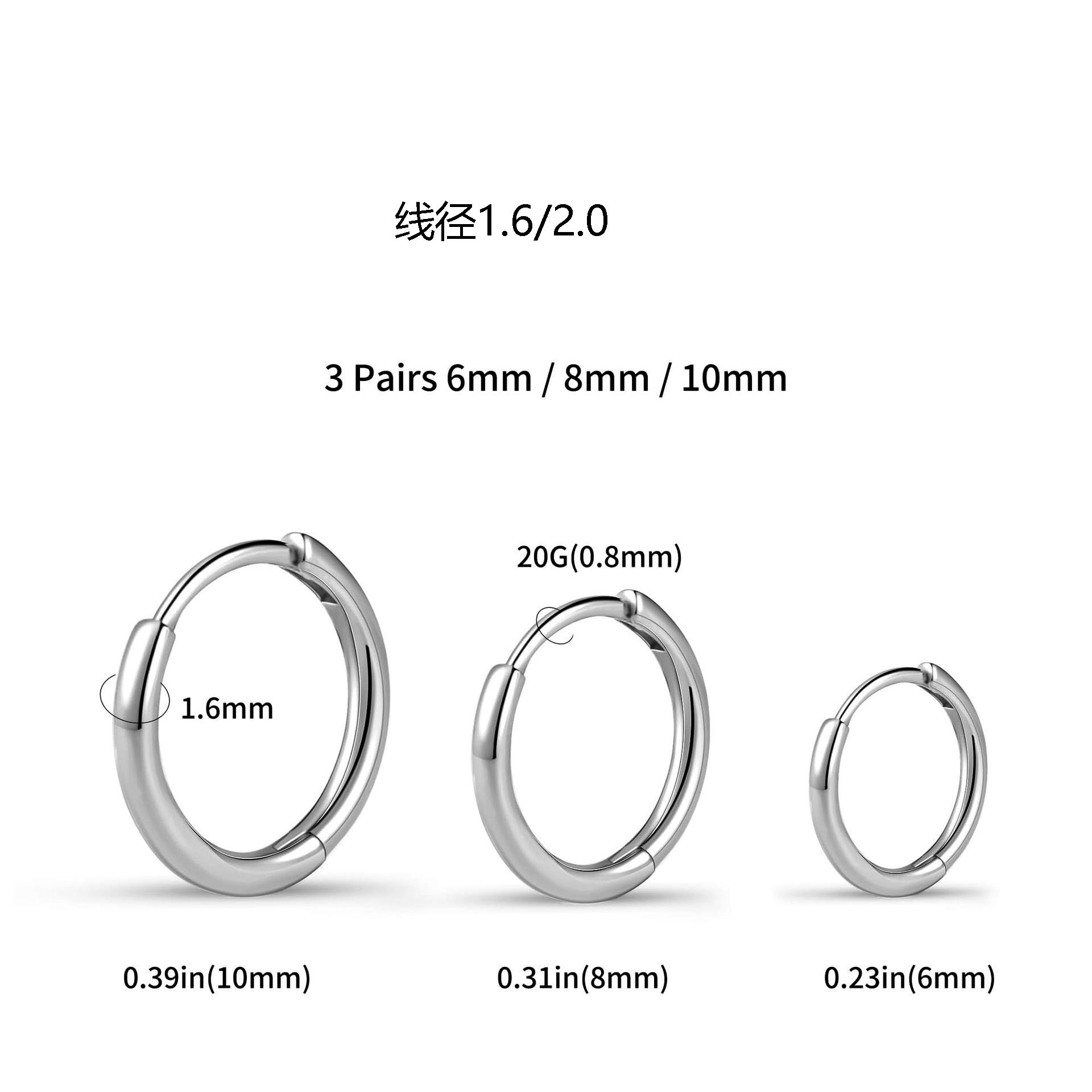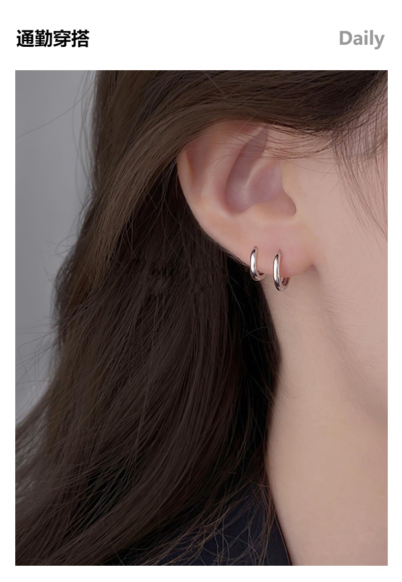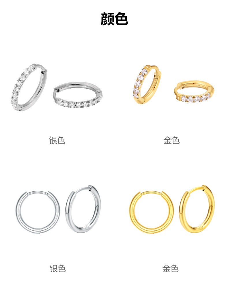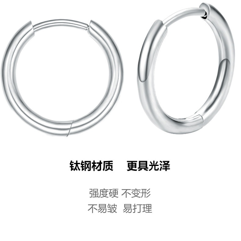 圆线耳环 钛钢耳扣 简约百搭男女同款粗细线圈耳圈 跨境热卖