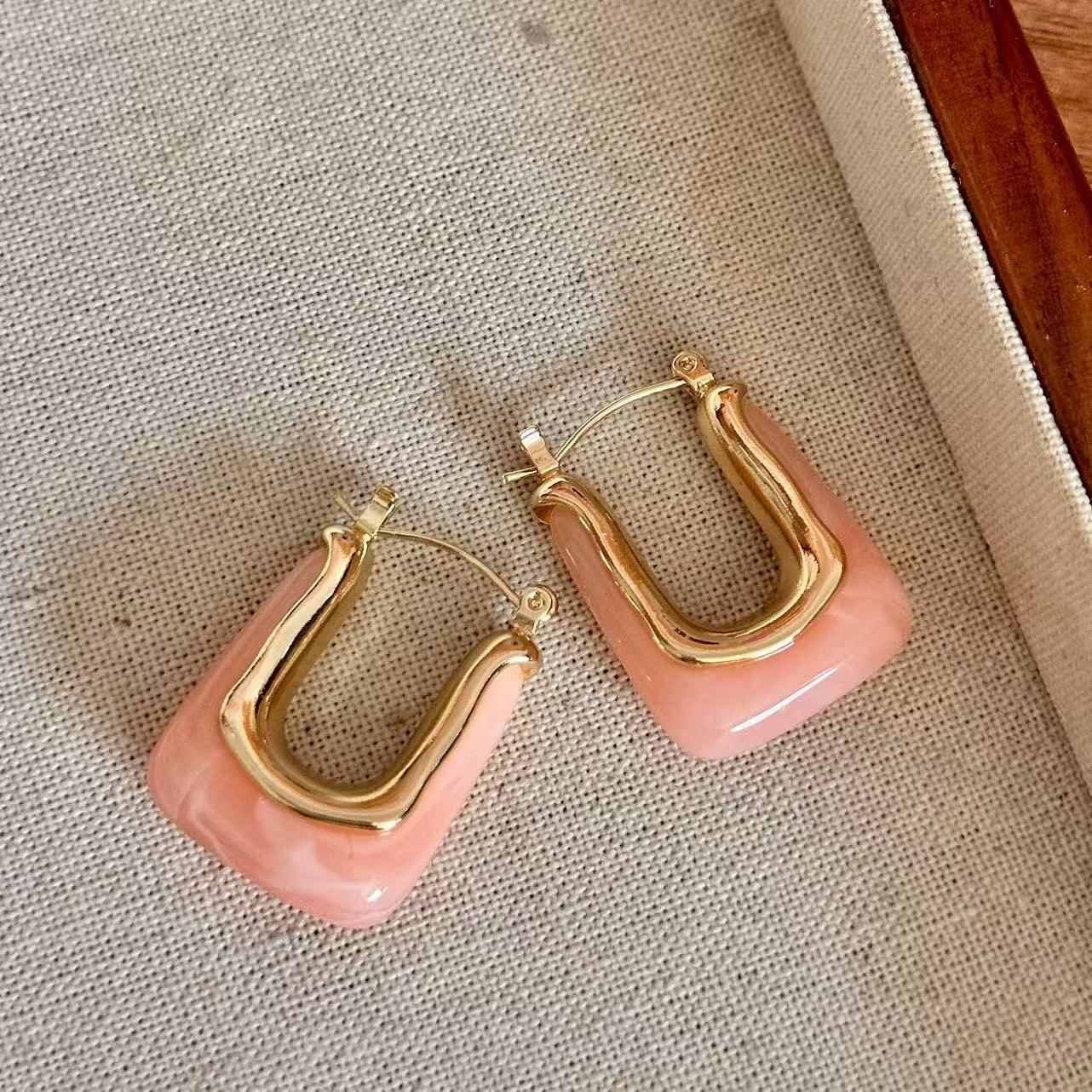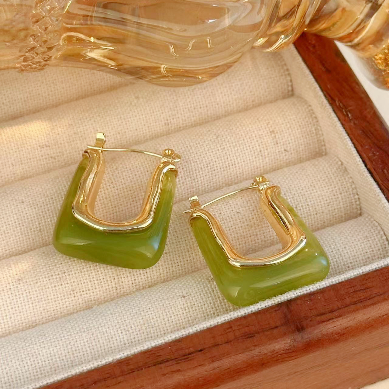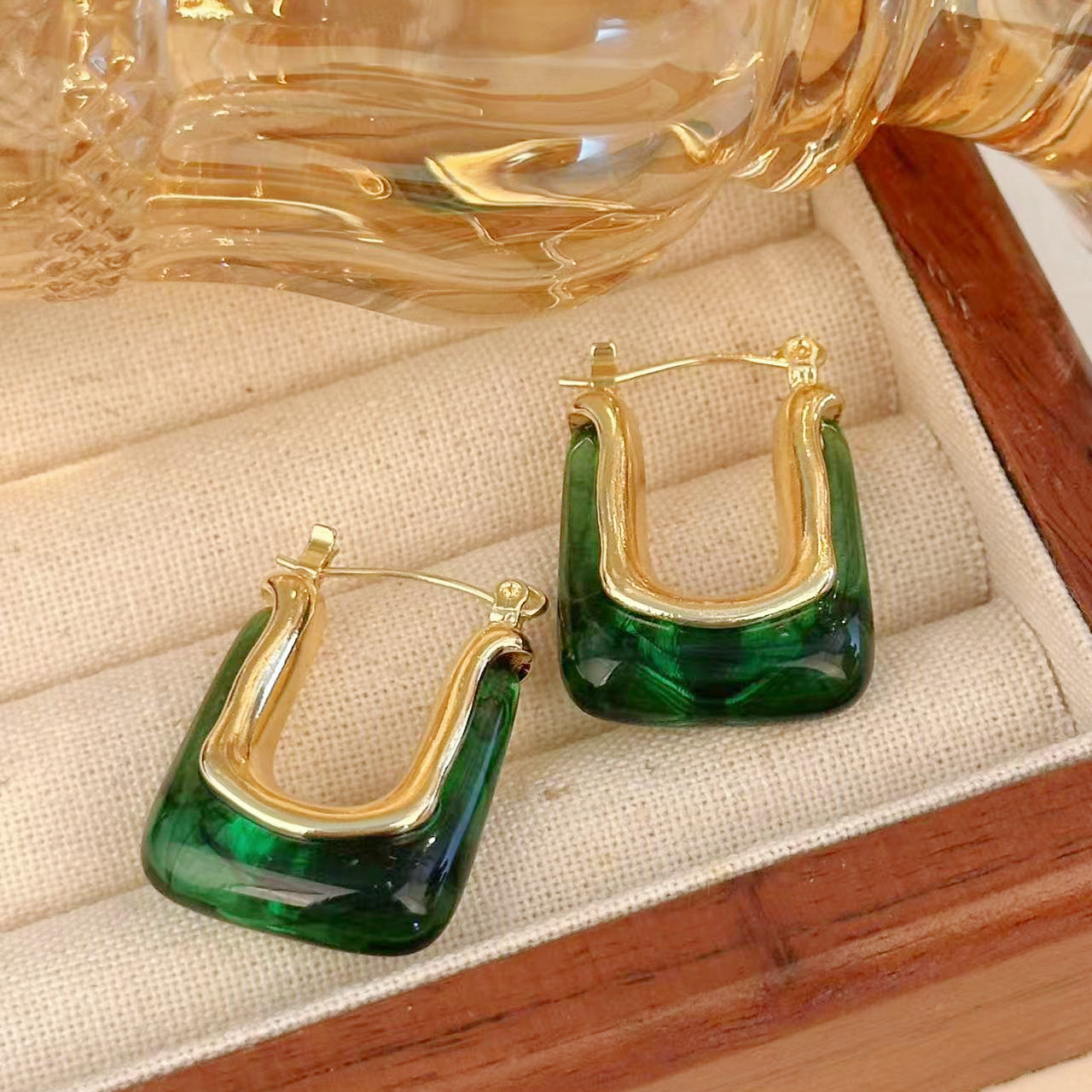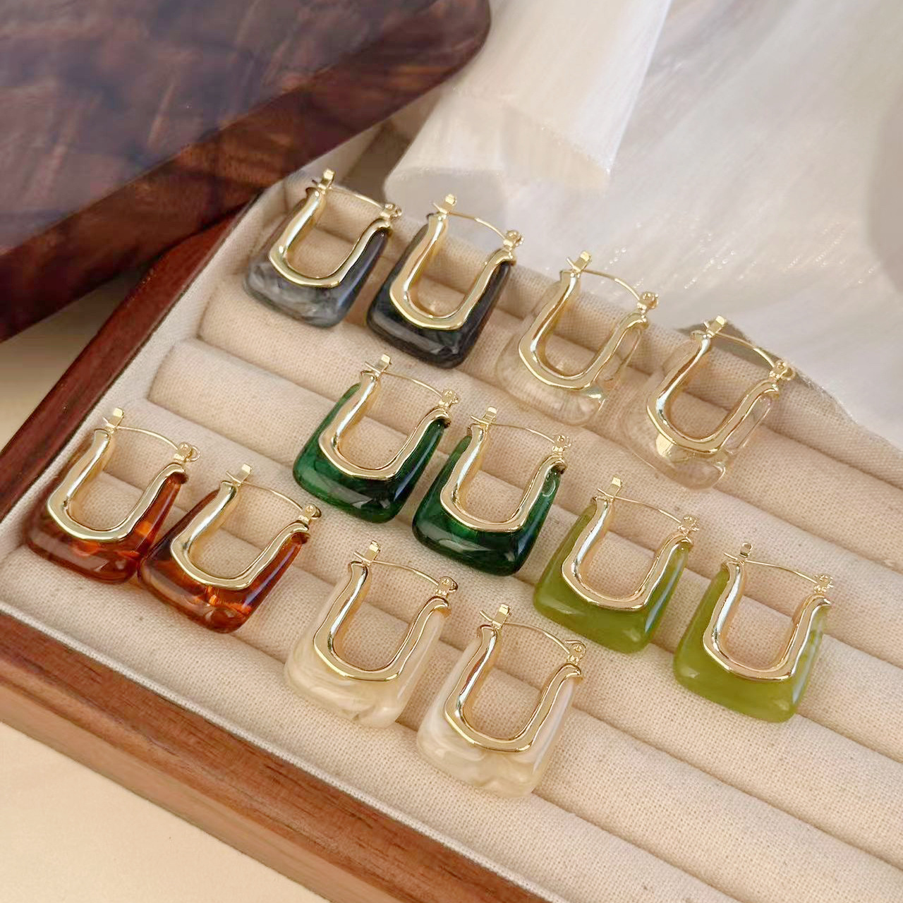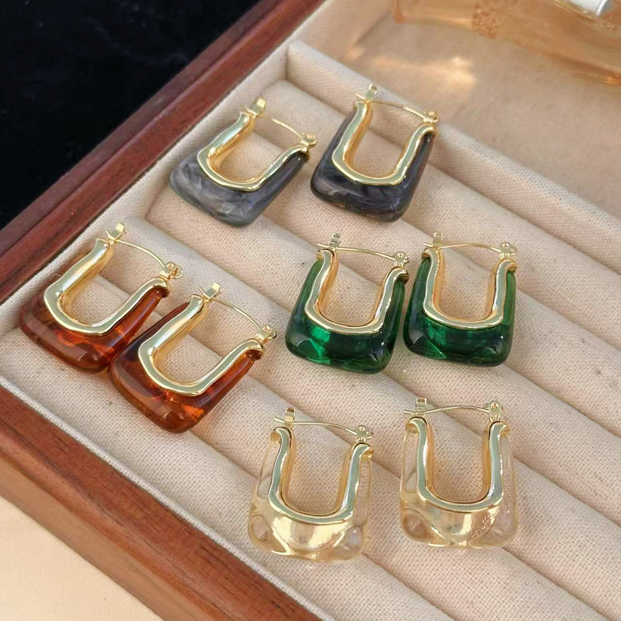 复古亚克力U形时尚耳扣高级感个性几何耳环跨境气质方形树脂耳饰