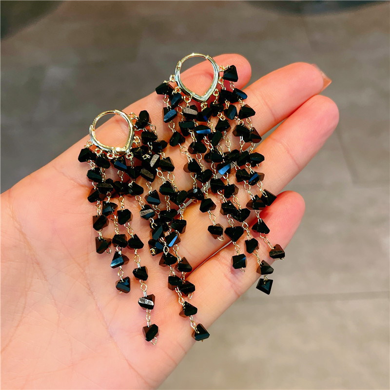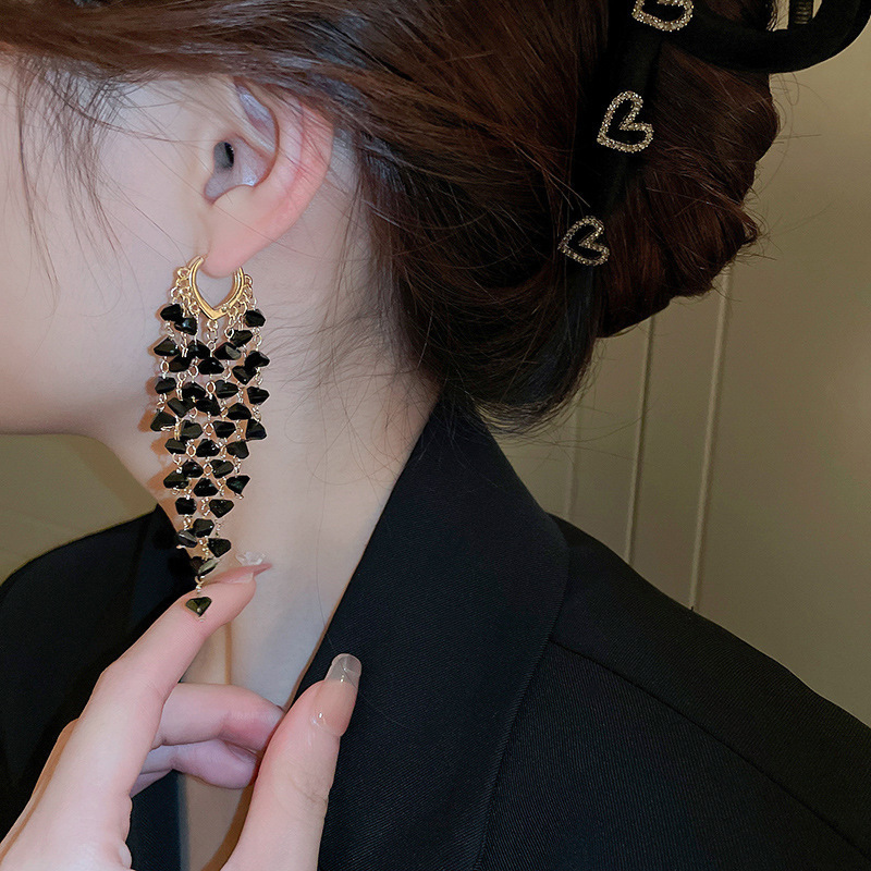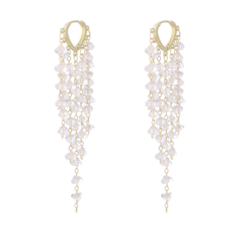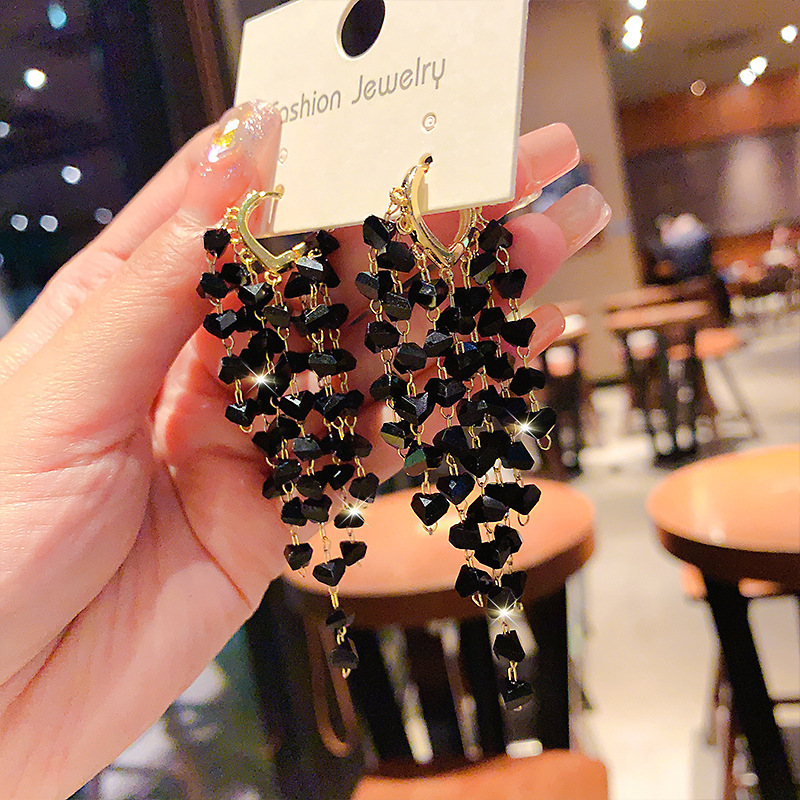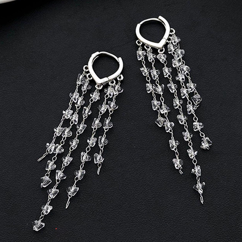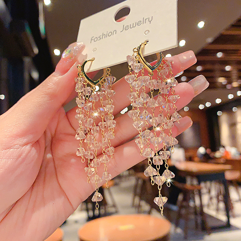 超仙水晶流苏耳扣耳环2025年新款潮韩国网红气质高级感轻奢耳饰女