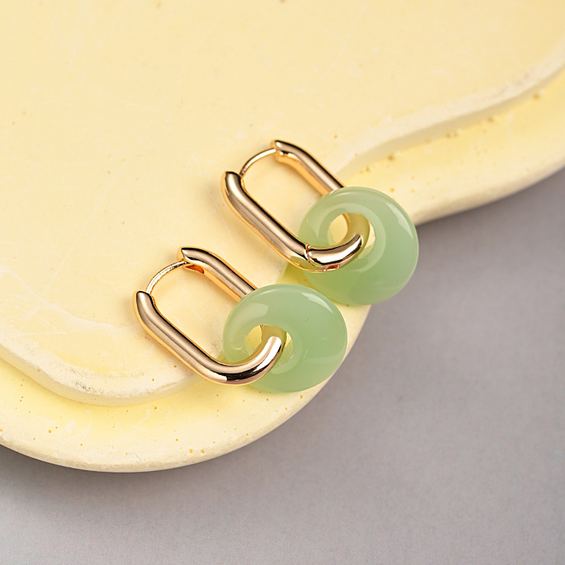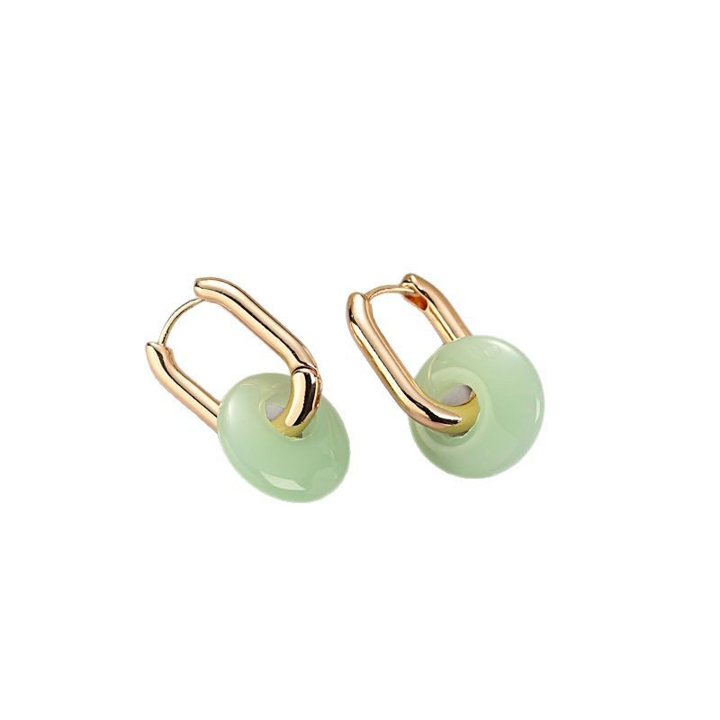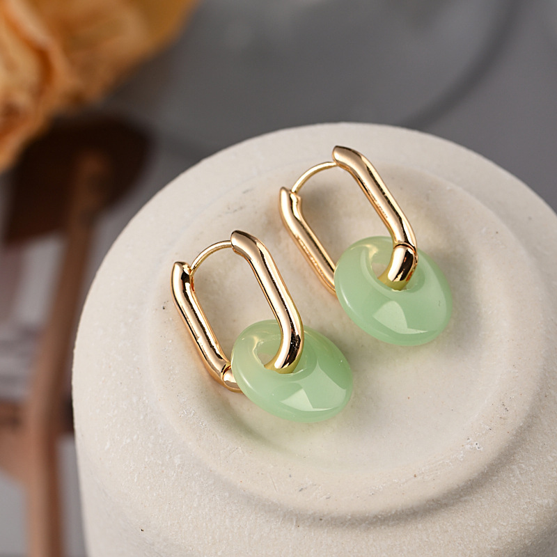 新中式仿玉平安扣耳扣女百搭气质设计感两戴圆圈耳环轻奢风耳饰品