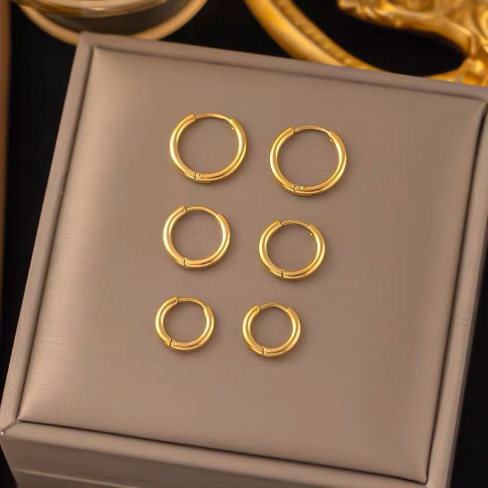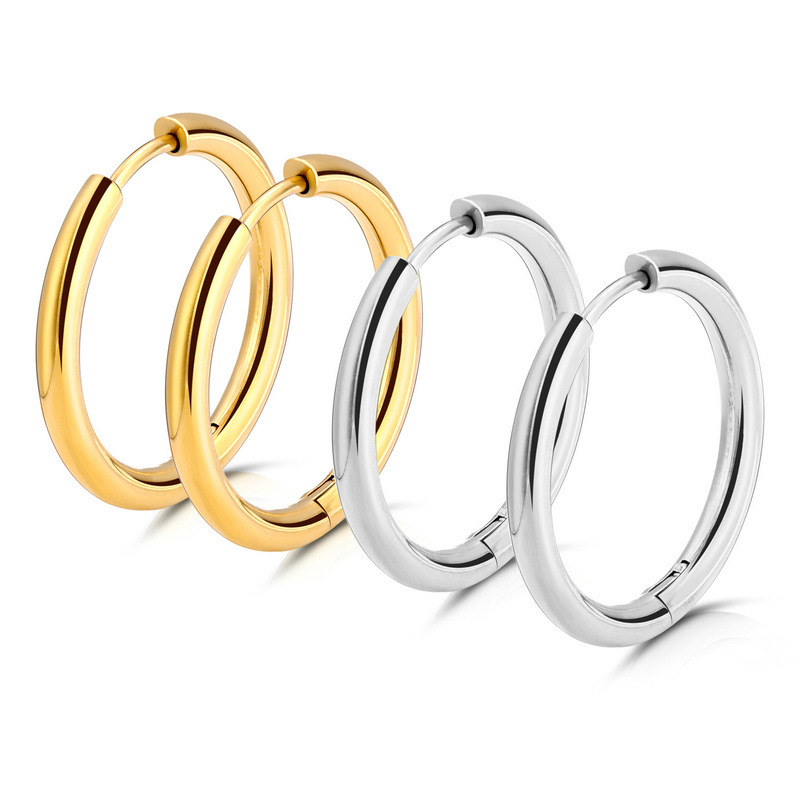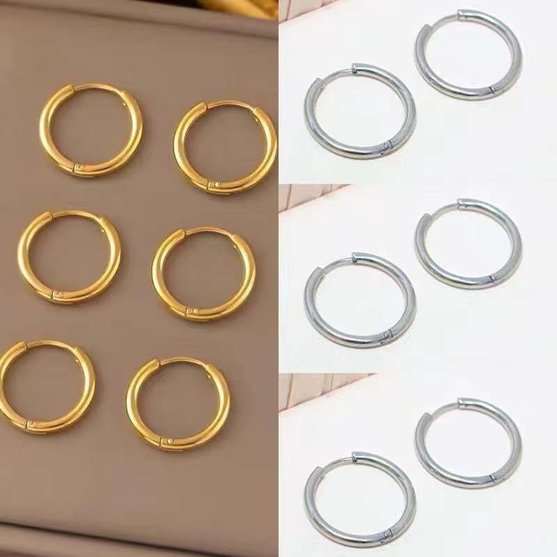 日韩简约时尚穿刺耳环百搭通勤多尺寸男女通款不锈钢素圈耳饰品