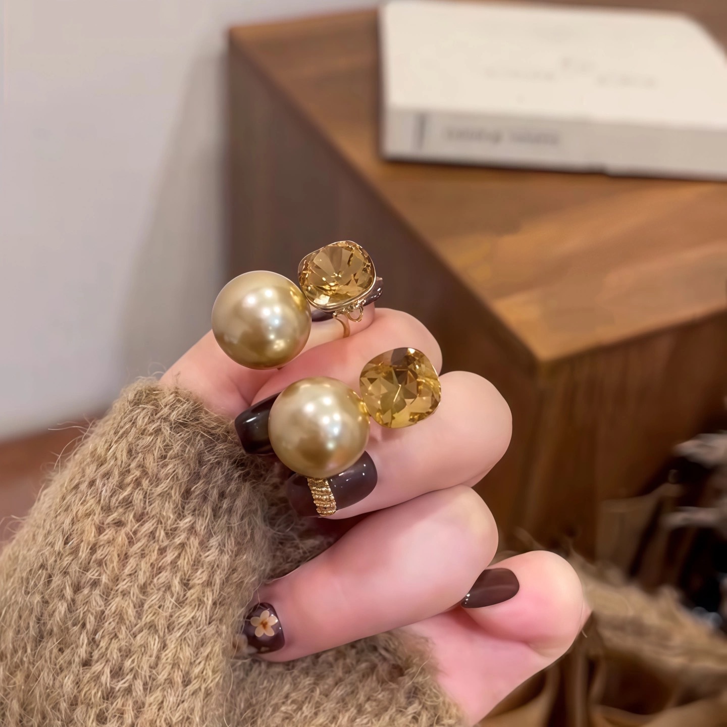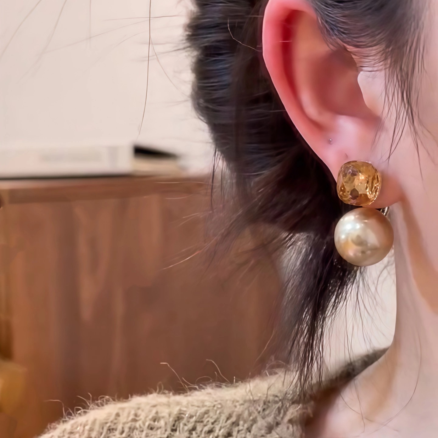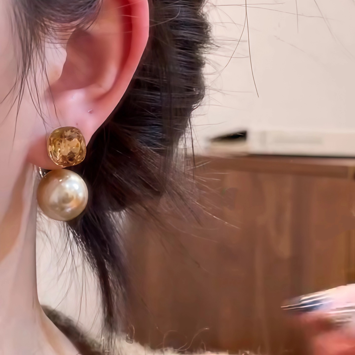 一款两戴香槟色珍珠耳环女2025秋冬新款爆款小众时尚精致百搭耳饰