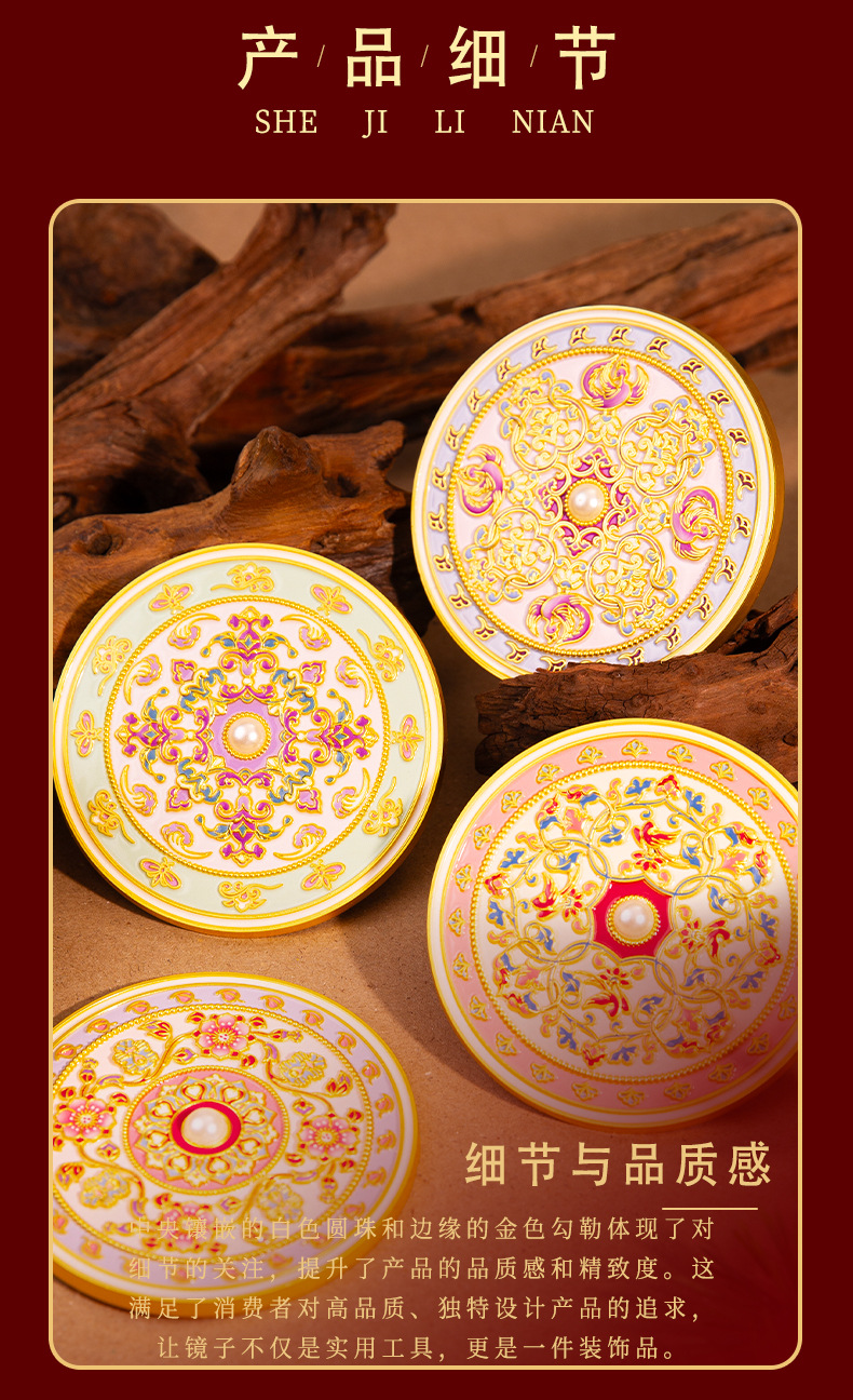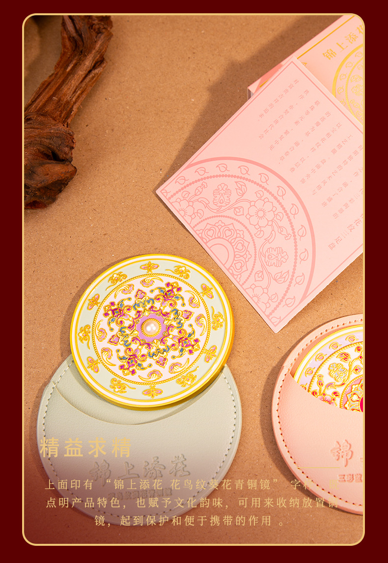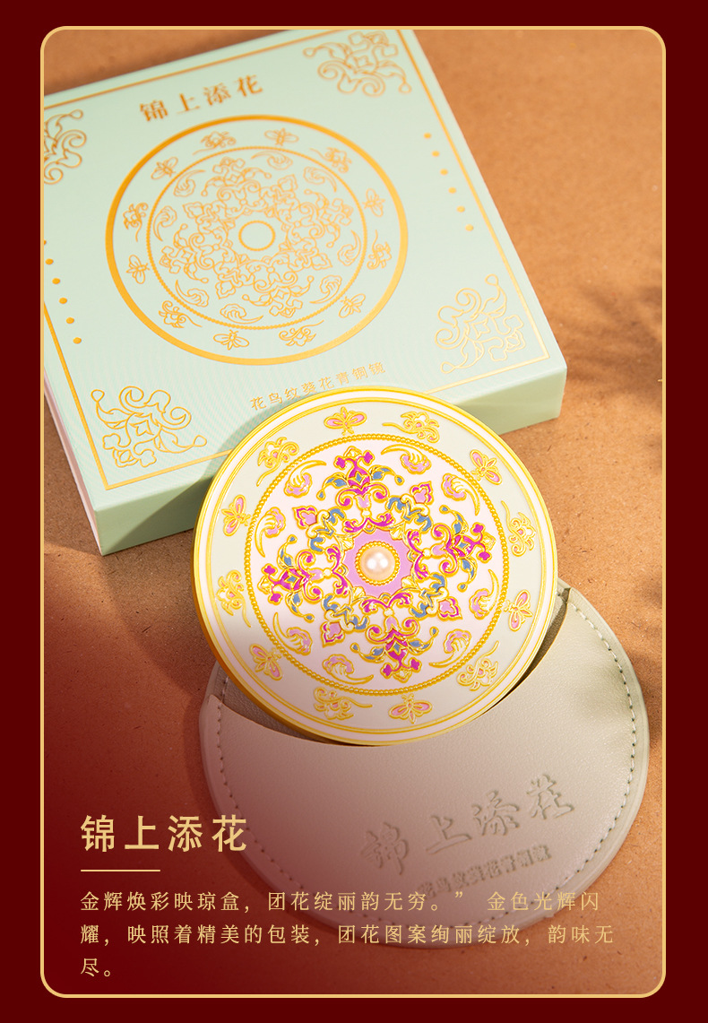 原创锦上添花古风文创金属化妆镜中式纪念品伴手礼工艺品礼品