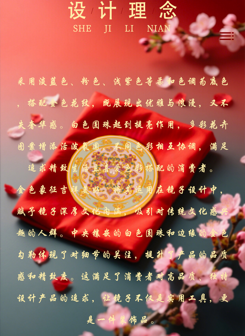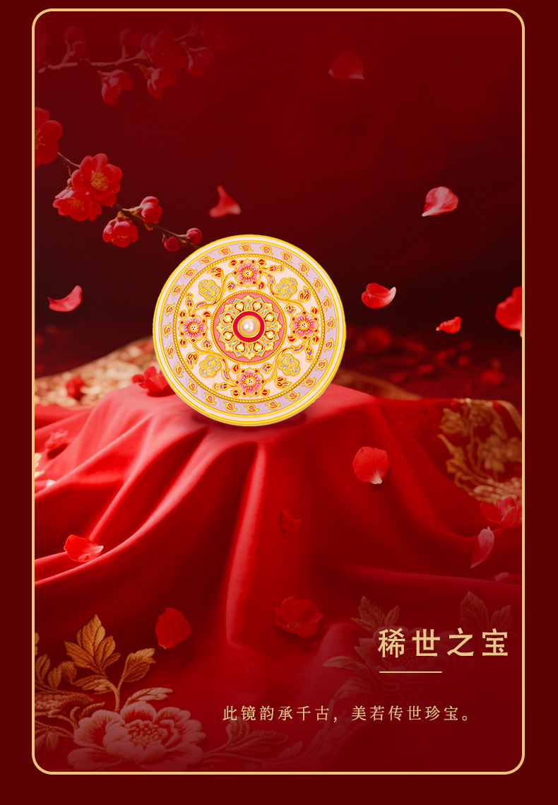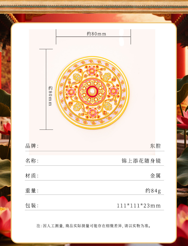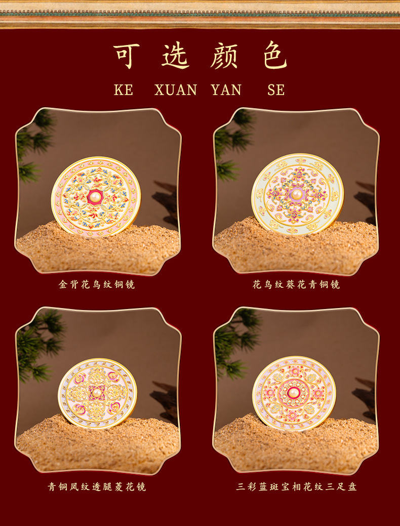 原创锦上添花古风文创金属化妆镜中式纪念品伴手礼工艺品礼品