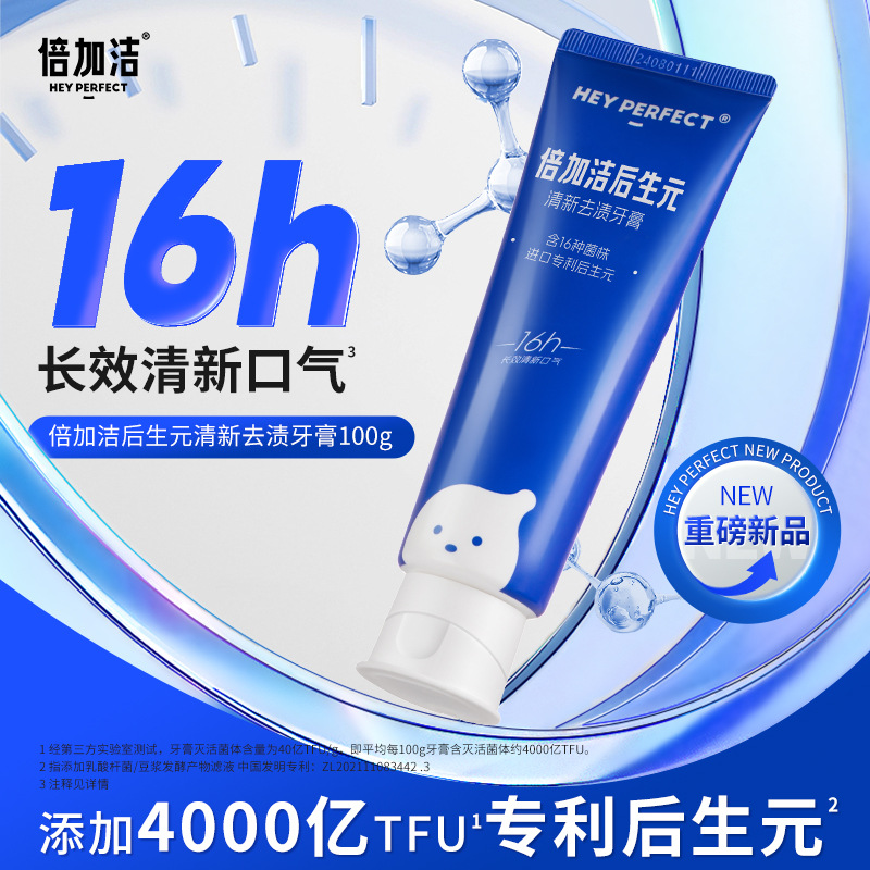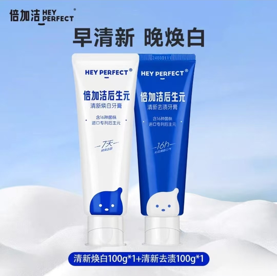 倍加洁YY18多效护龈去渍牙膏长效清新口气后生元焕白亮白批发牙膏