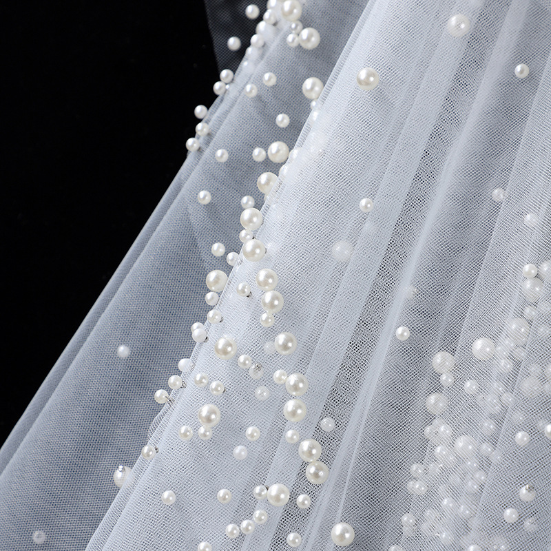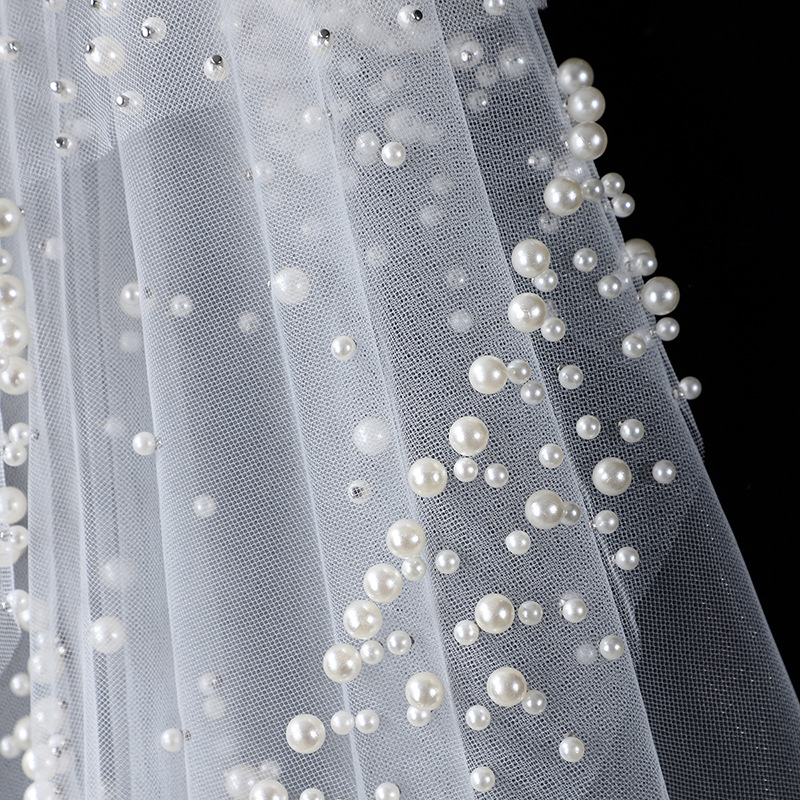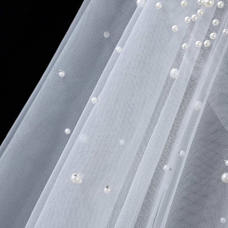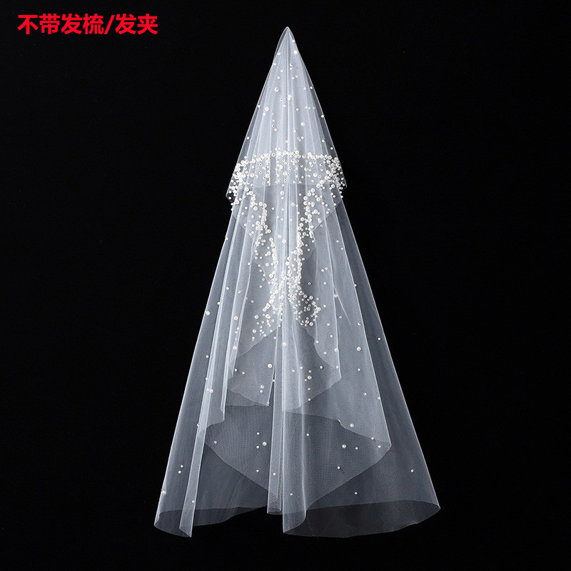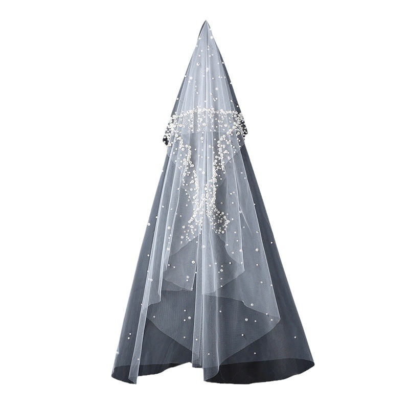 头纱新娘主婚纱头饰盖头圆珠点缀森系复古仙气高级感素纱拍照道具