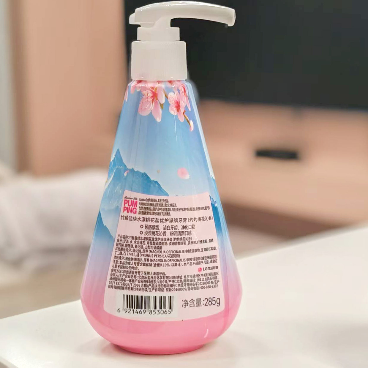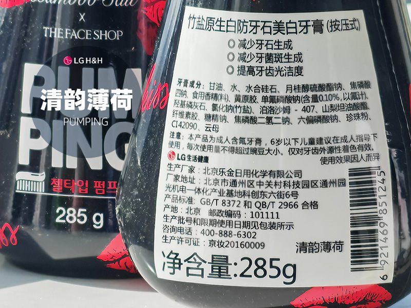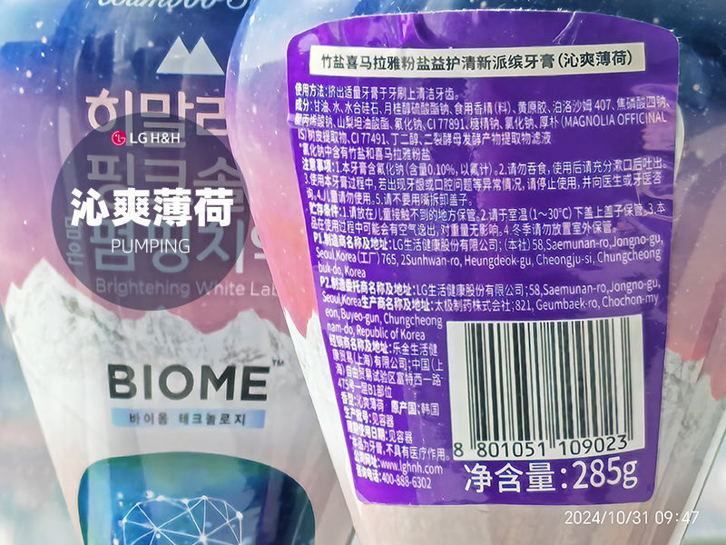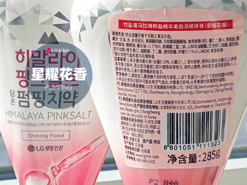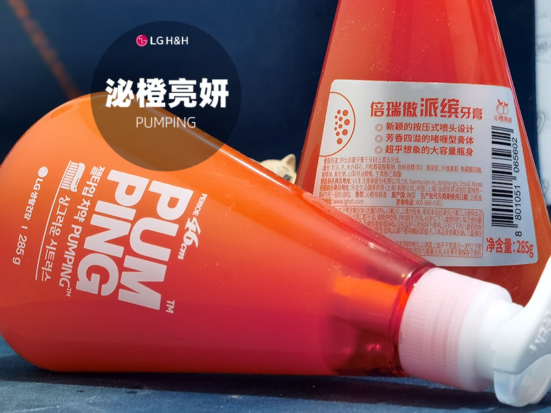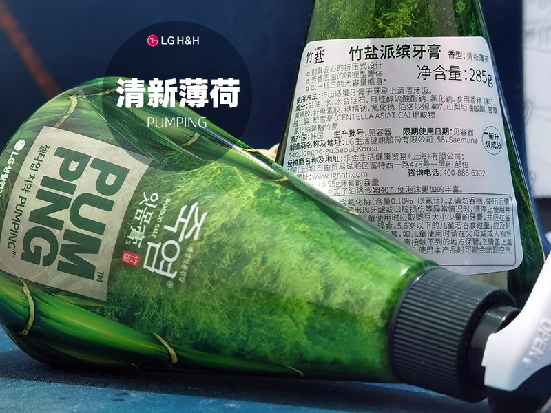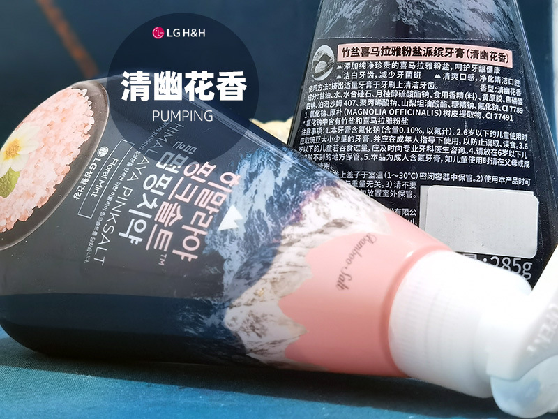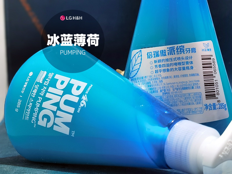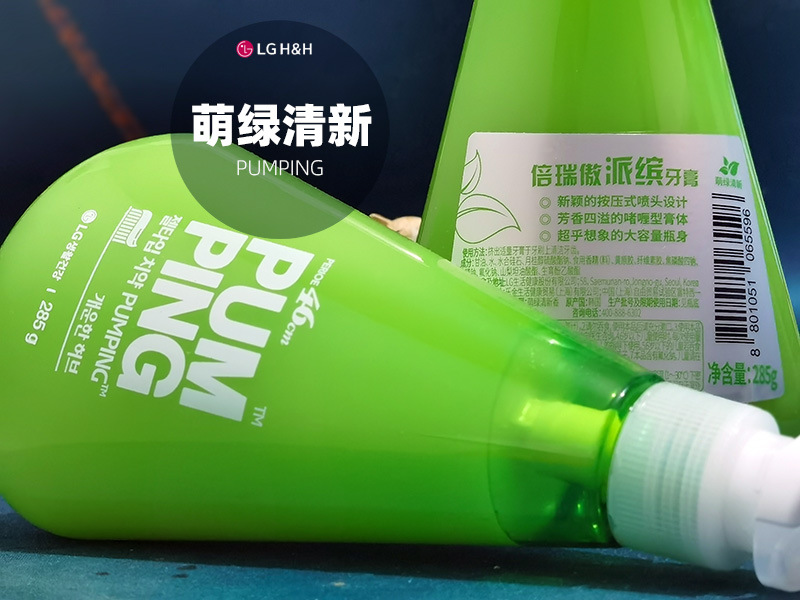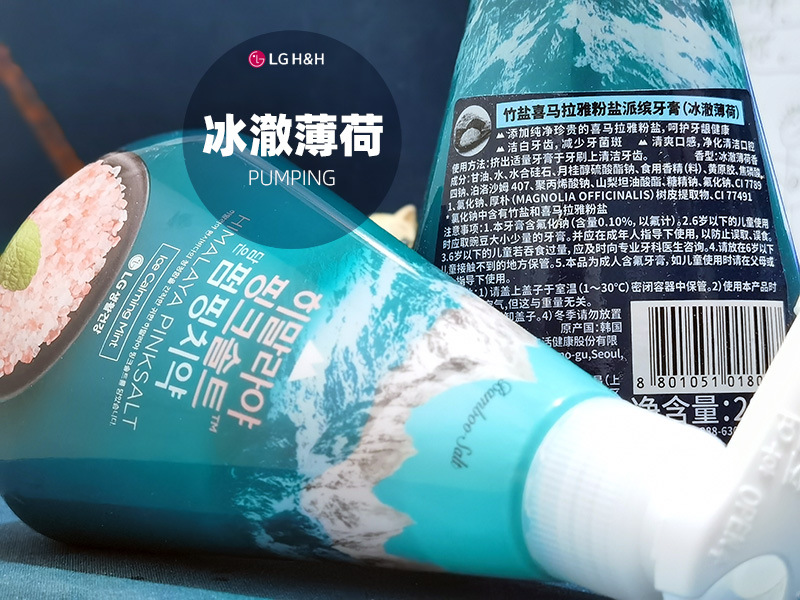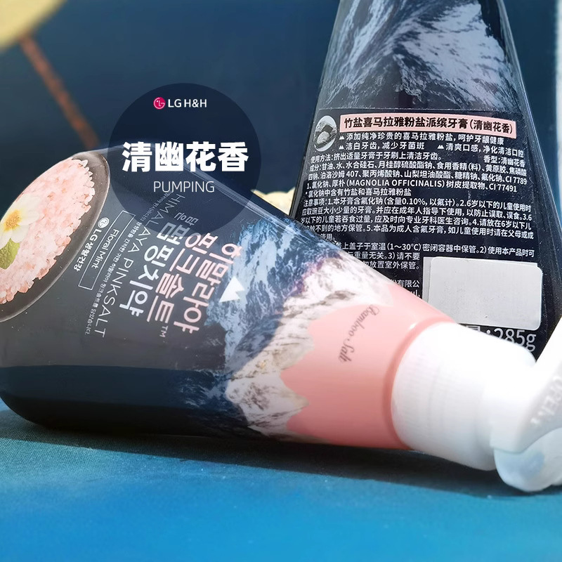 韩国LG倍瑞傲PUMPING粉盐喜马拉雅派滨薄荷按压牙膏285g假1赔10