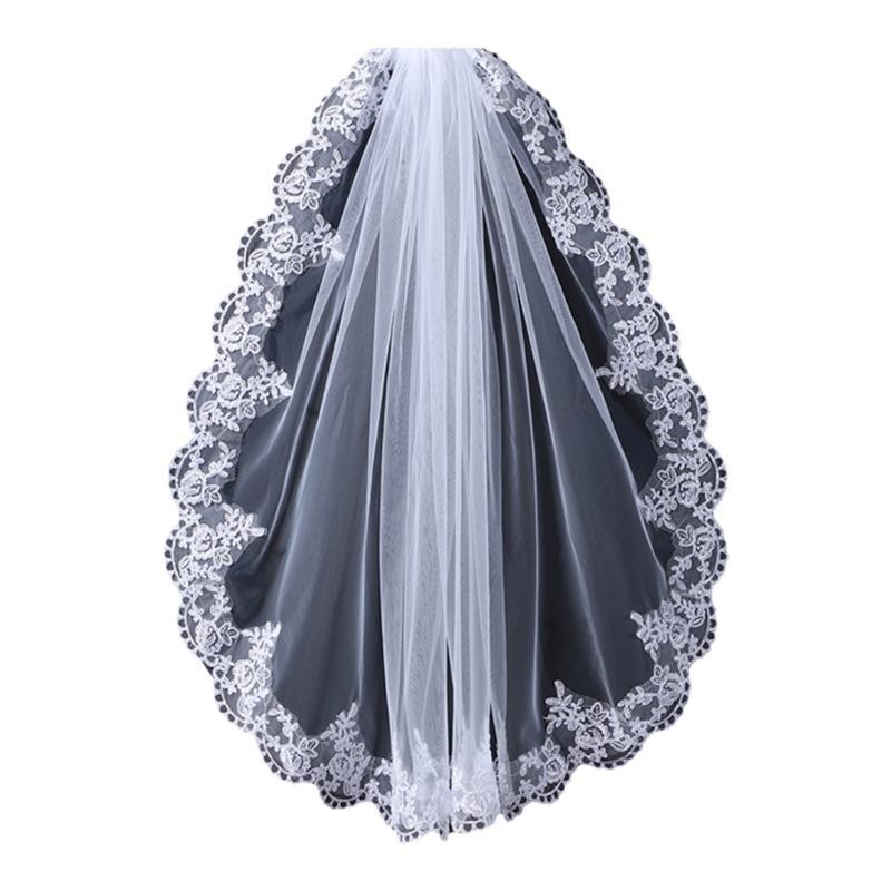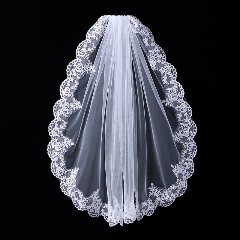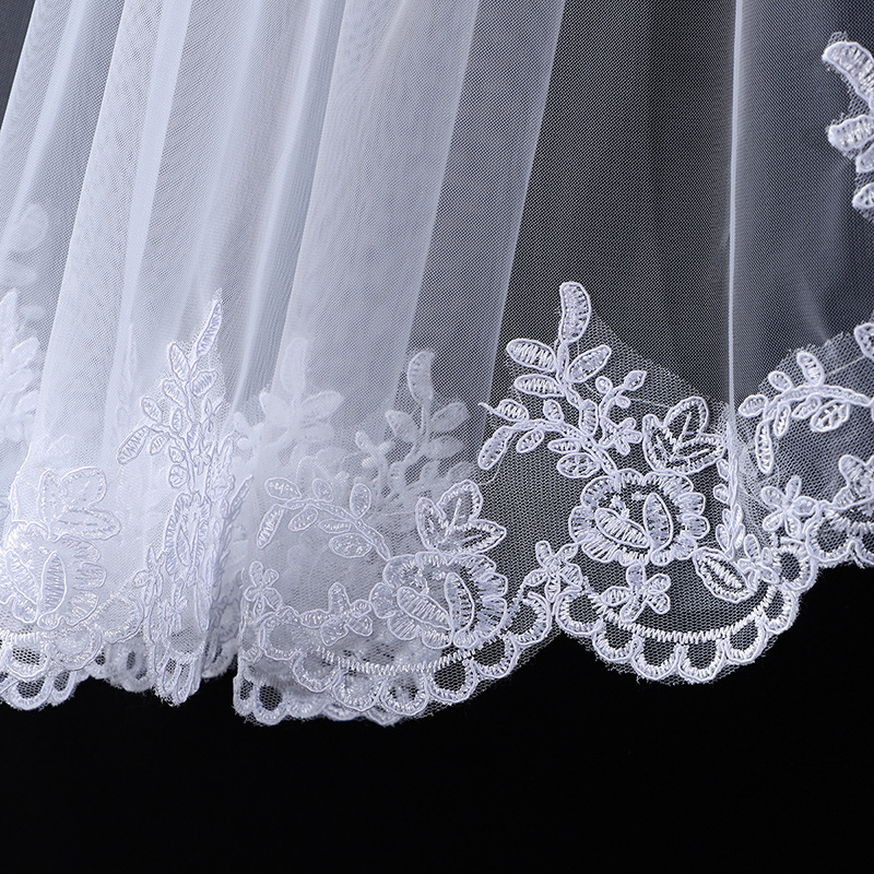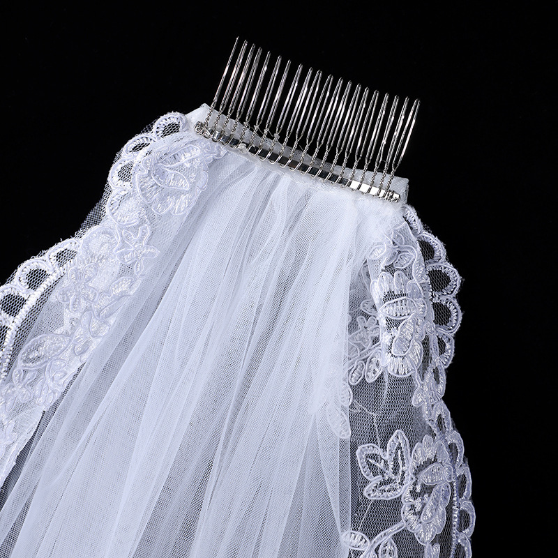 头纱新娘主婚纱头饰中长款唯美花边高级感法式结婚旅拍照摄影发饰