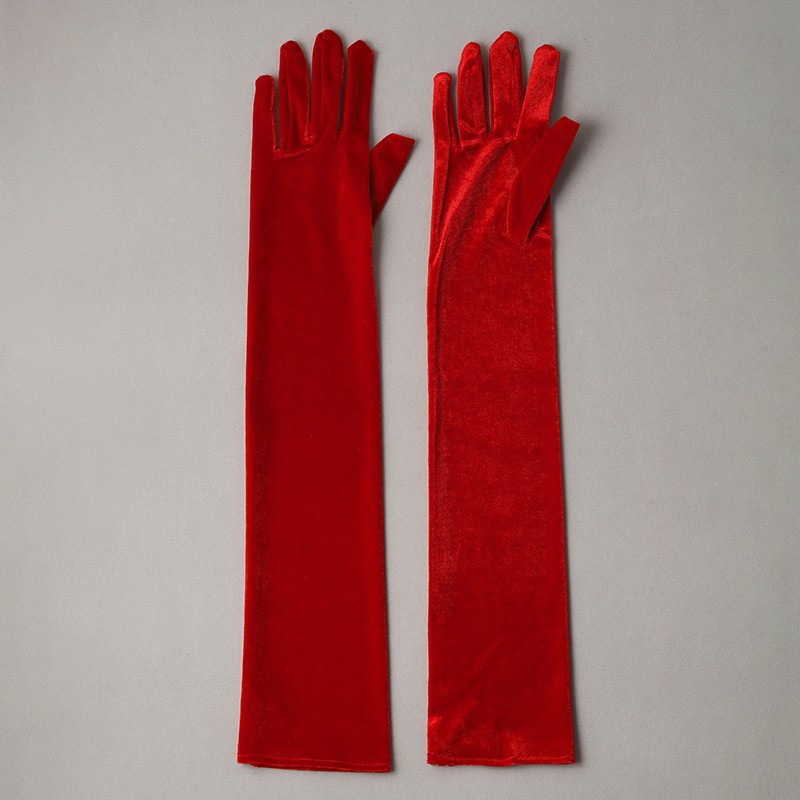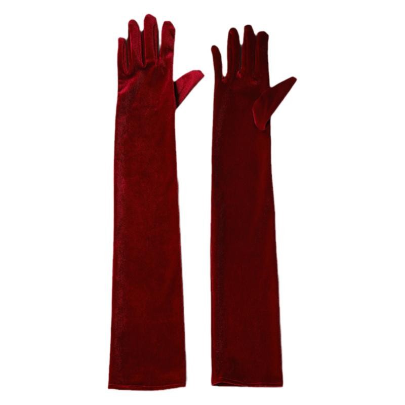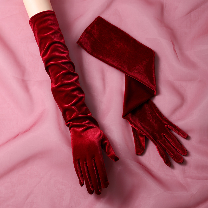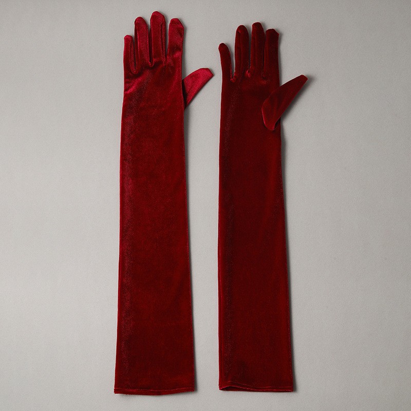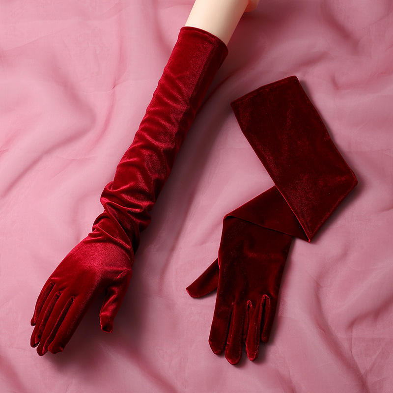 婚纱手套女新娘酒红色长款复古高级感绒纱公主结婚礼服搭配饰袖套
