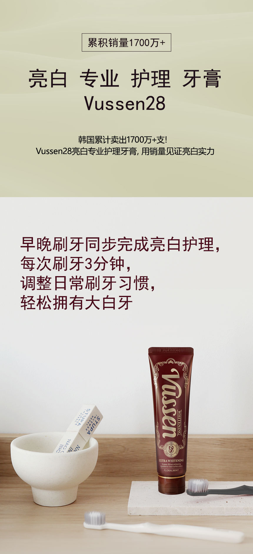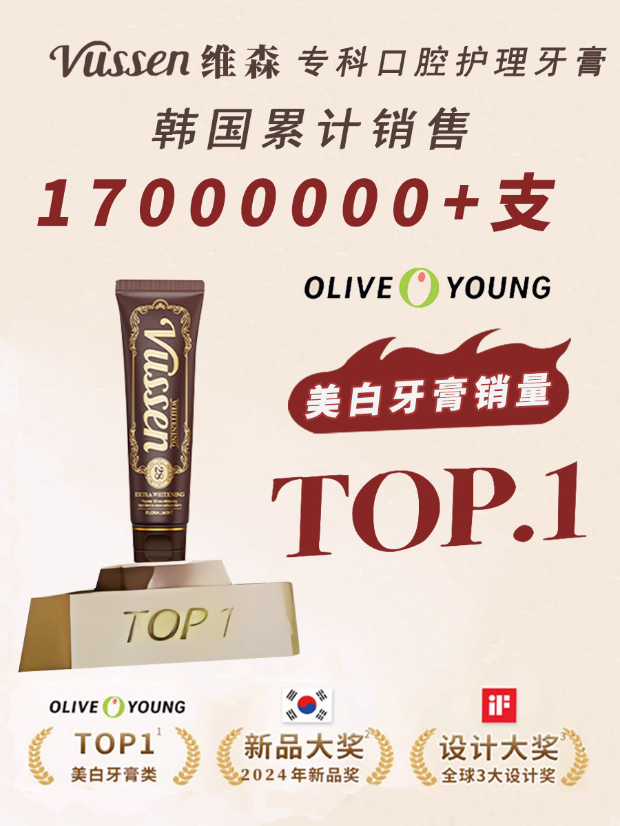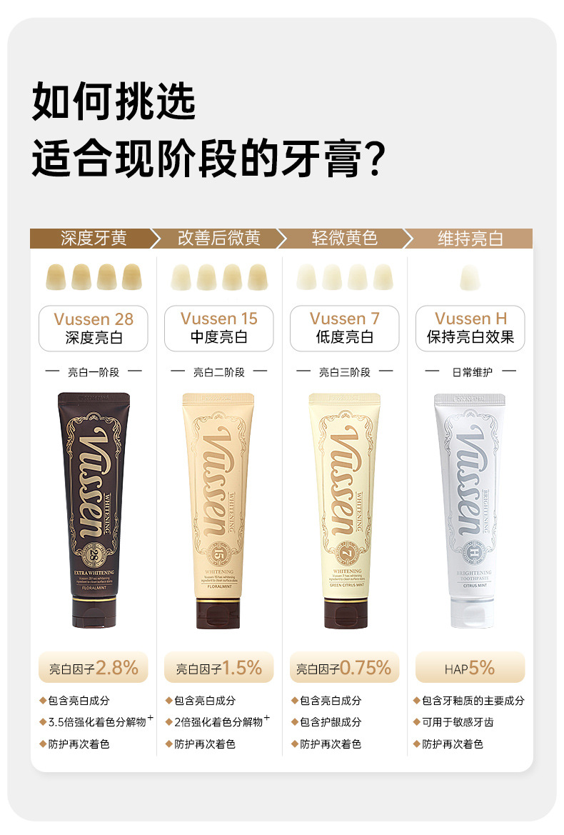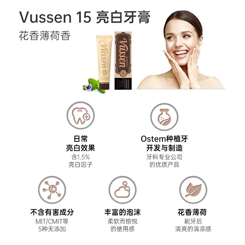韩国原装进口VUSSEN维森亮白牙膏口腔清洁去黄去牙渍去黄渍