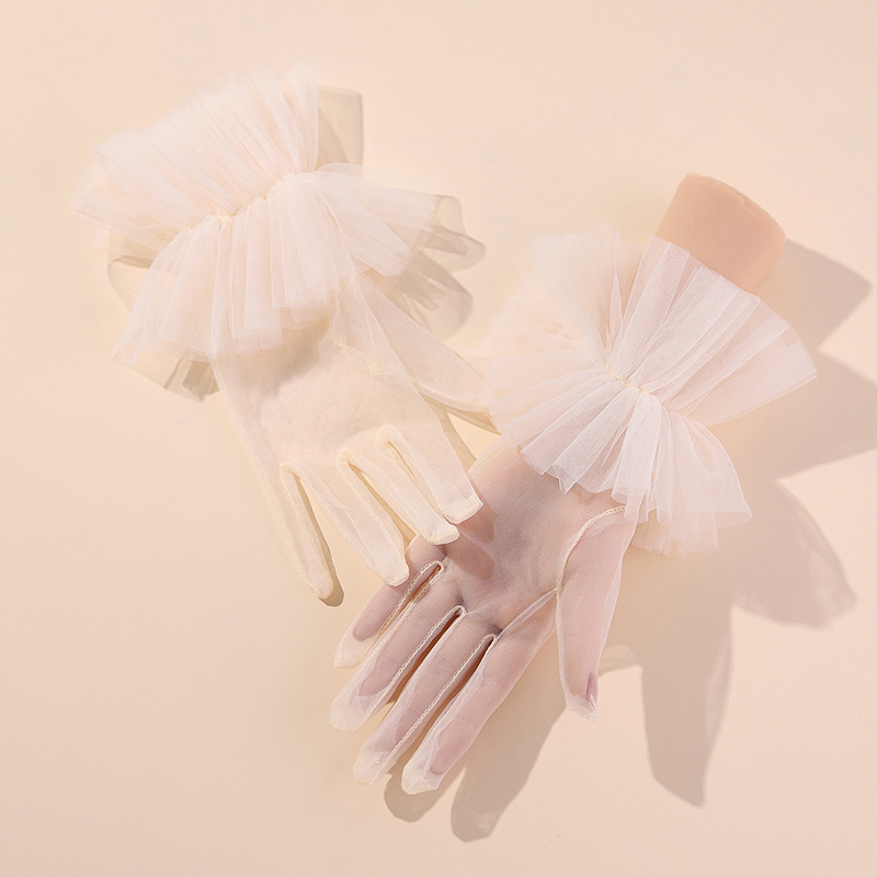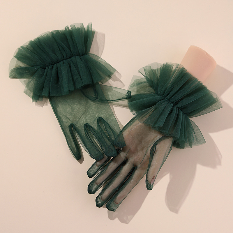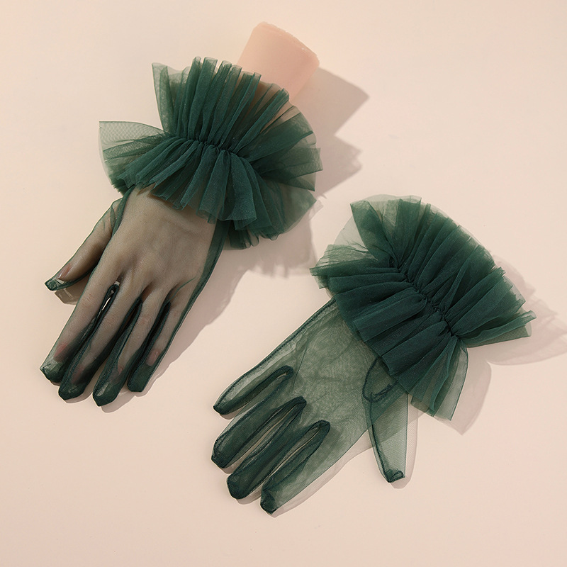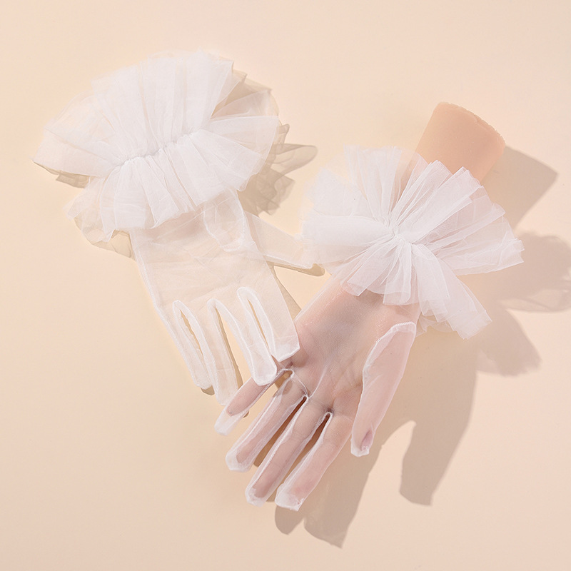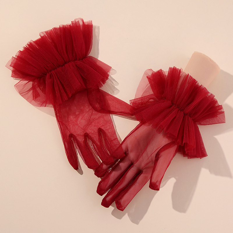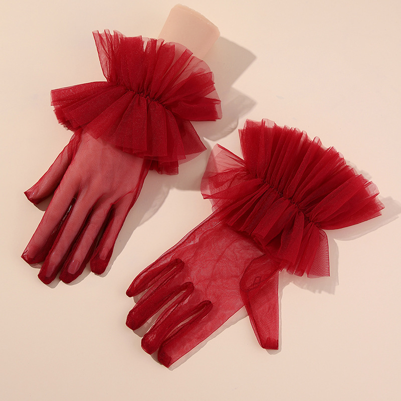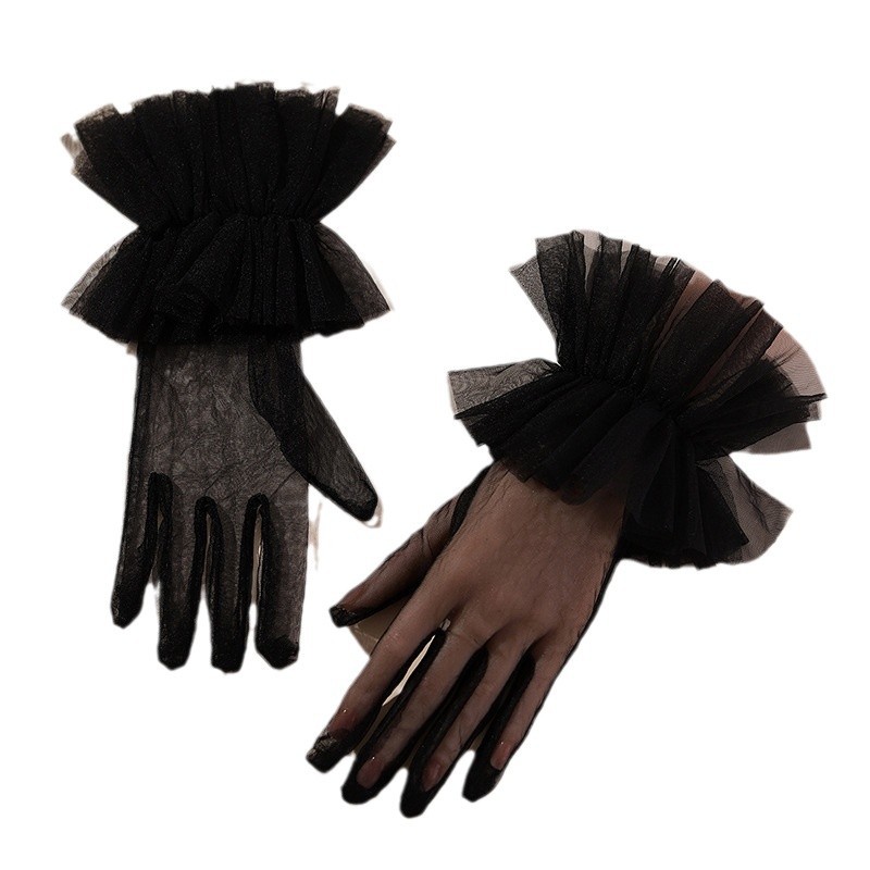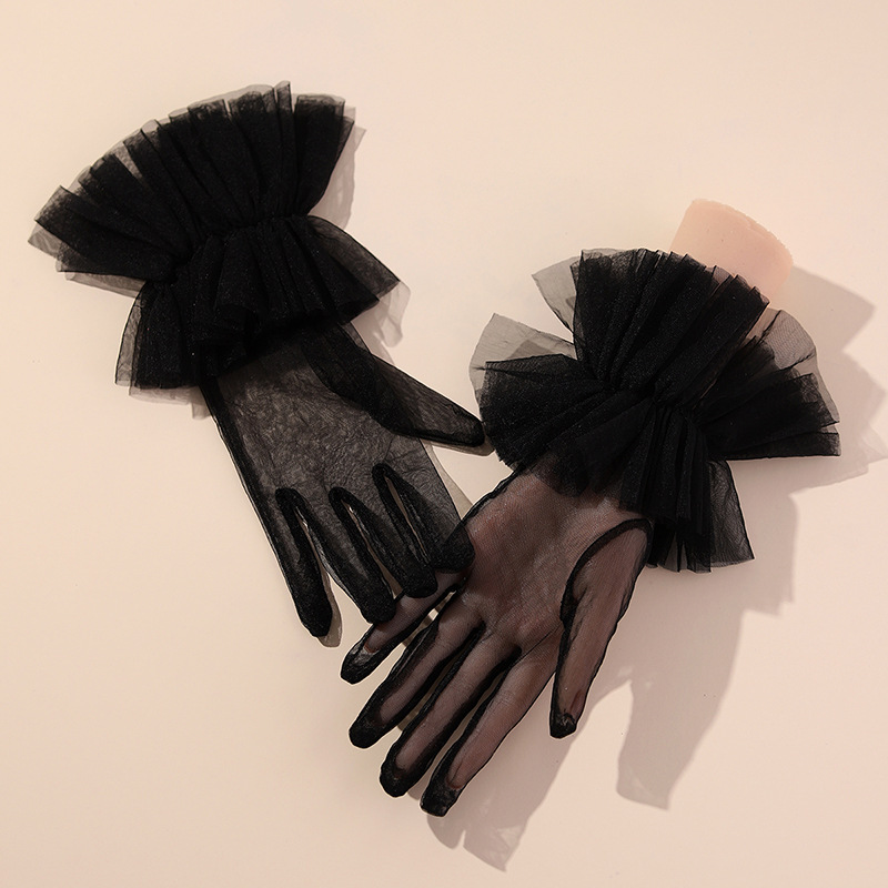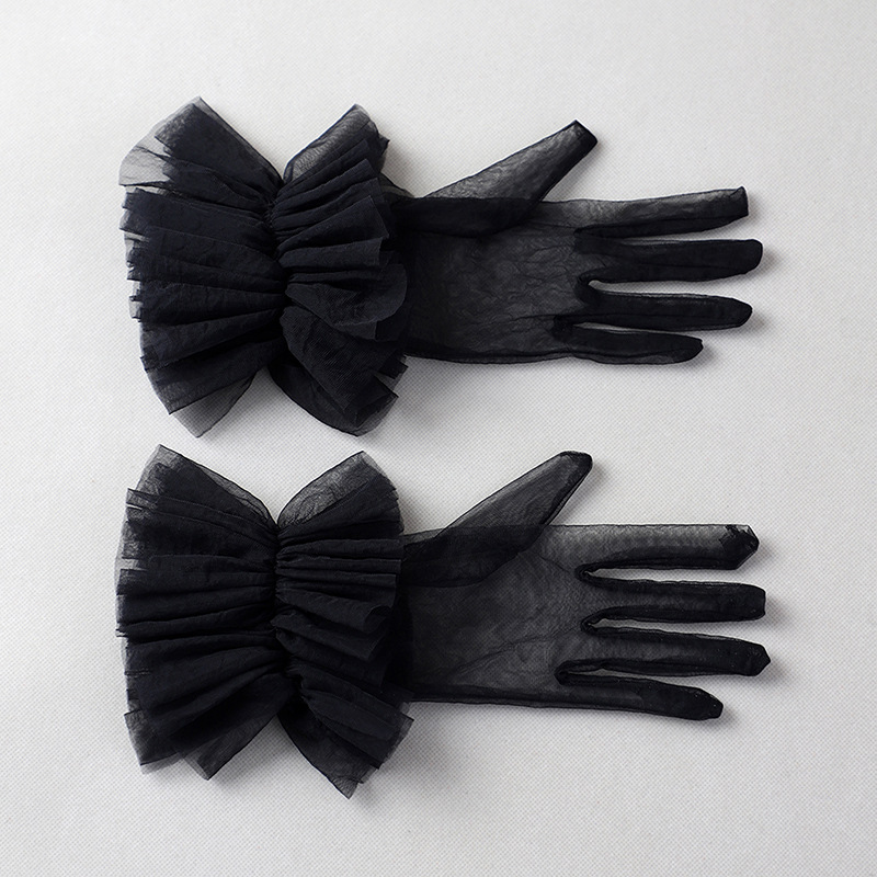 婚纱手套新娘黑色短款大花边森系法式复古公主结婚宴会晚礼服配饰