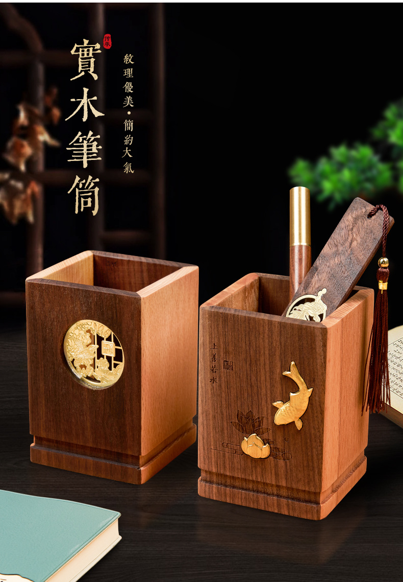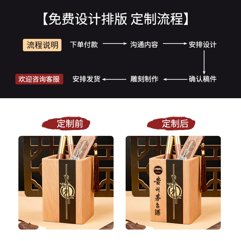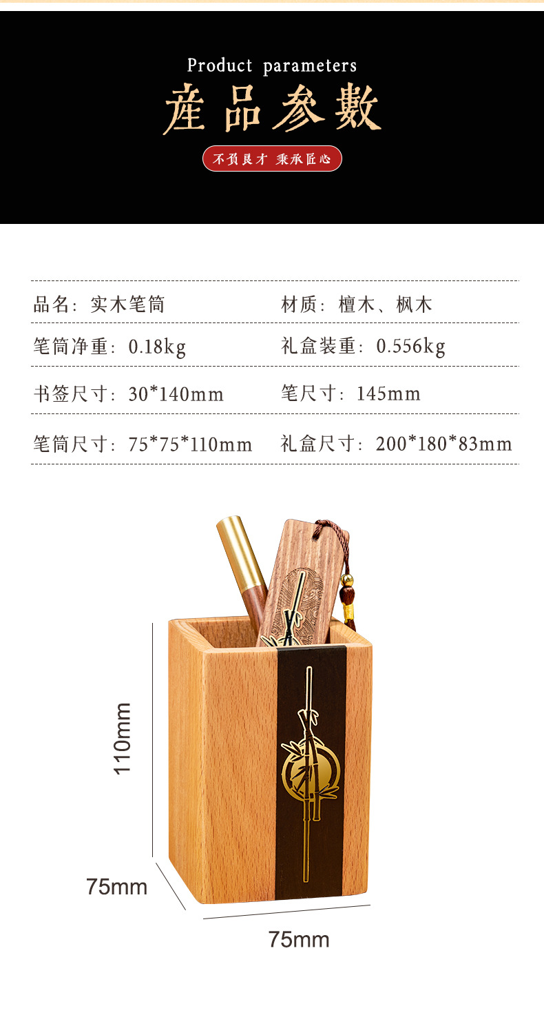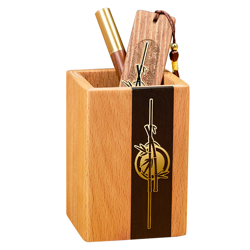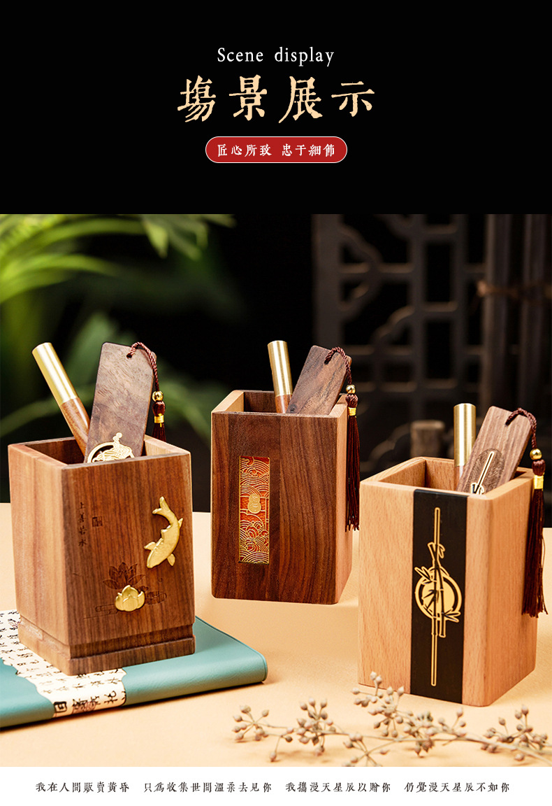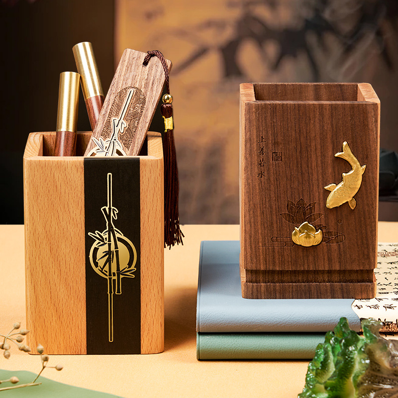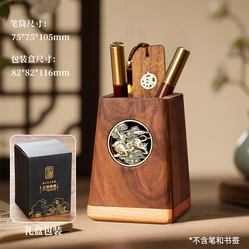 实木笔筒礼盒轻奢办公桌面收纳复古国风摆件单位送客户礼物定制