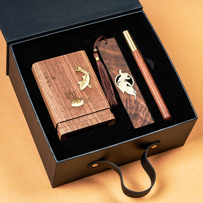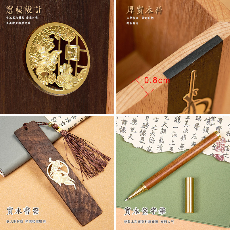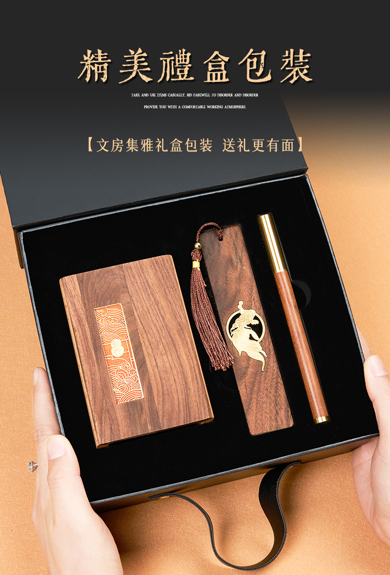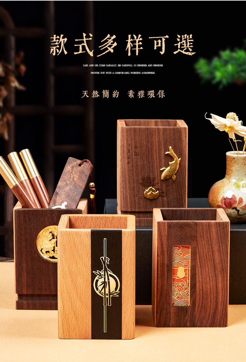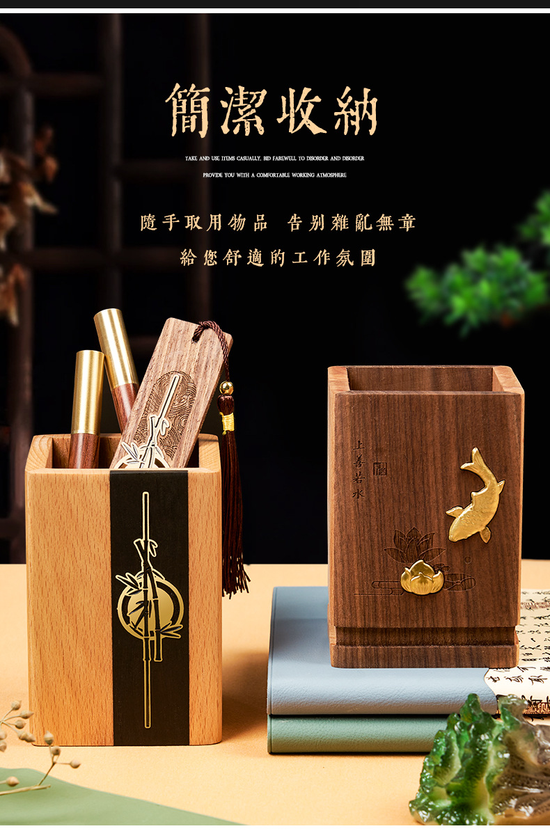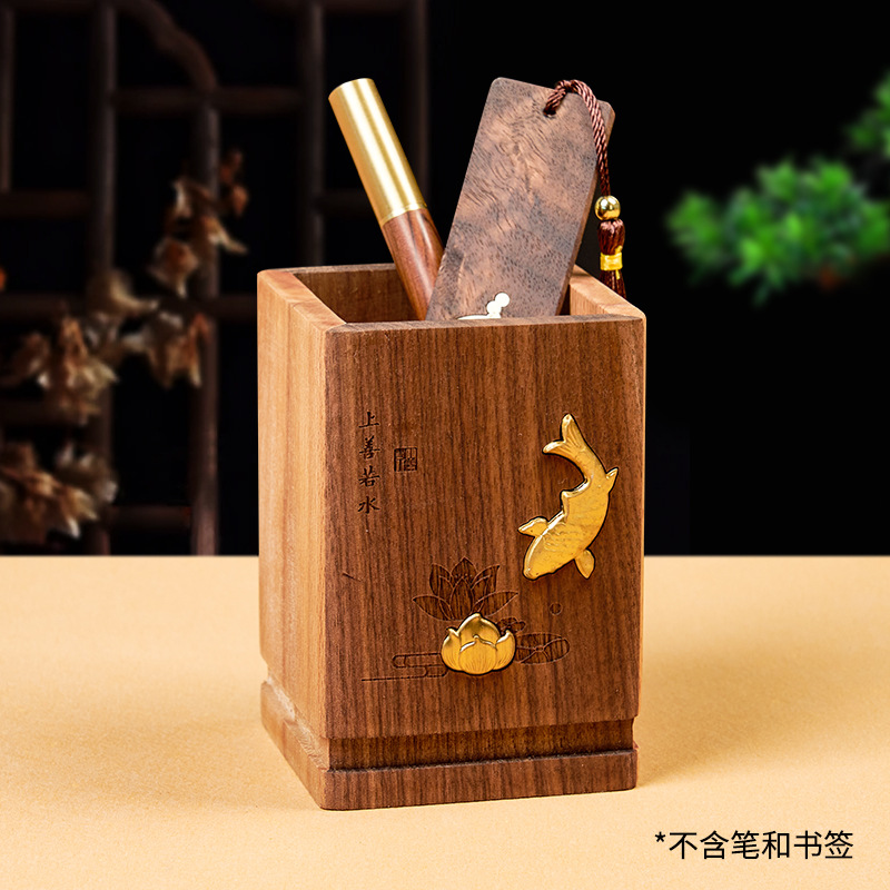 实木笔筒礼盒轻奢办公桌面收纳复古国风摆件单位送客户礼物定制