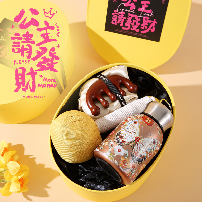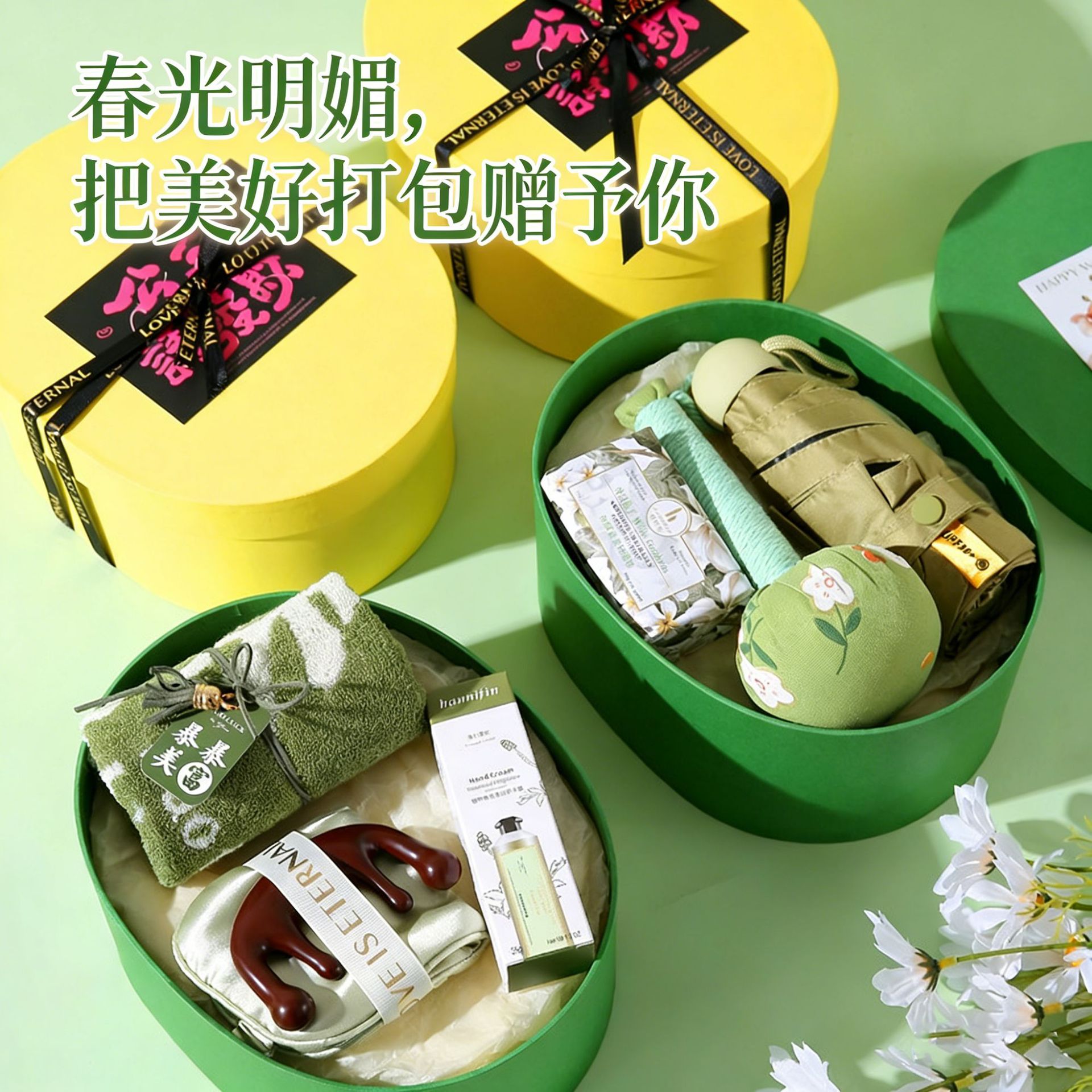 春季礼盒装牛皮纸盒黄色椭圆伴手礼盒美容院公司活动庆典高定套装