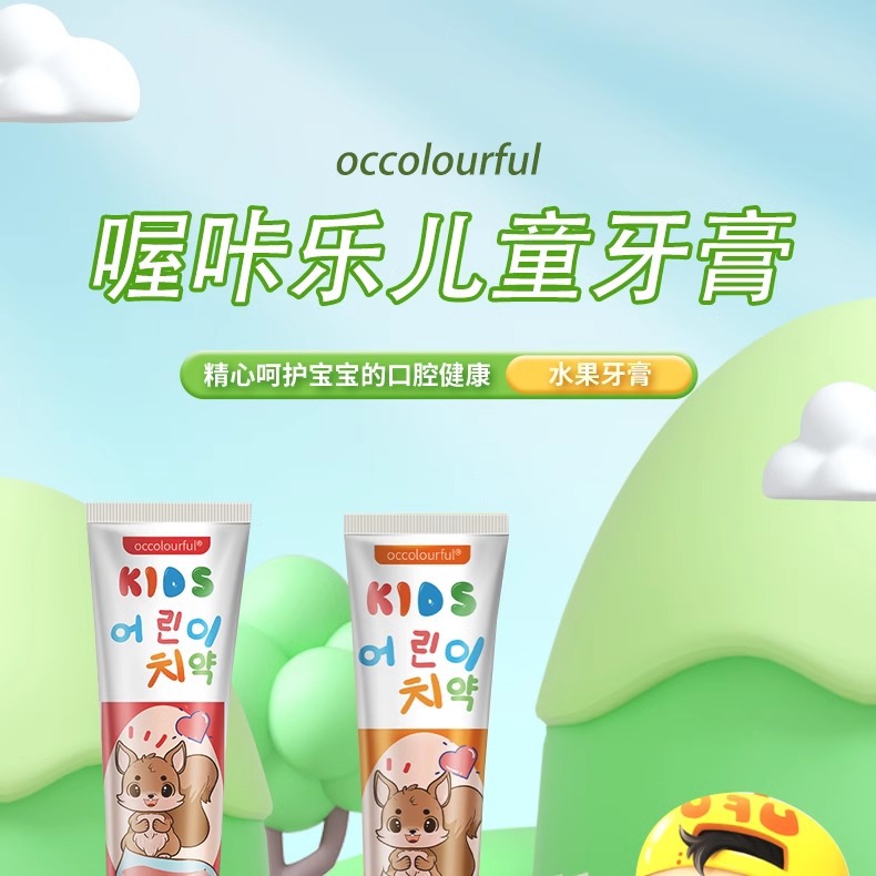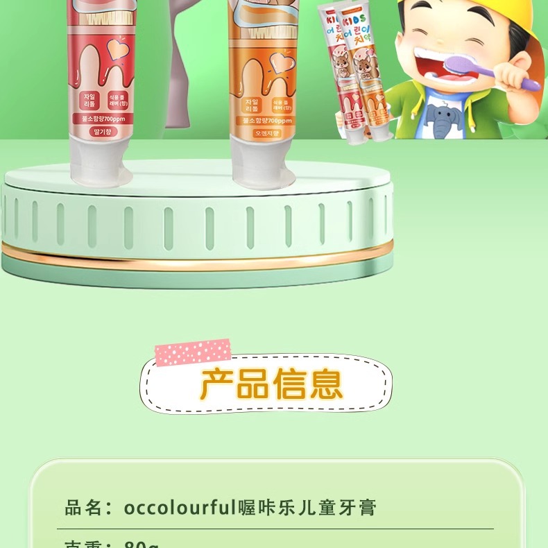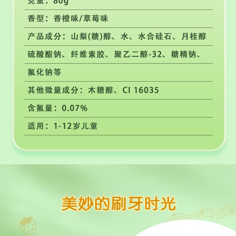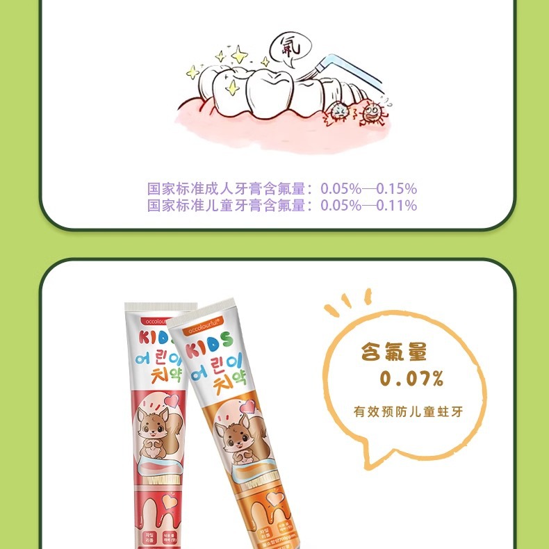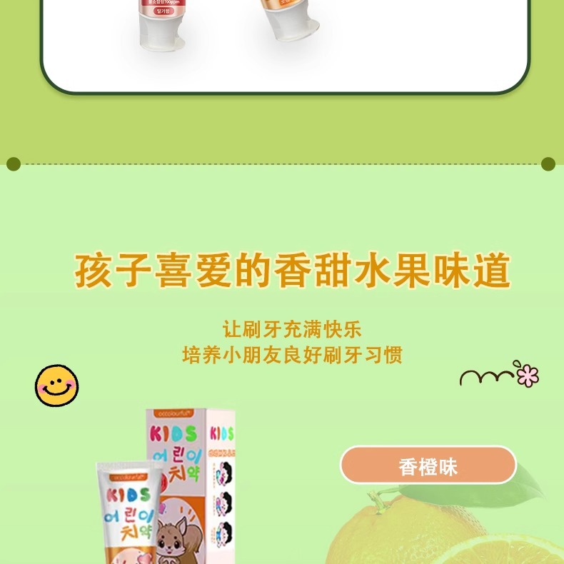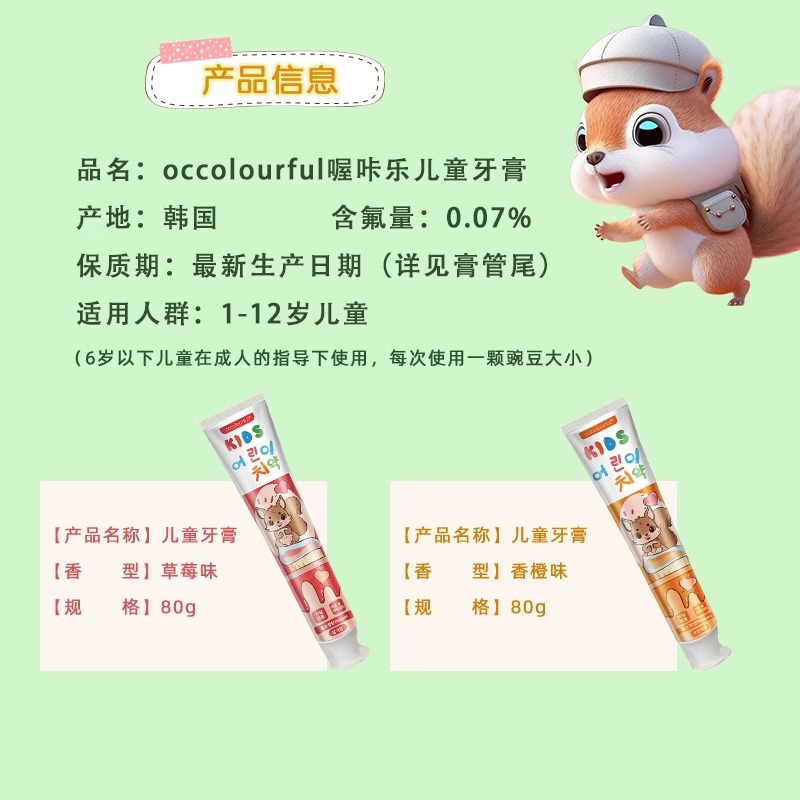 喔咔乐儿童牙膏含氟防蛀牙3-6到12岁换牙期草莓香橙水果味80g进口