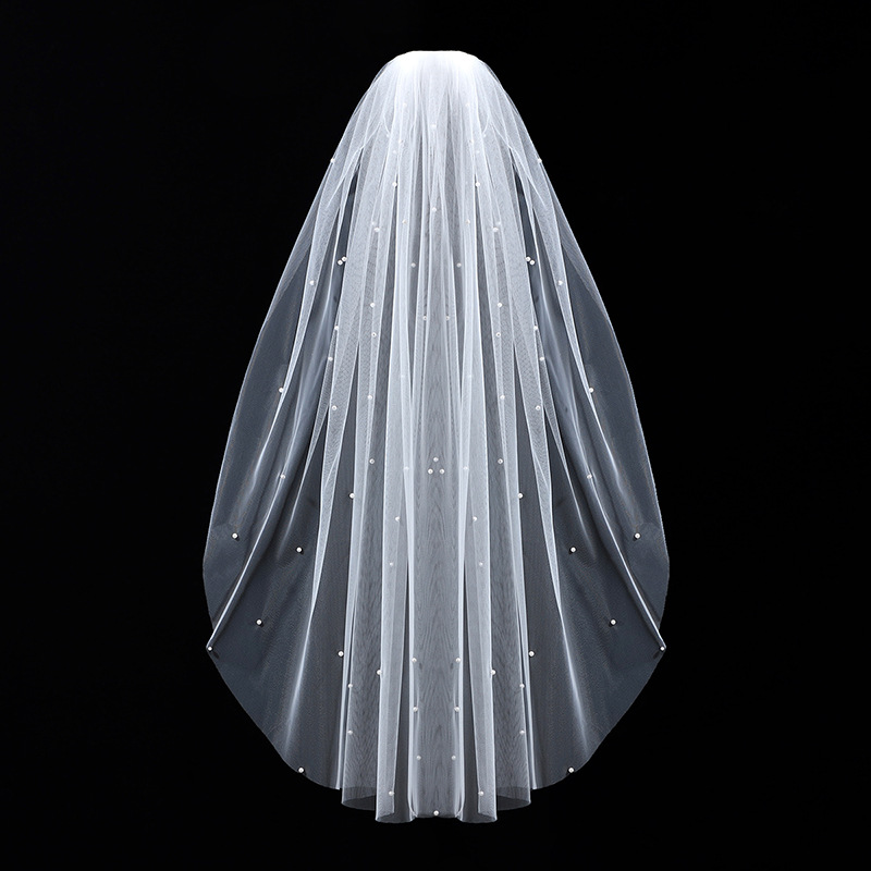 头纱新娘主婚纱头饰女简约森系复古超仙气高级感素纱领证拍照道具