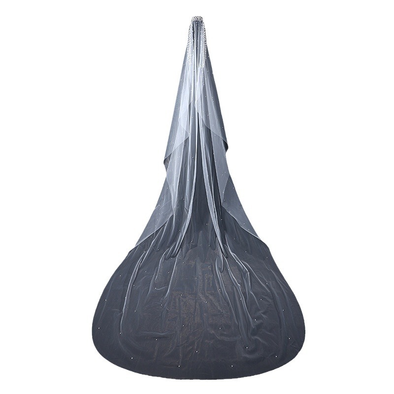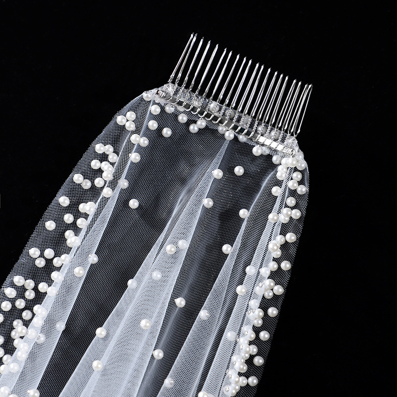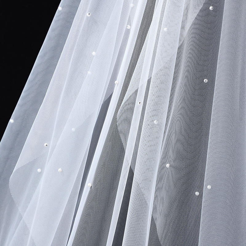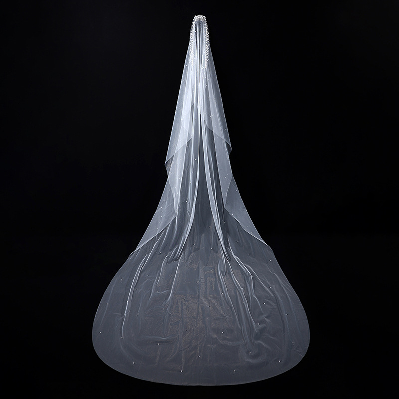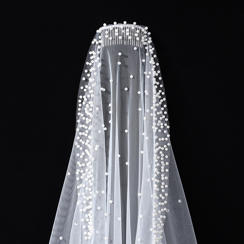 头纱新娘主婚纱头饰大拖尾珍珠森系复古仙气高贵优雅素纱拍照道具
