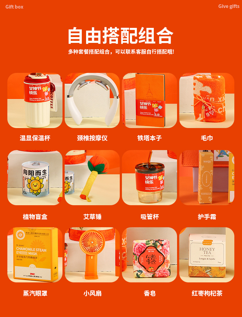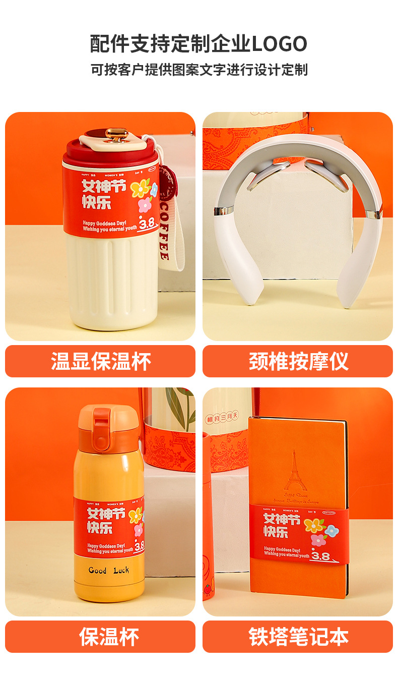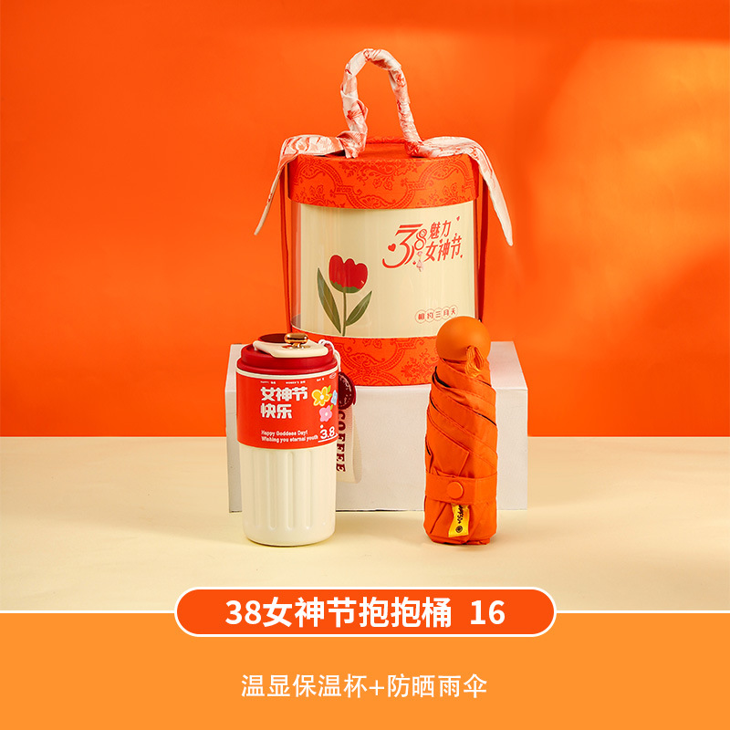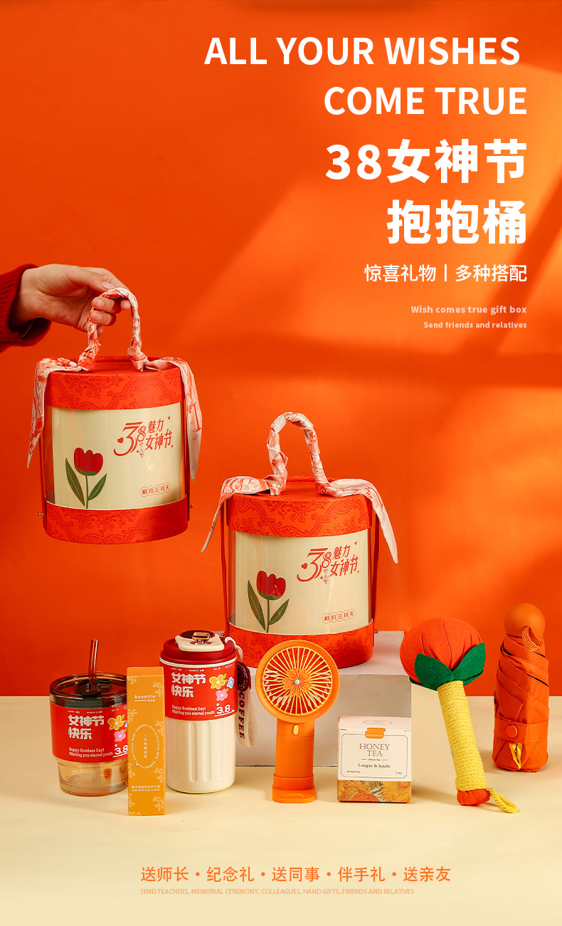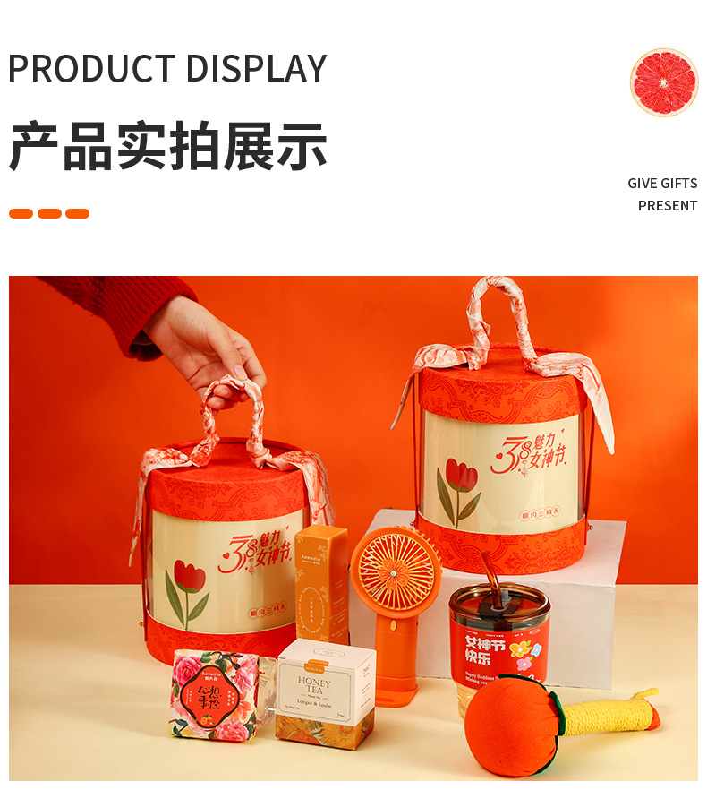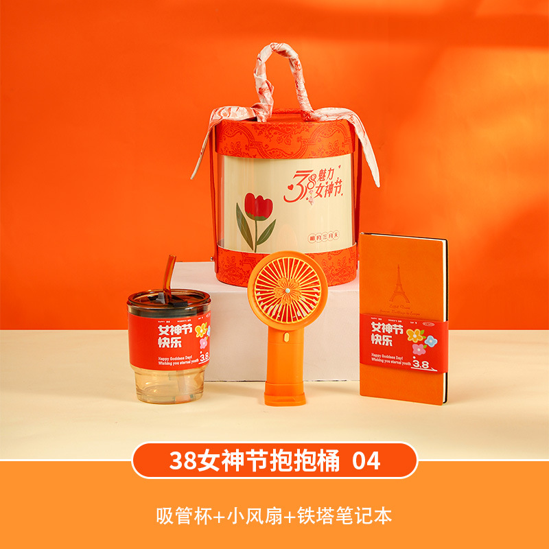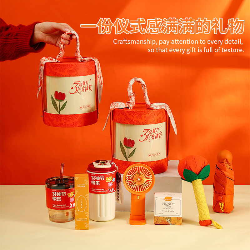 夏季礼盒橙色圆桶礼品套装送员工实用小礼品送老师可logo现货批点